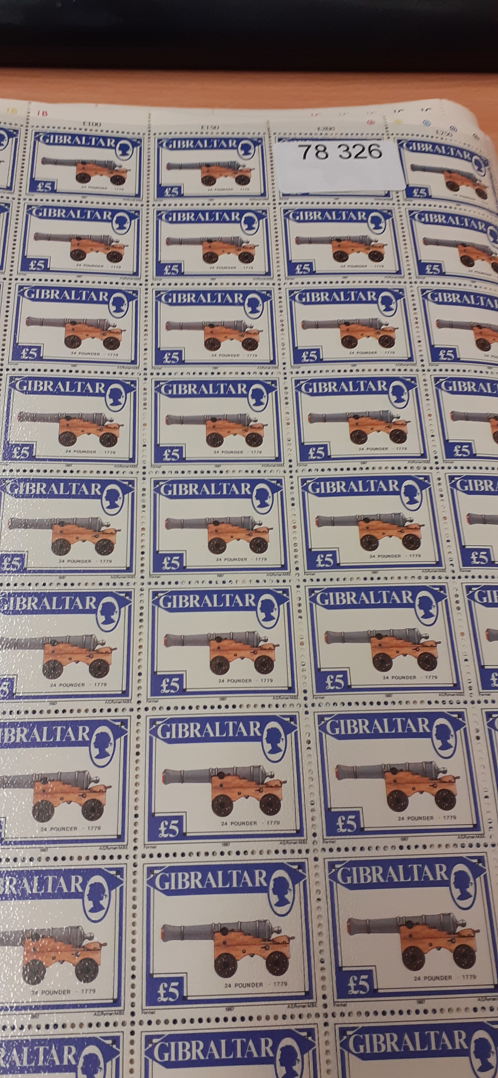 Gibraltar. Michel 525–37 ★★, 1987 Canons SET (13). 151 sets in part sheets. FACE VALUE £1561. EUR 4832