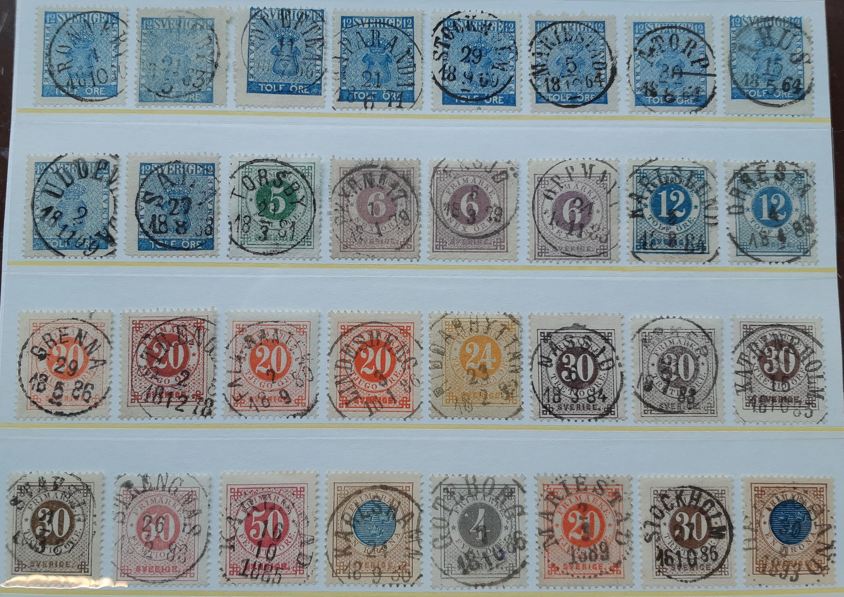 Sweden. Lot used COAT–OF–ARMS–CIRCLE TYPE. Selected, mostly superb–EXCELLENT cancellations. Somewhat mixed quality. (32)