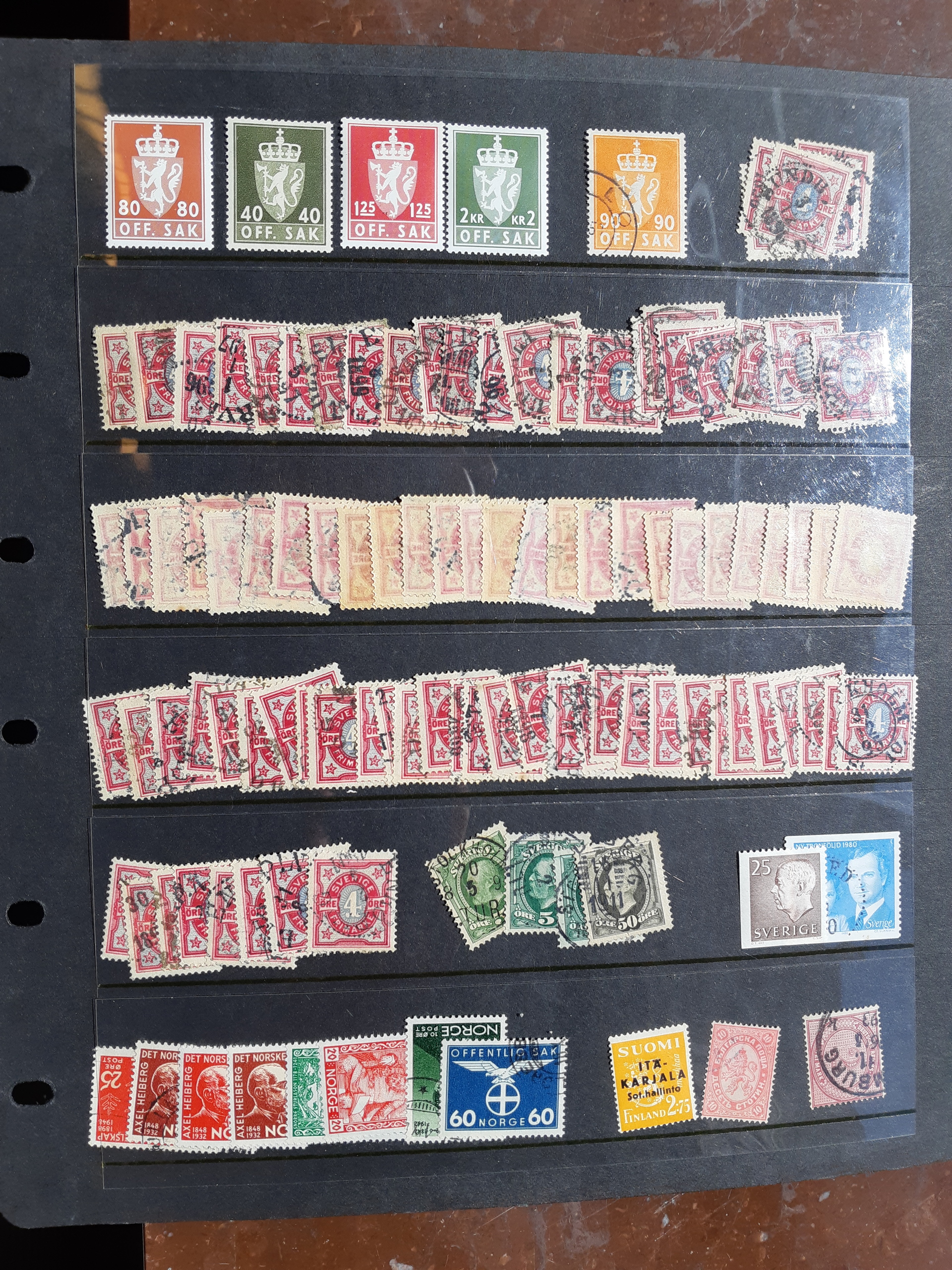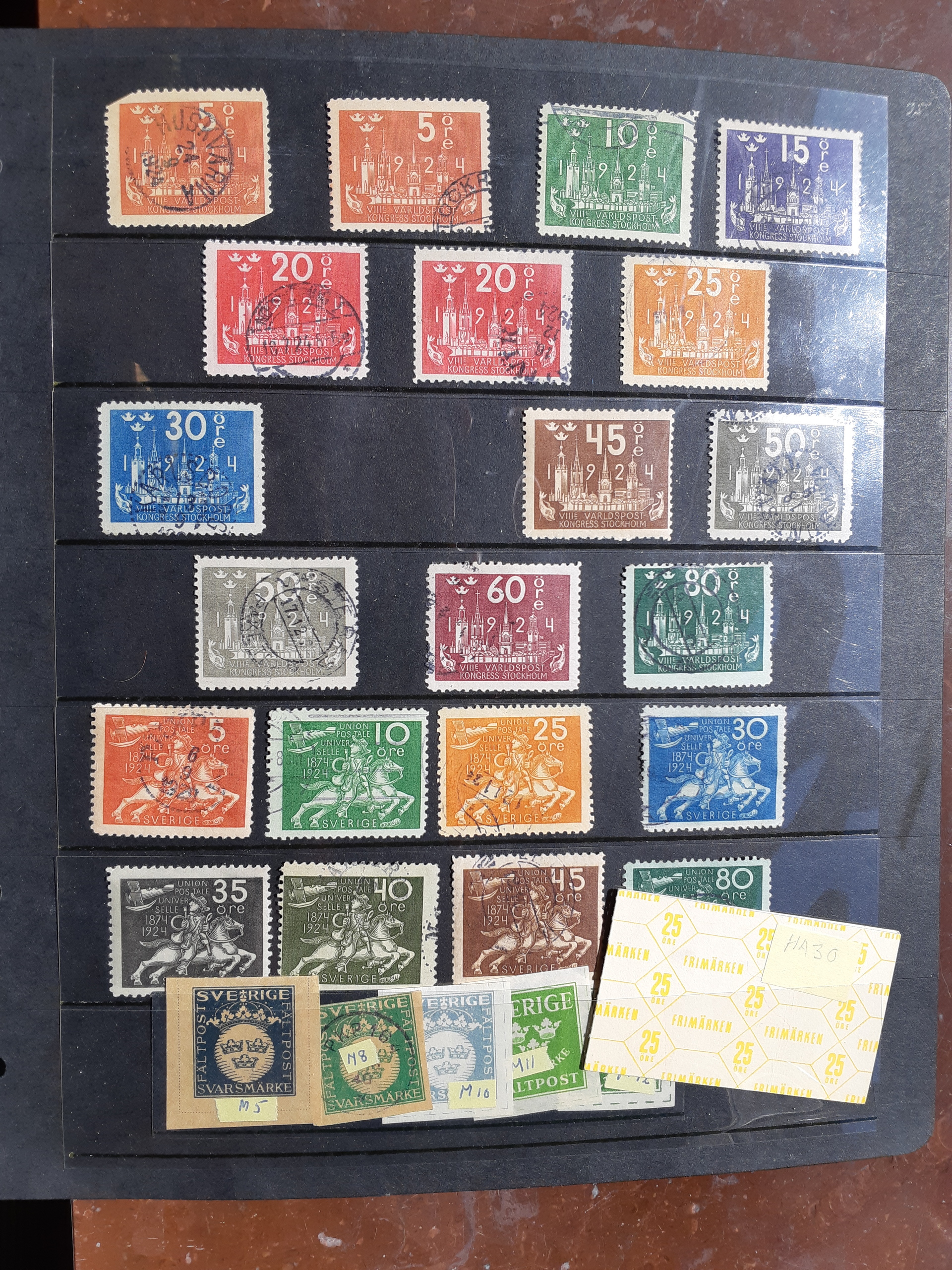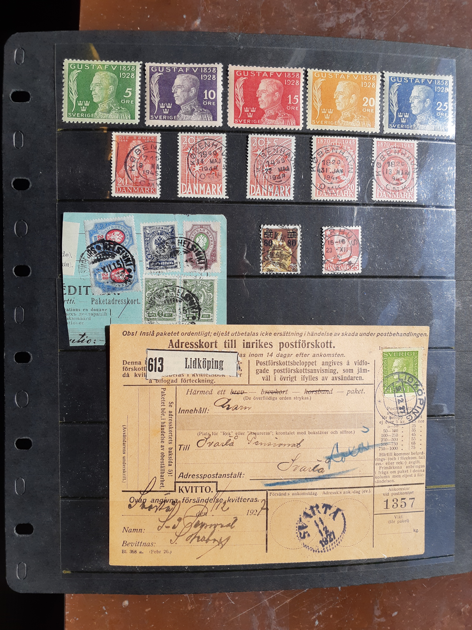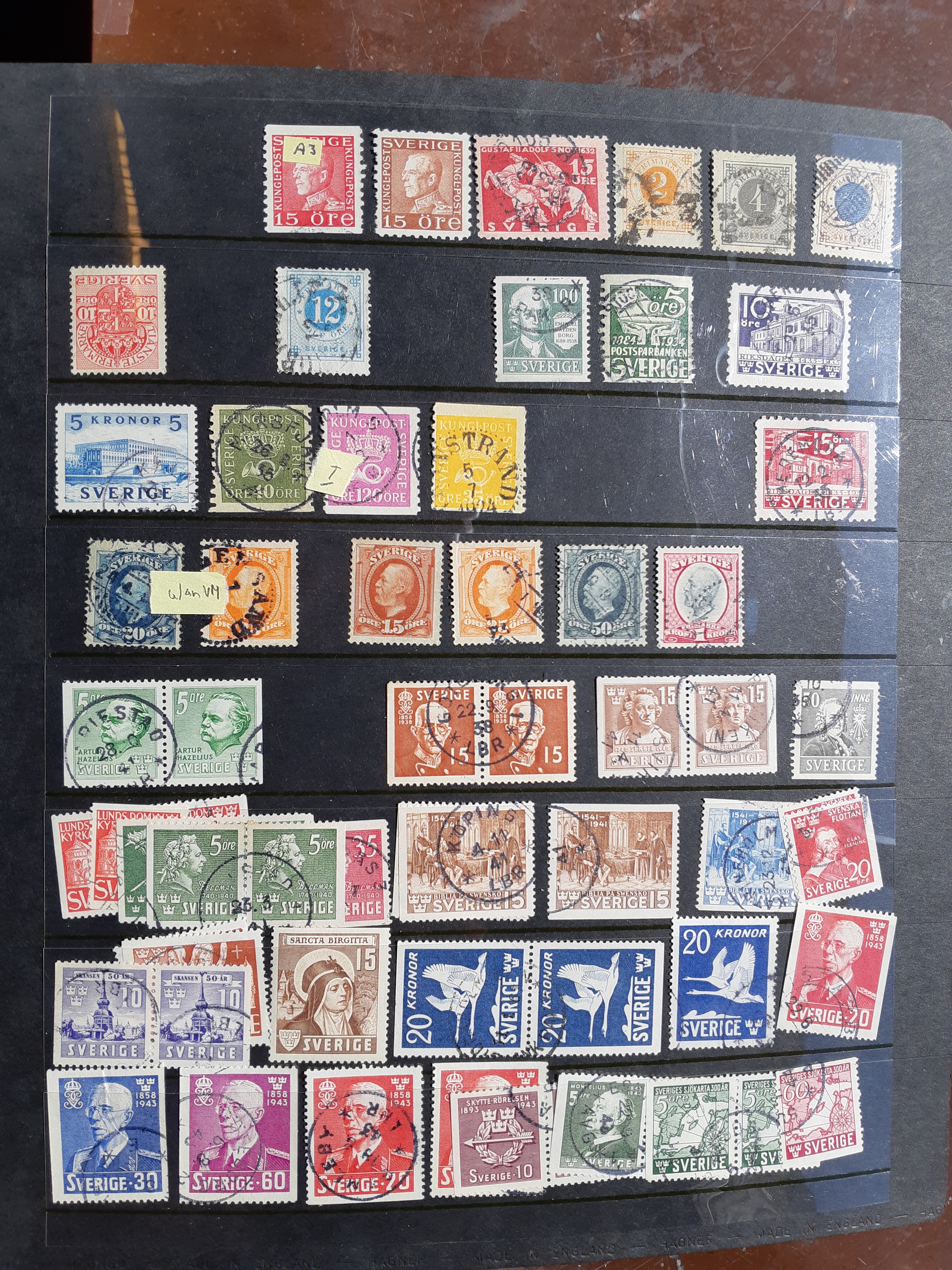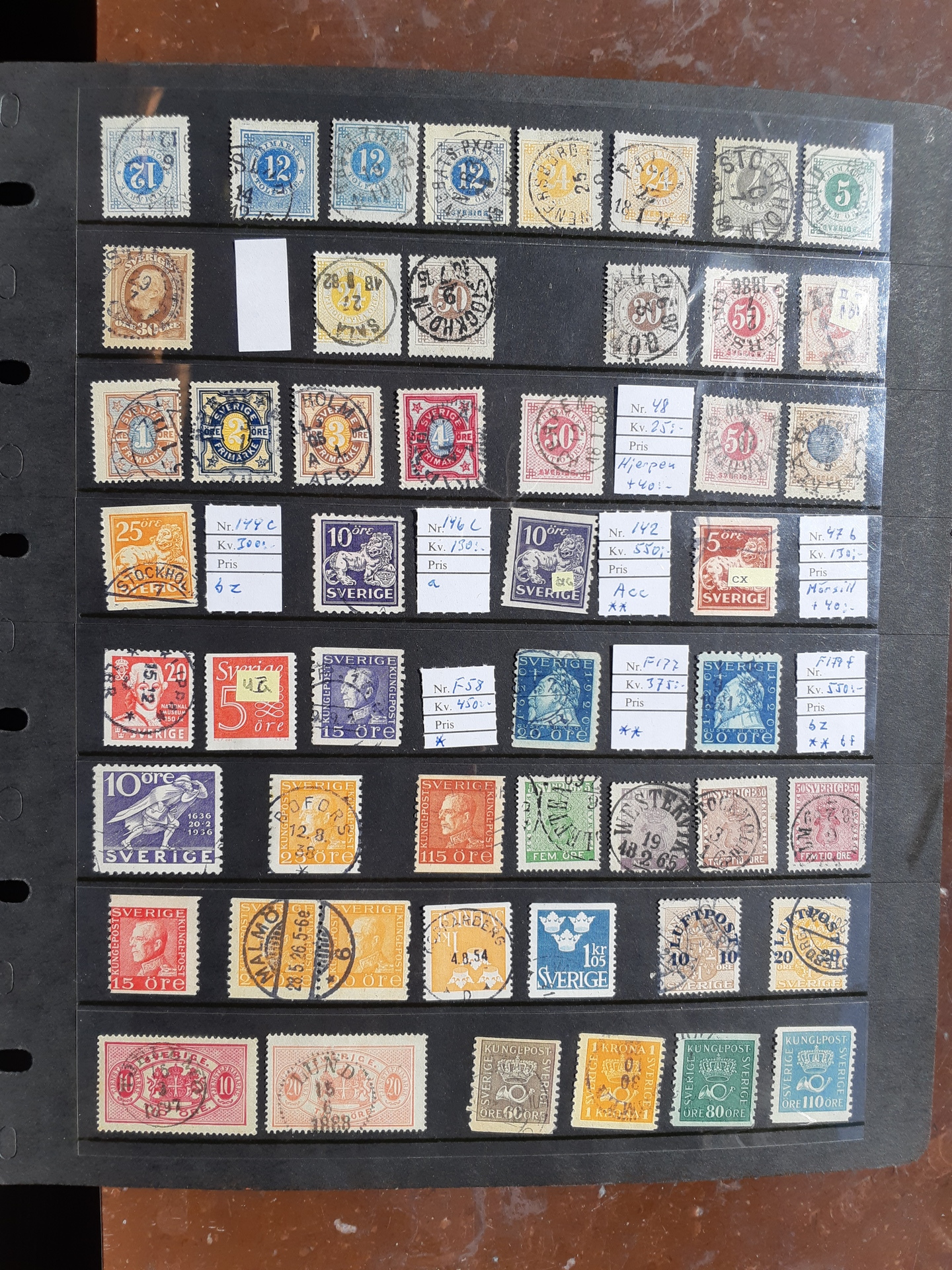 Sweden. Lot used 1860s–1940s on visir leaves. Duplicates incl. somewhat better and also an address card with F195. Also a few foreign and other. The entire lot is presented at www.philea.se. Somewhat mixed quality. (250)