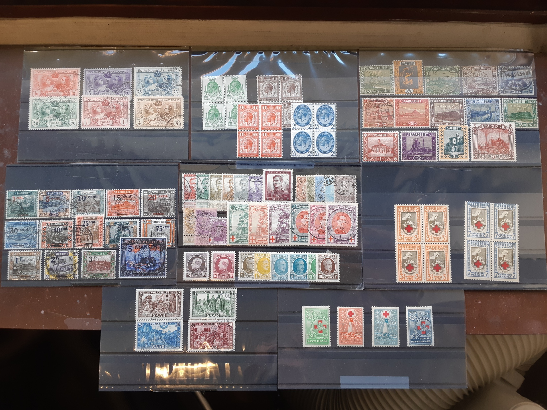 EUROPE. Lot ★★/★/⊙ 1890s–1920s on stock cards. Selected sets and stamps from e.g. Belgium, Estonia, SAAR and Spain. The entire lot is presented at www.philea.se. Mostly good quality. (95)