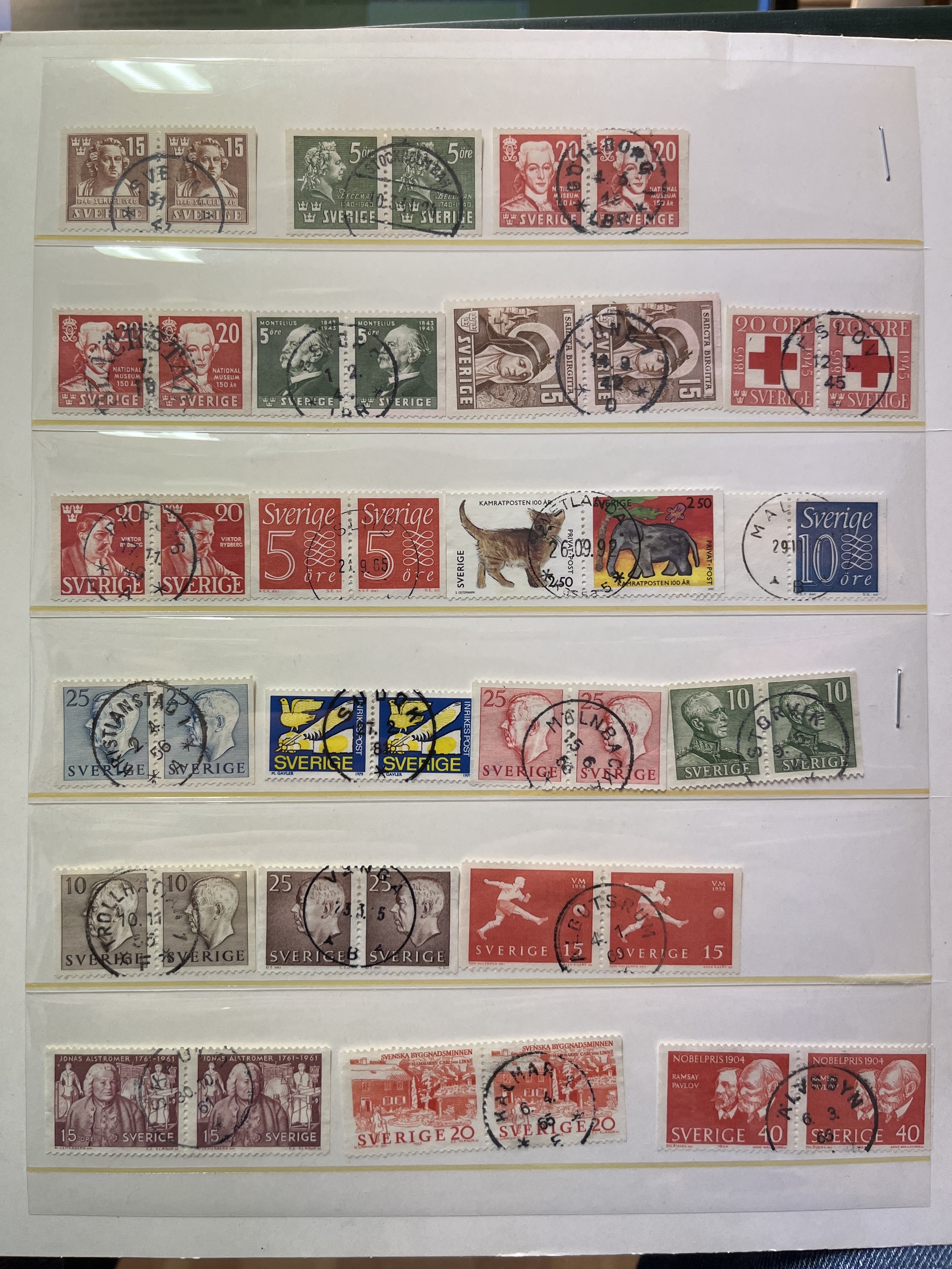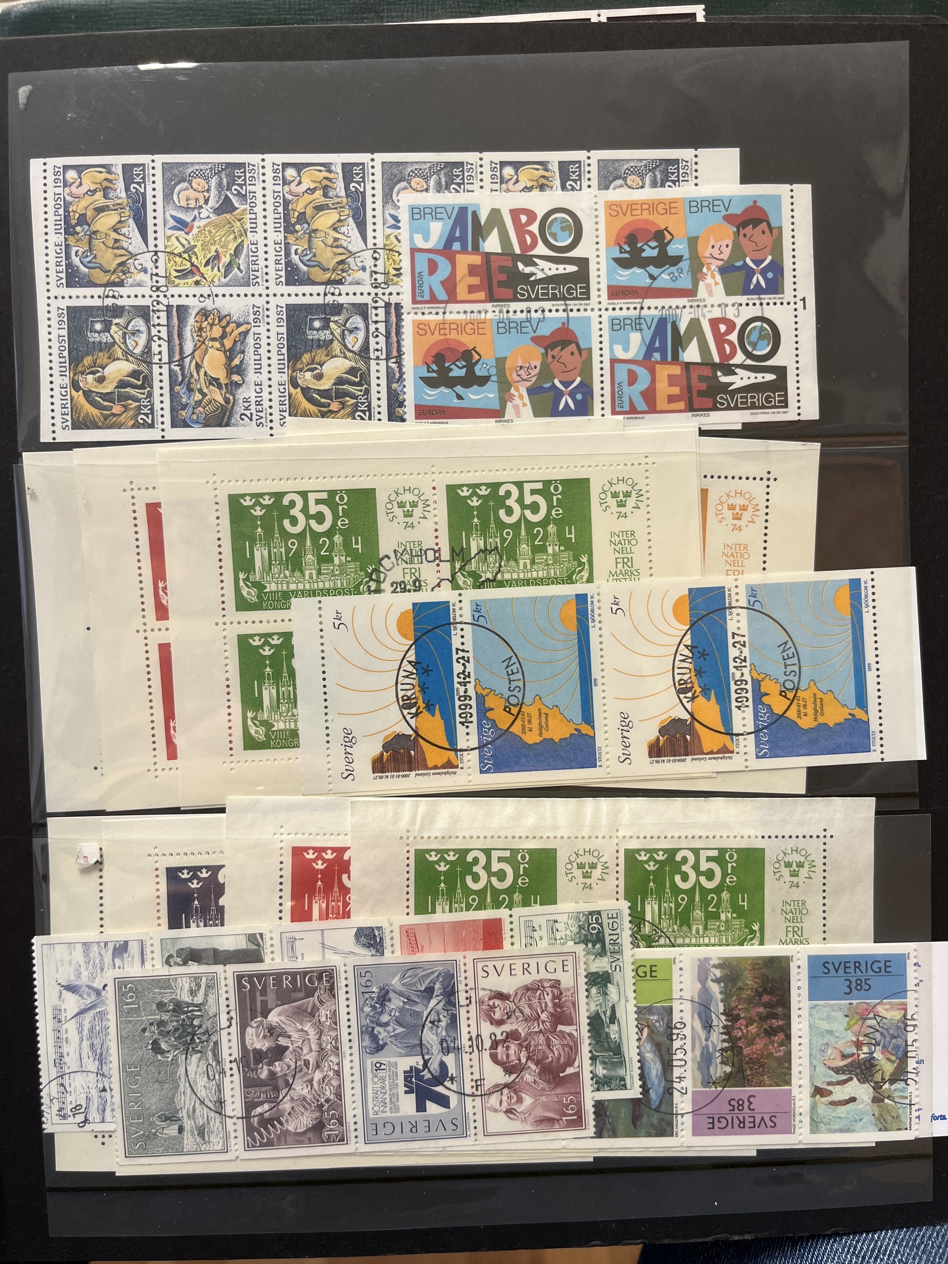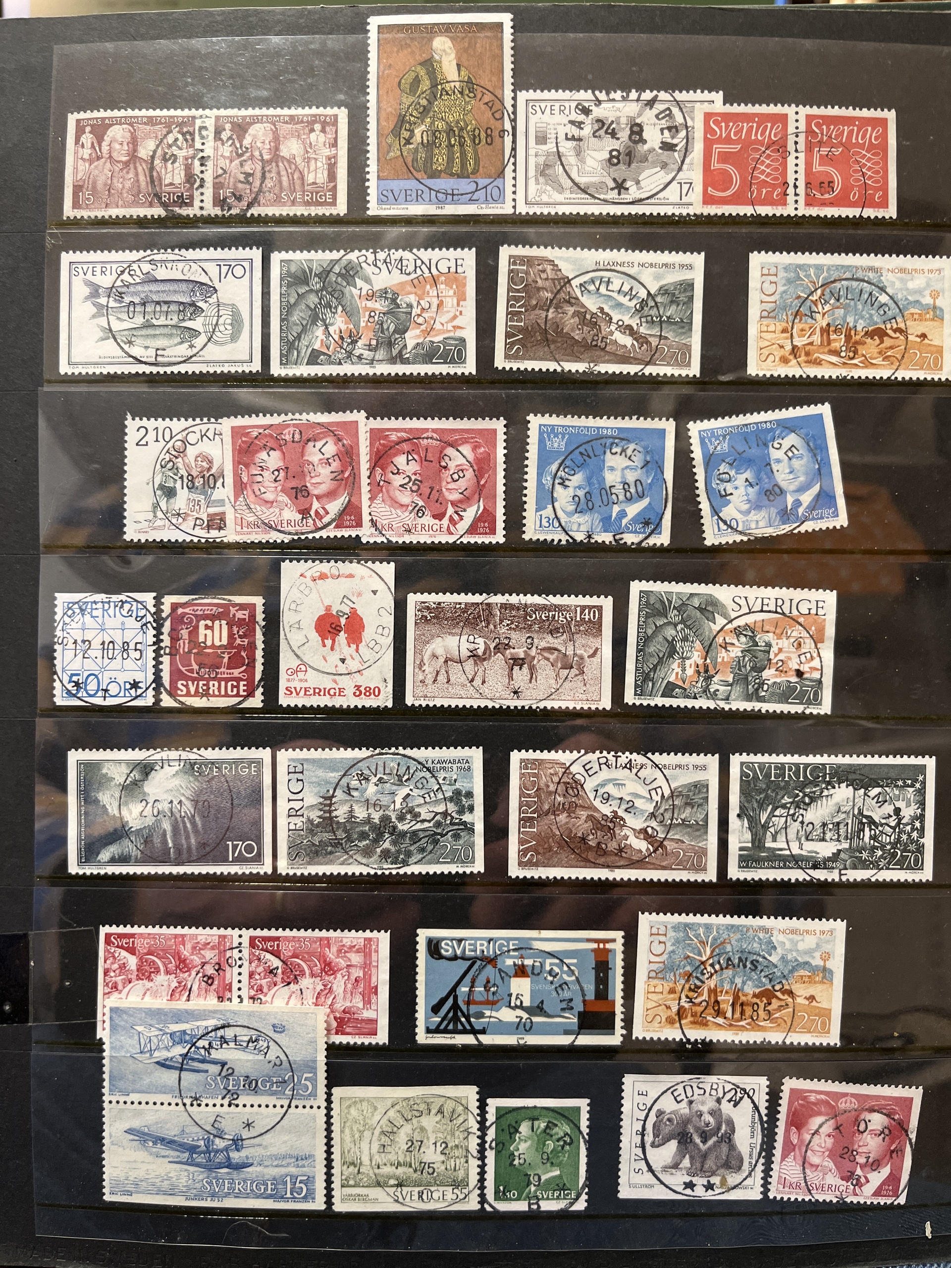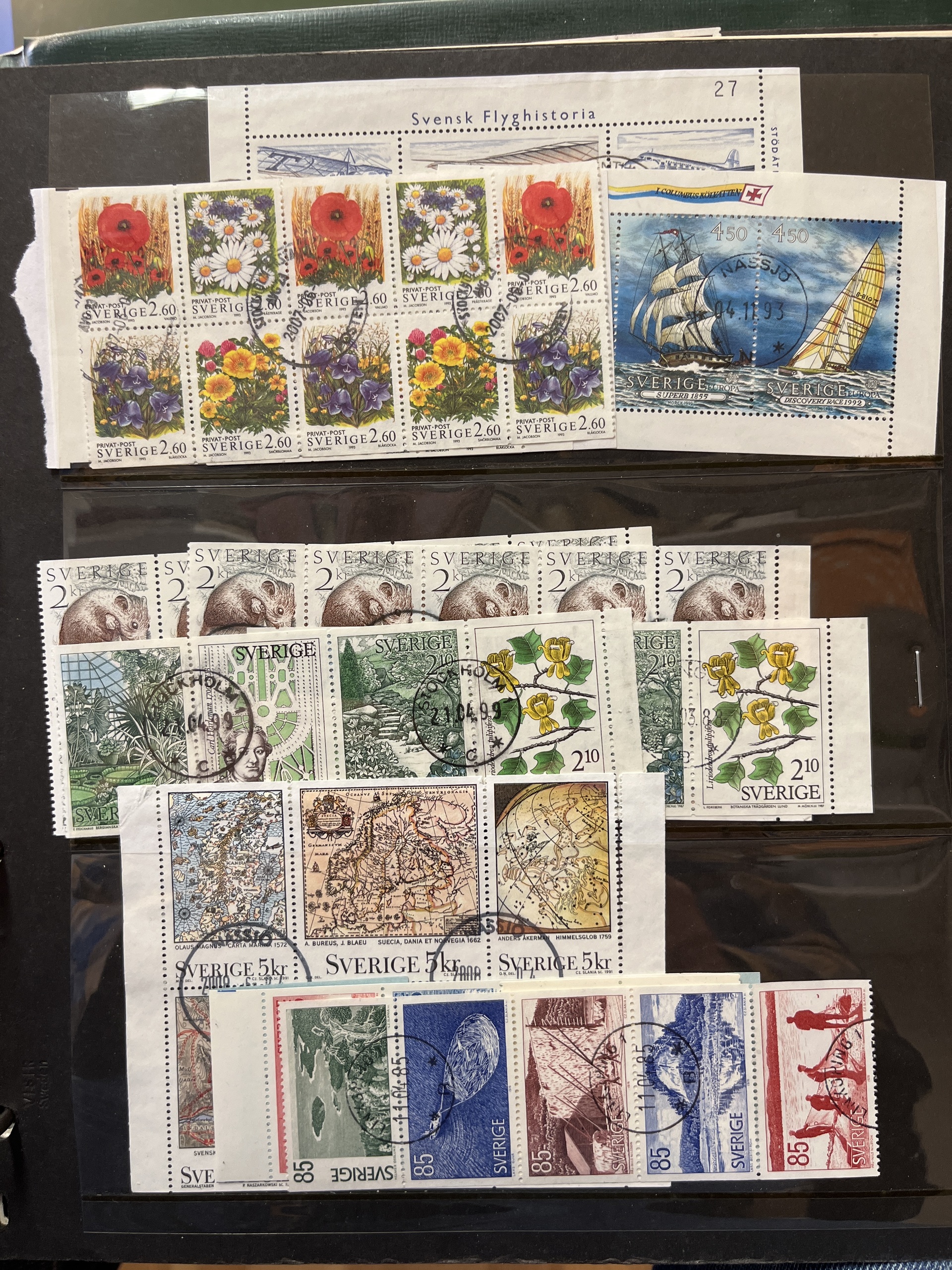 Sweden. Accumulation used ca. 1940–2000 in visir album. Over 100 stamps with fine–EXCELLENT cancellations, plus 30 visir leaves full with duplicates, many BB-pars and blocks. Fine quality.