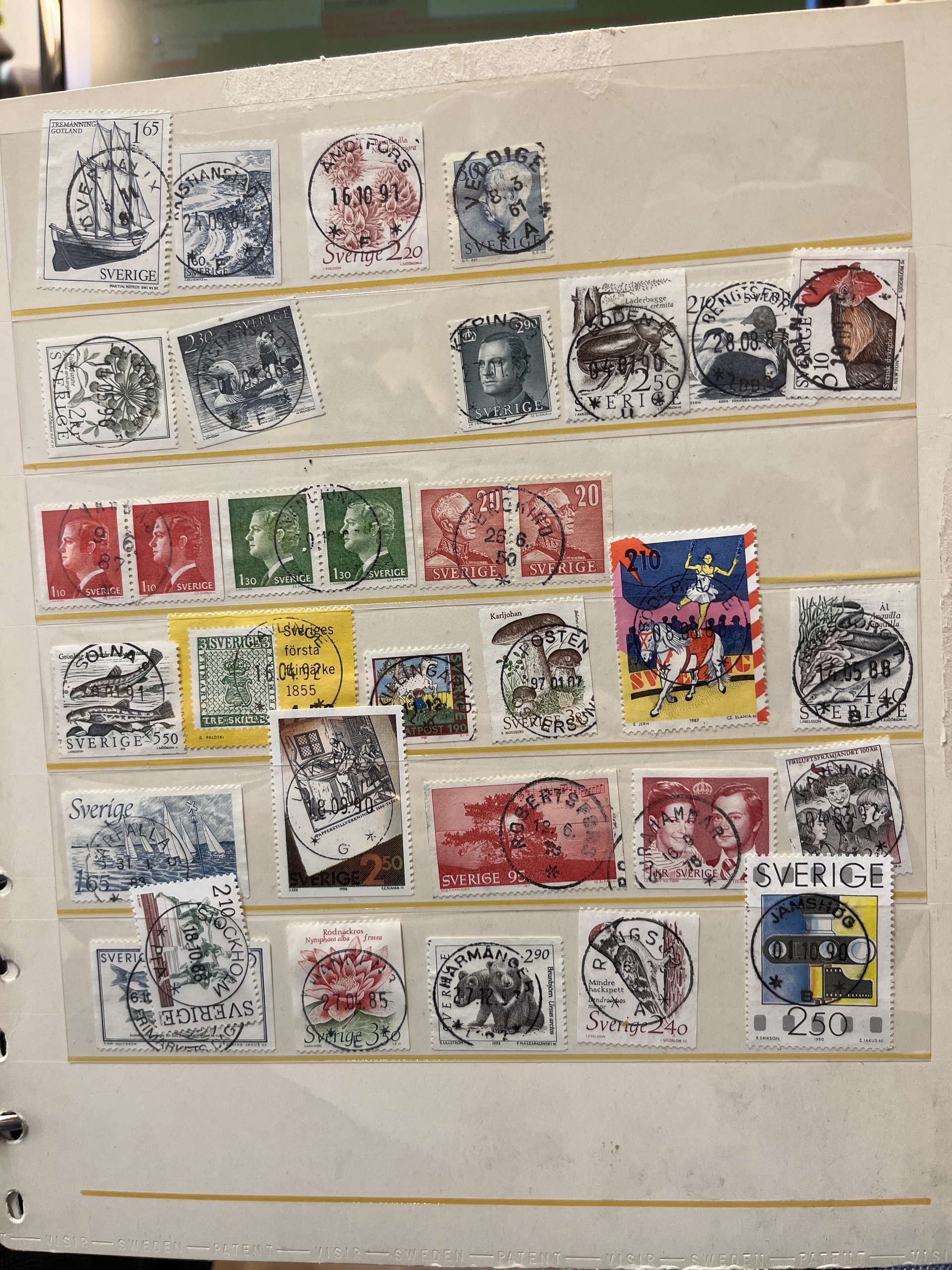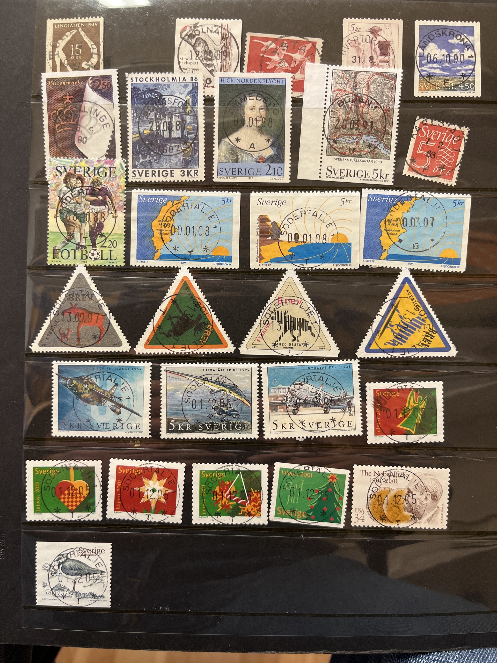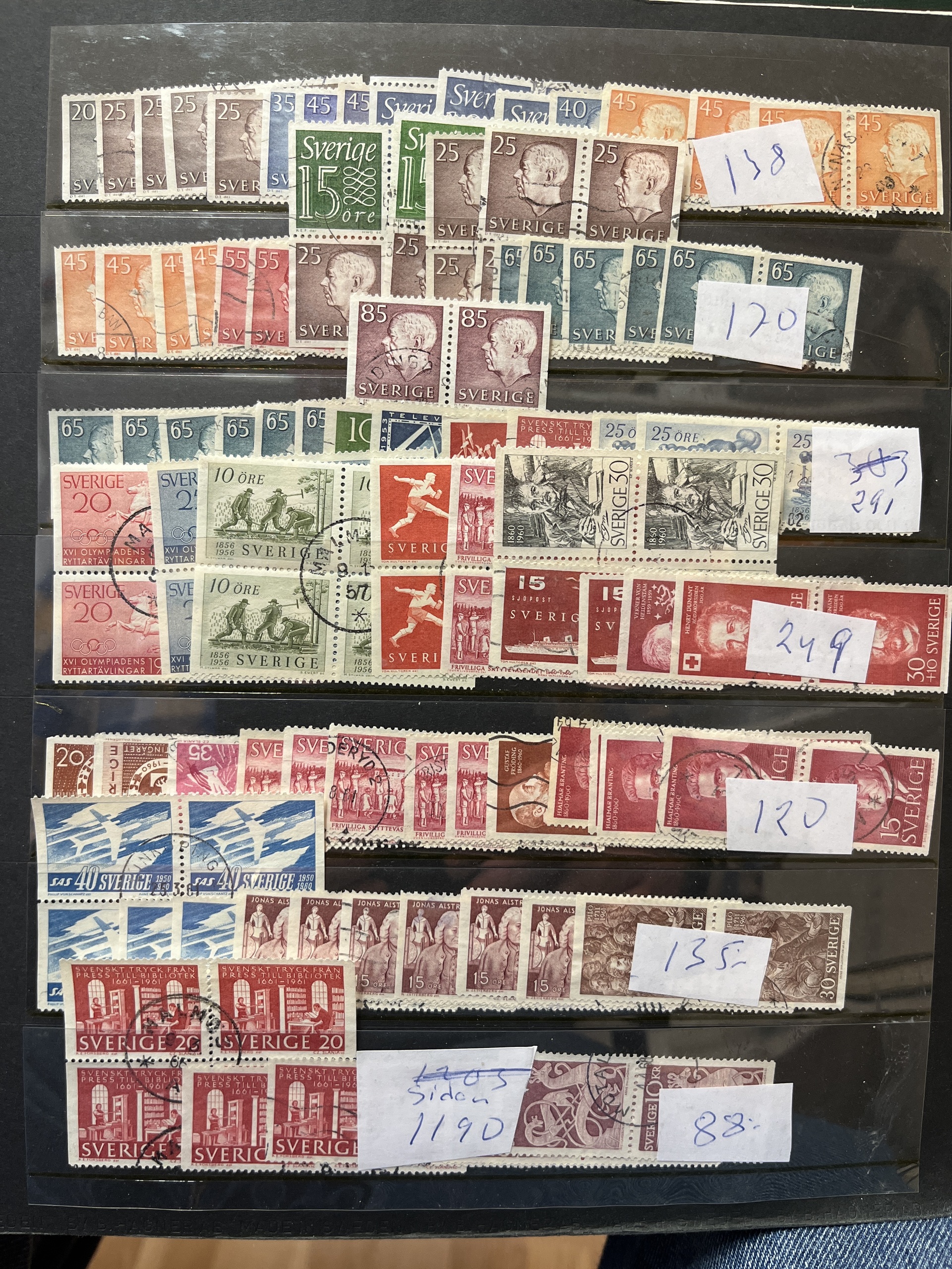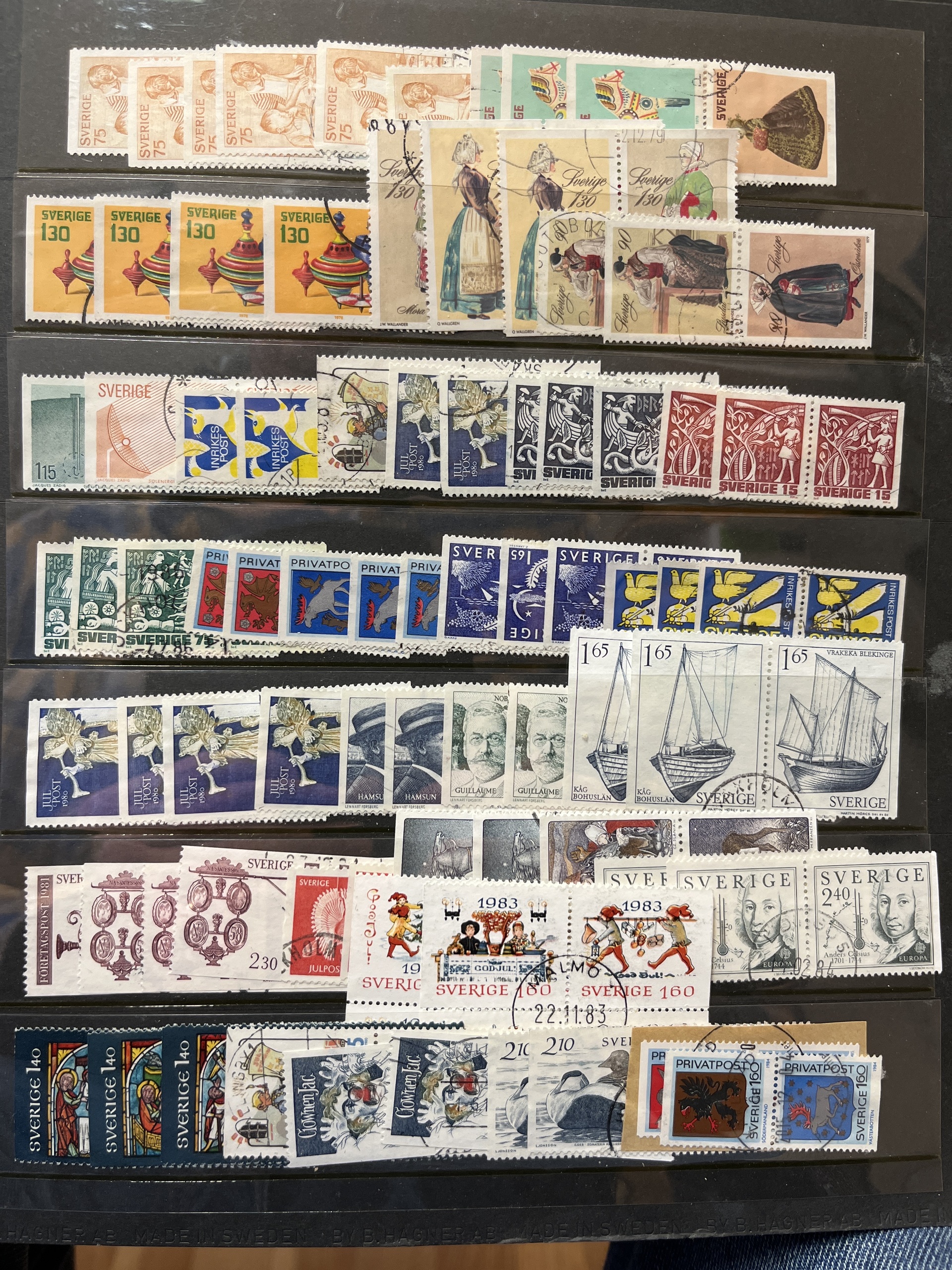 Sweden. Accumulation used ca. 1940–2000 in visir album. Over 100 stamps with fine–EXCELLENT cancellations, plus 30 visir leaves full with duplicates, many BB-pars and blocks. Fine quality.