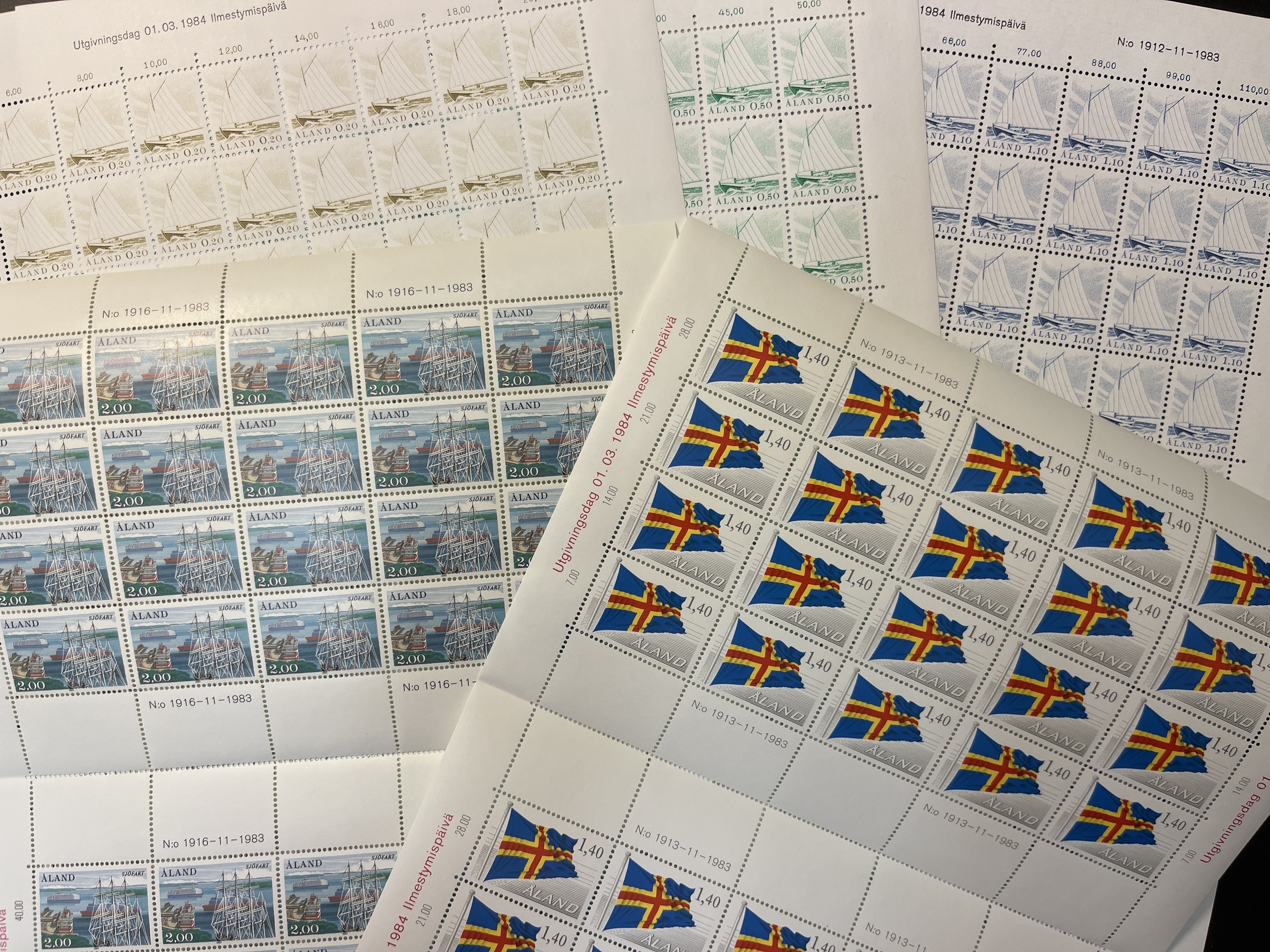 Åland. Collection ★★ 1984–2014. Leuchtturm album with stamp mounts and five sheets. Excellent quality.