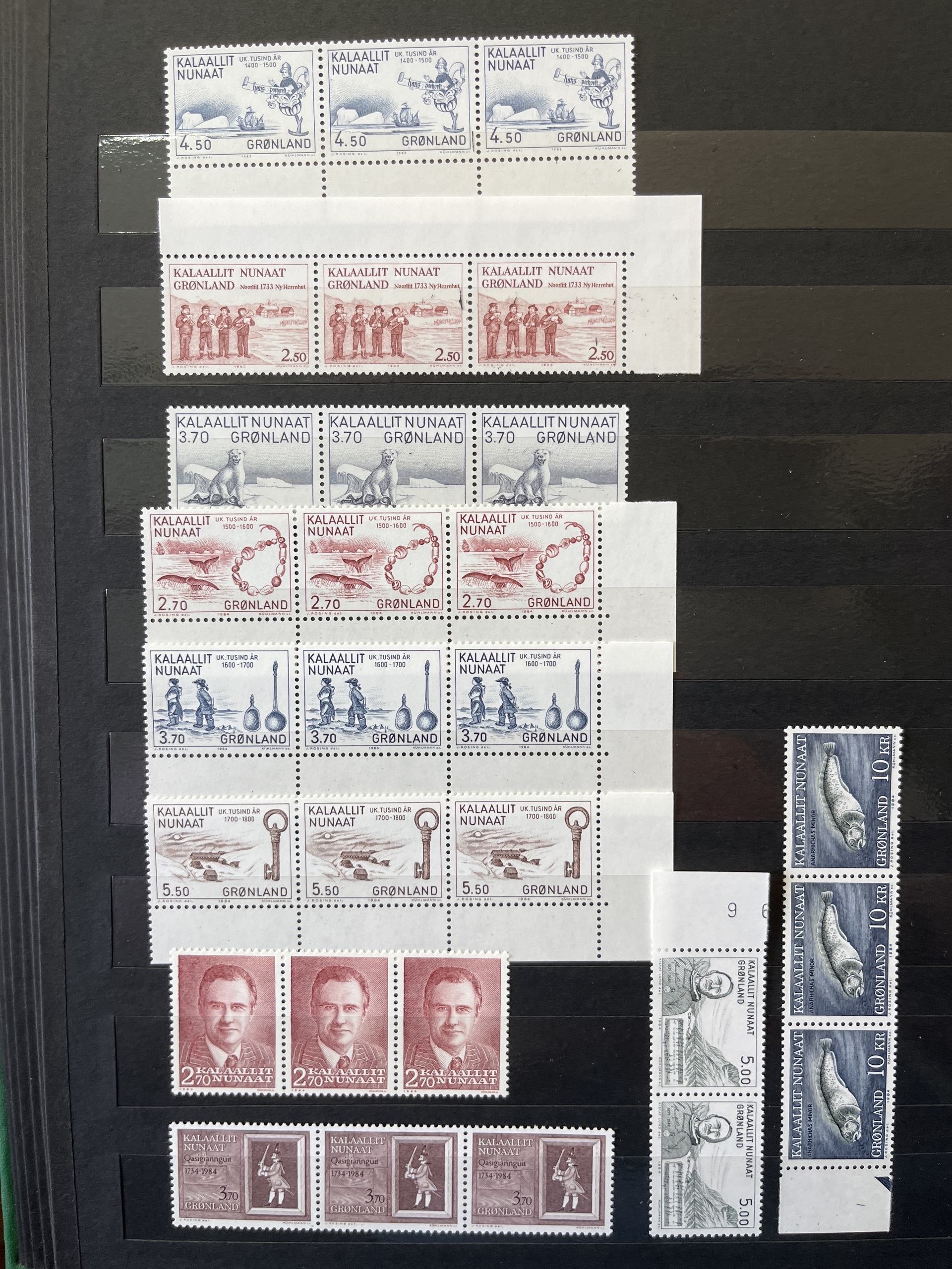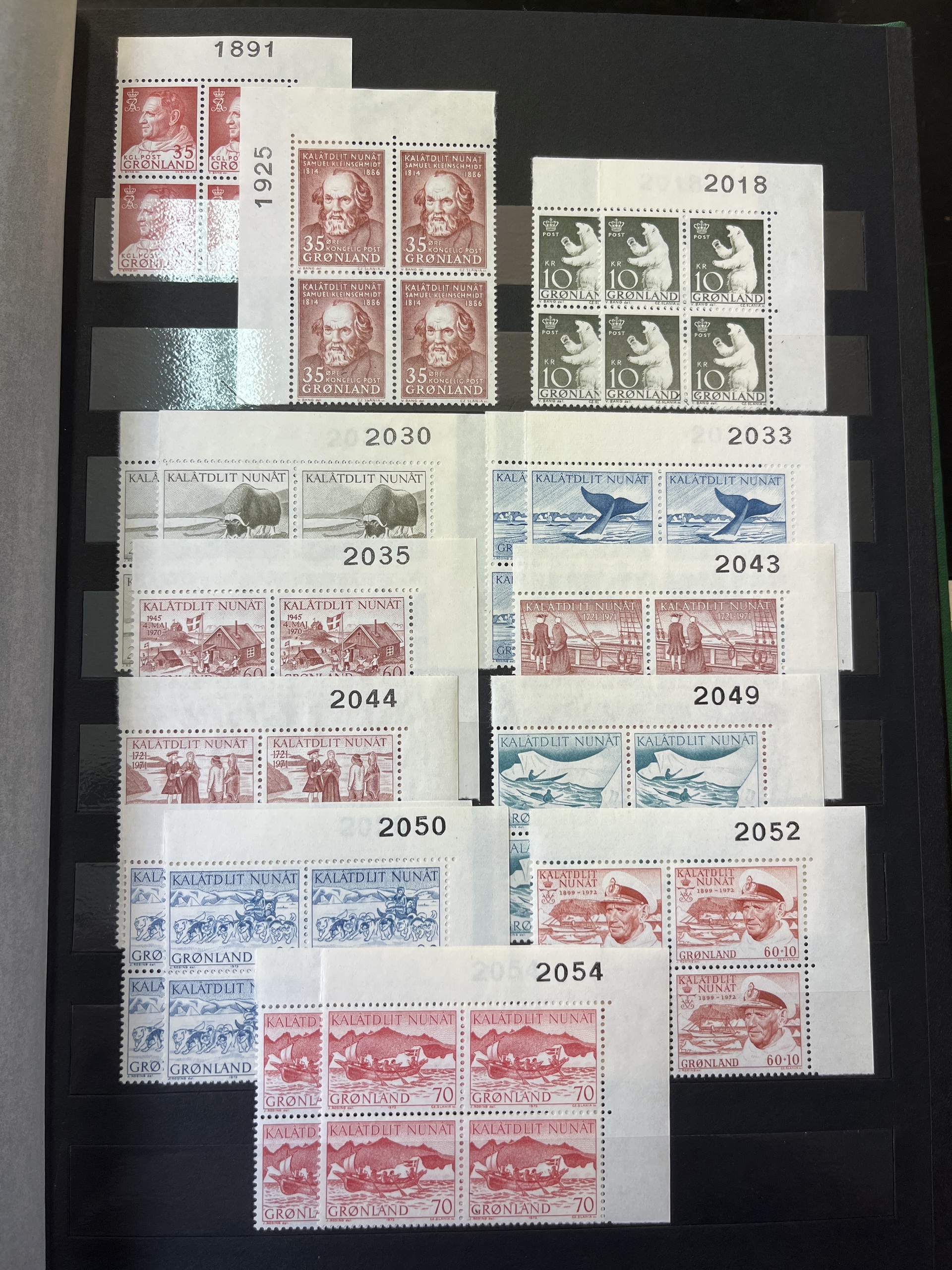 Greenland. Collection/accumulation mostly ★★ 1935–84 in large stockbook. with e.g. blocks of four. Fine quality.