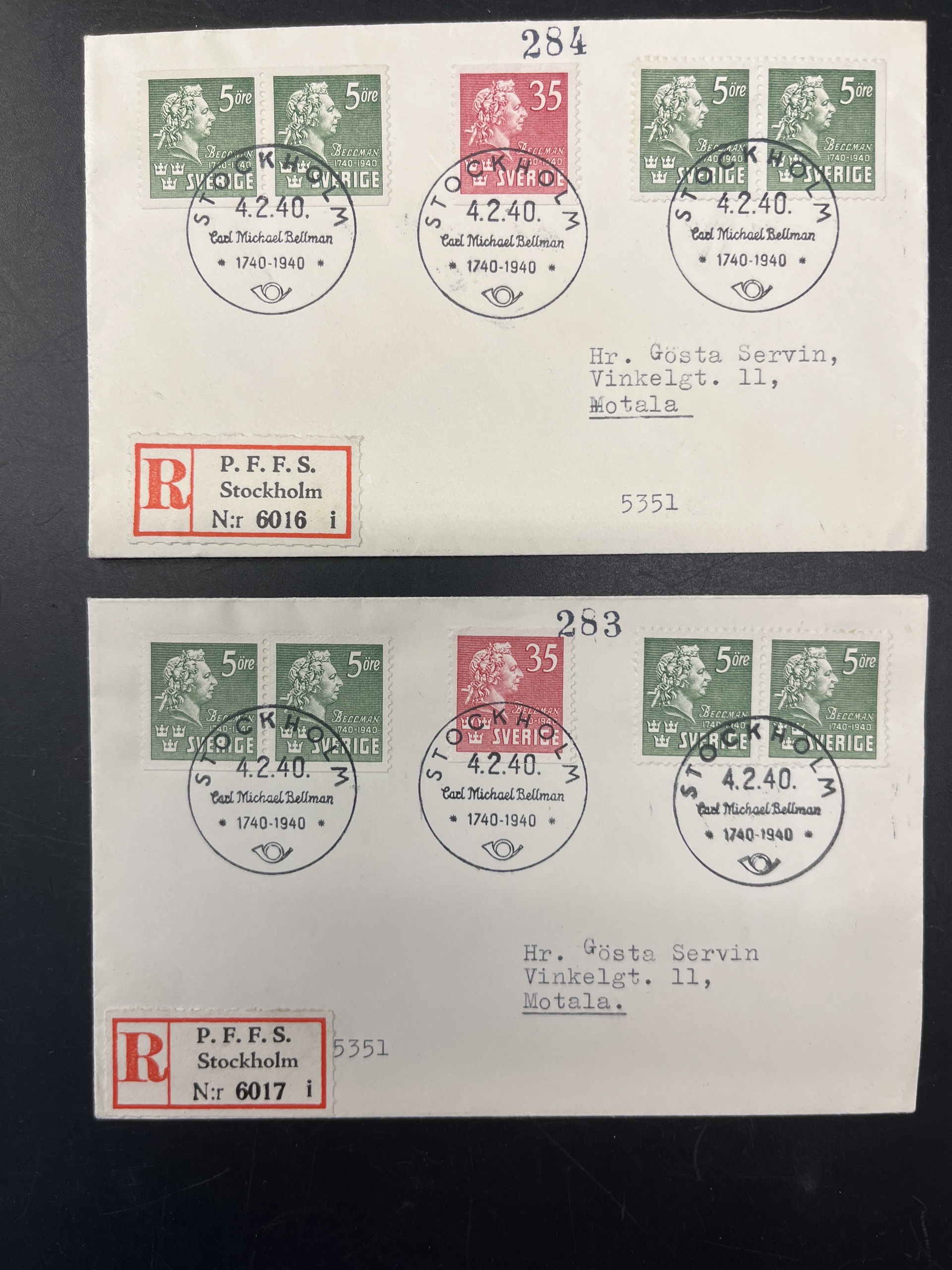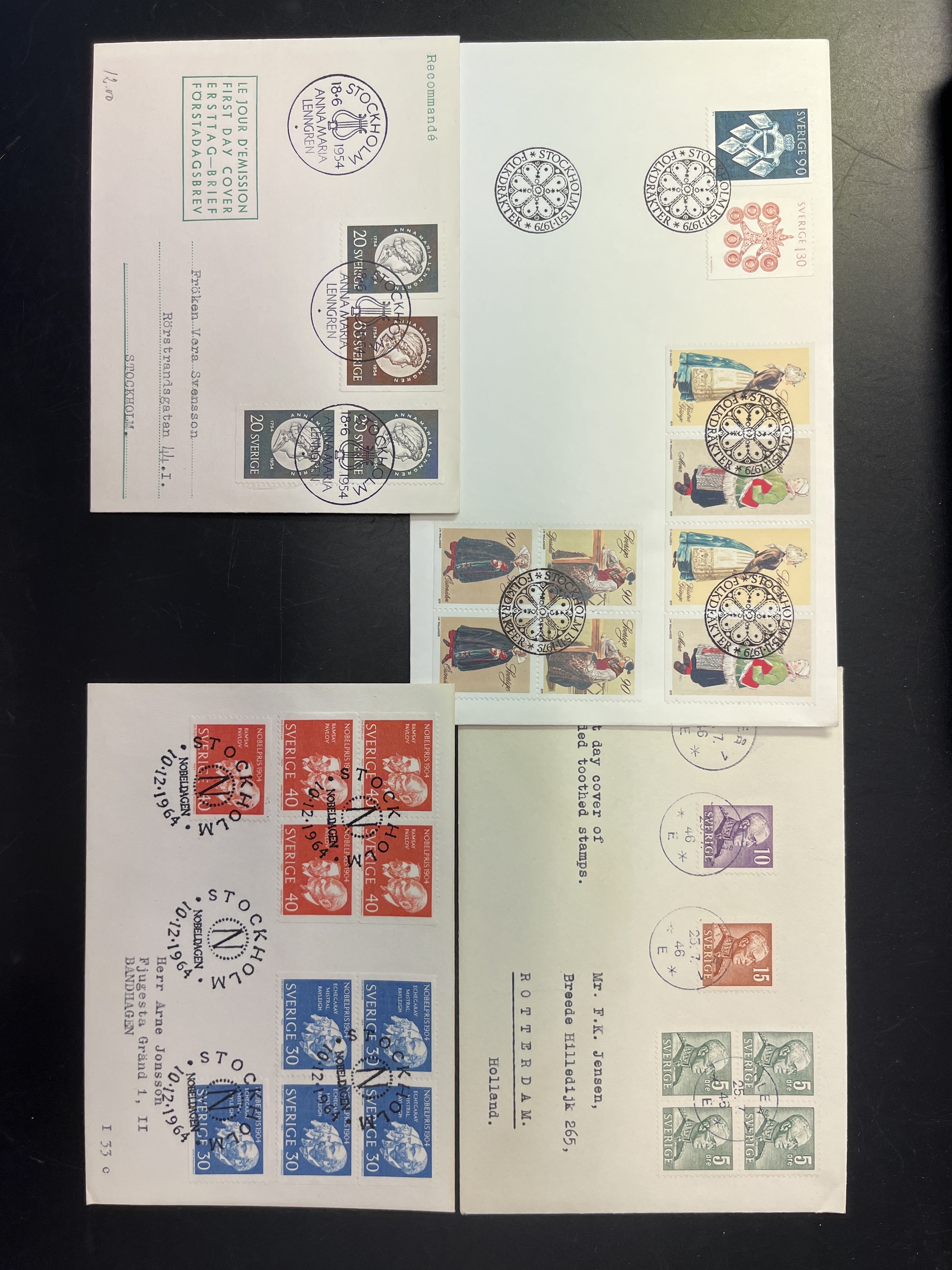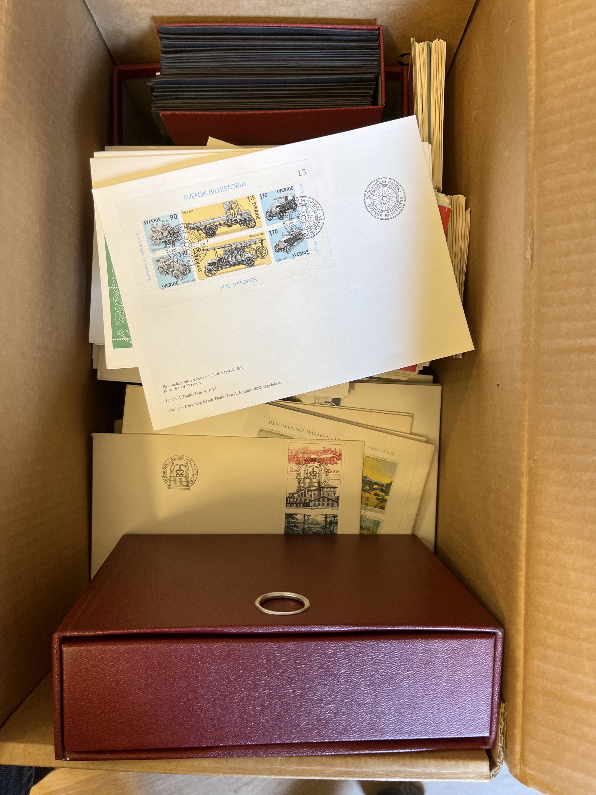 Sweden. FDCs, collection/accumulation 1936–95 in box. Many BB-pairs in blocks of four. Approx. 11 kg.