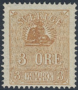 Sweden. Facit 14Bd ★, 3 öre orange-brown, type II. SEK 2200