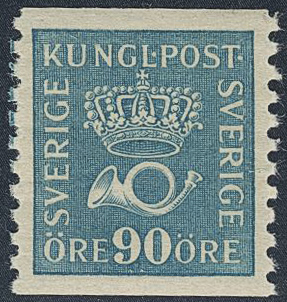 Sweden. Facit 167 ★★, 90 öre blue vertical perf 9¾. Perfect centering. SEK 1900