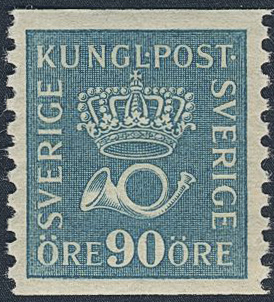 Sweden. Facit 167 ★★, 90 öre blue vertical perf 9¾. Very good centering. SEK 1900