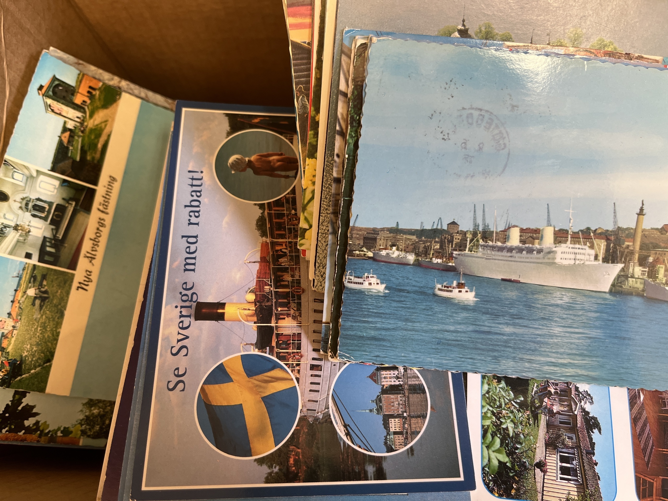 Sweden. Picture postcards, accumulation in box. 2500 modern topo from Sweden in A6 format. Approx. 11 kg.