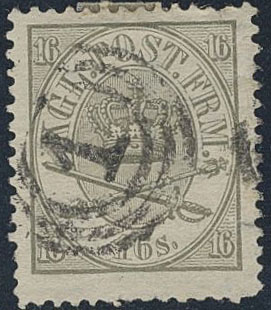 Denmark. Facit 15 used, 1868 Large Oval Type 16 skill greenish dark grey. SEK 1600