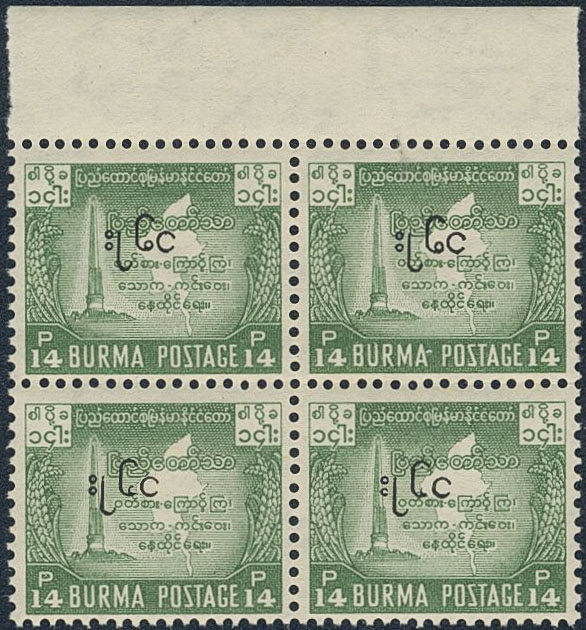 Burma. SG 164a ★★, 1961 15p on 14p green with INVERTED OVERPRINT variety. GBP 104