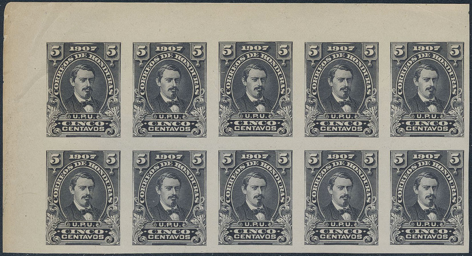 Honduras. SG 121 ★★, 1907 Jose Medina 5 c black proof imperf. block of 10.