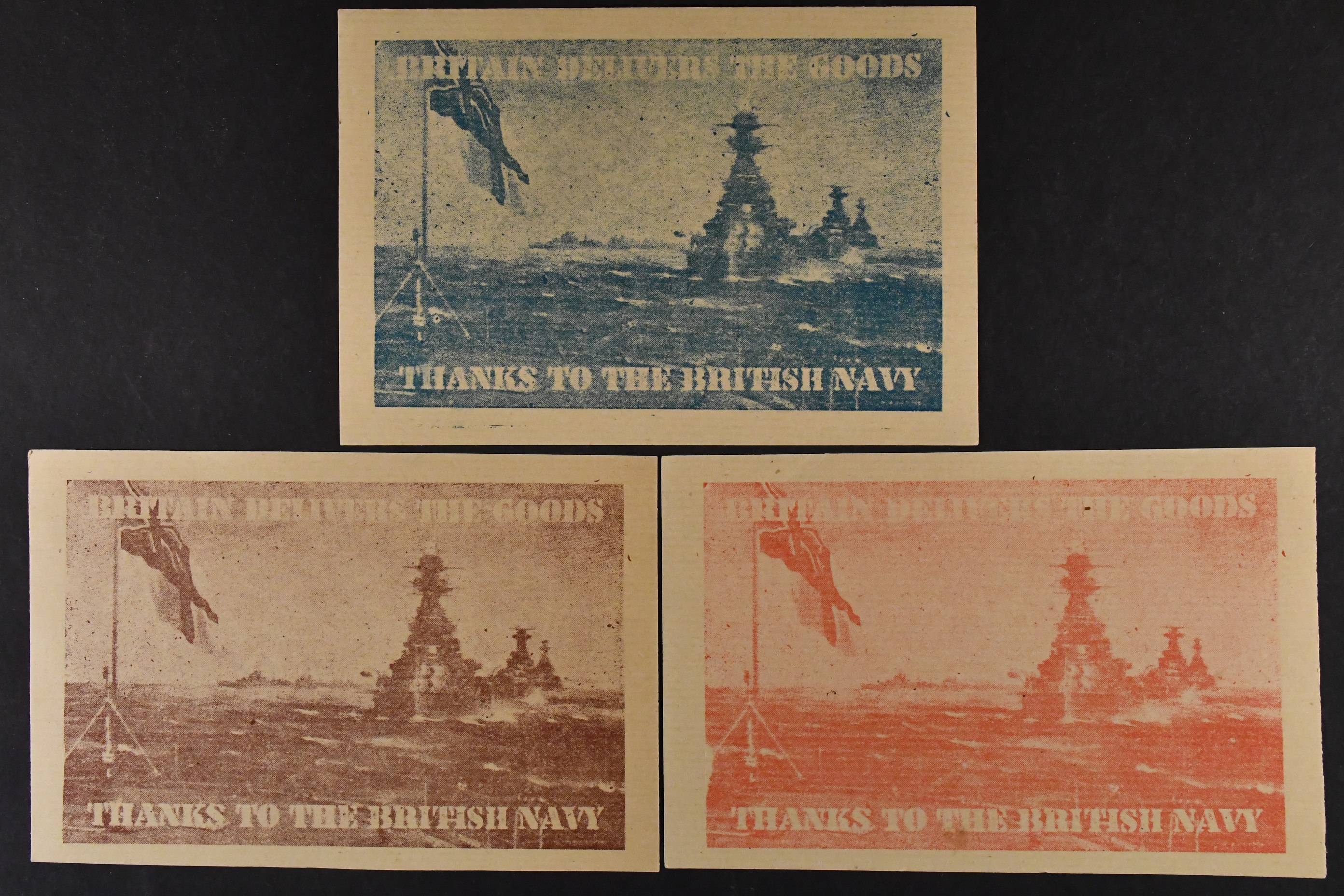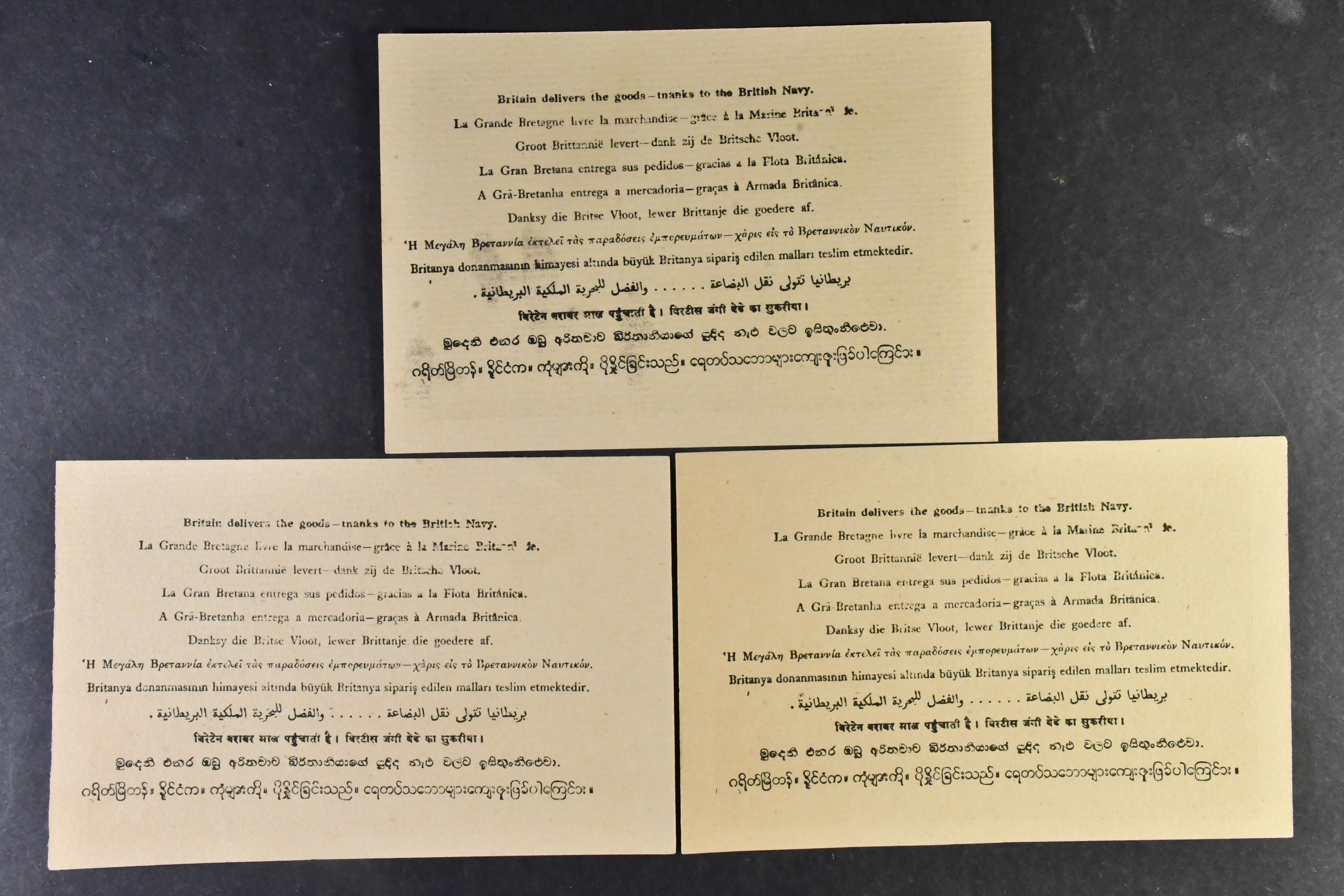 India. Cover, WW2 British propaganda postcard BRITAIN DELIVERS THE GOODS – THANKS TO THE BRITISH NAVY.