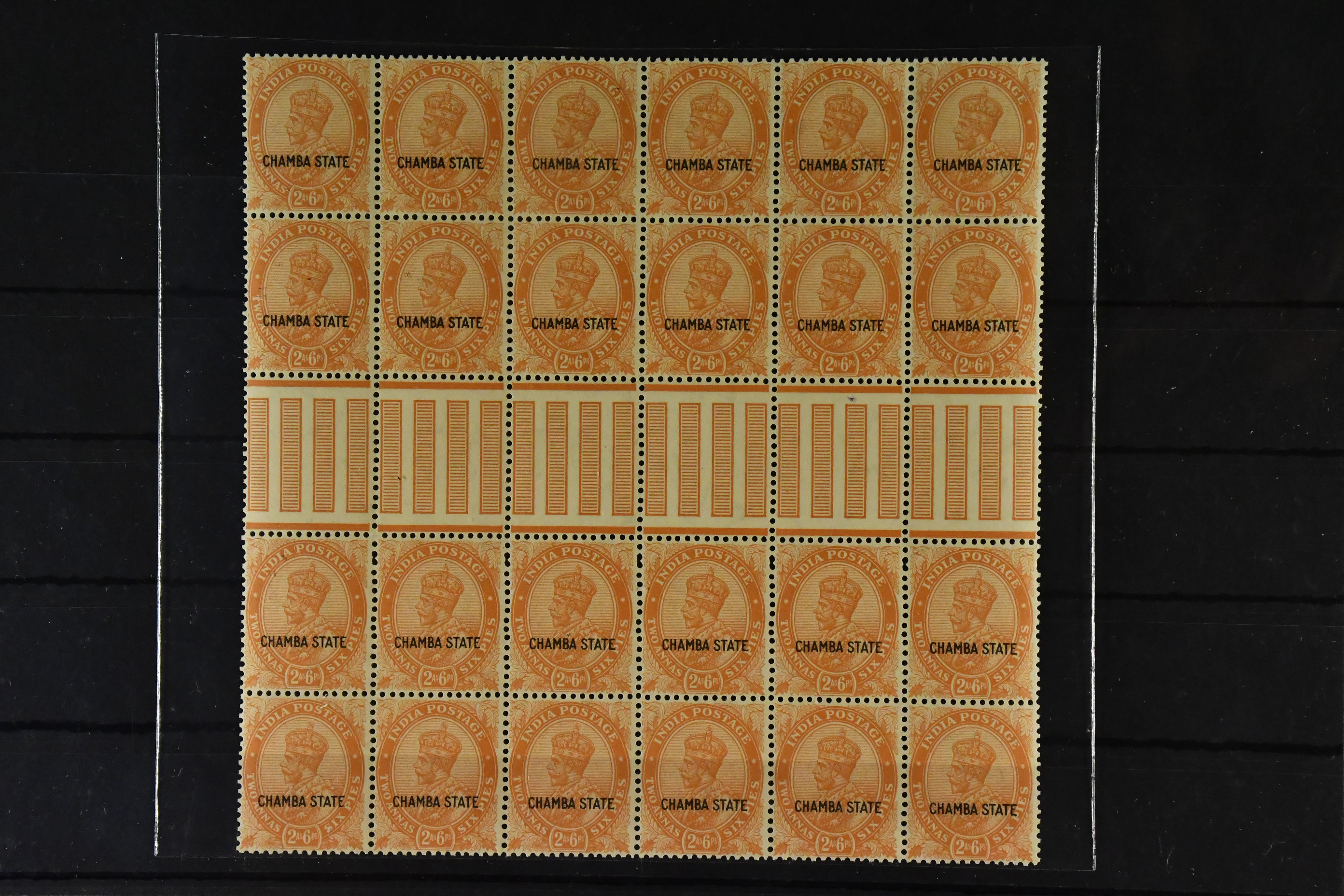 India, Chamba. SG 69 ★★, 1927–37 2a 6p in block of 24 with 6 very fine gutter pairs. GBP 192