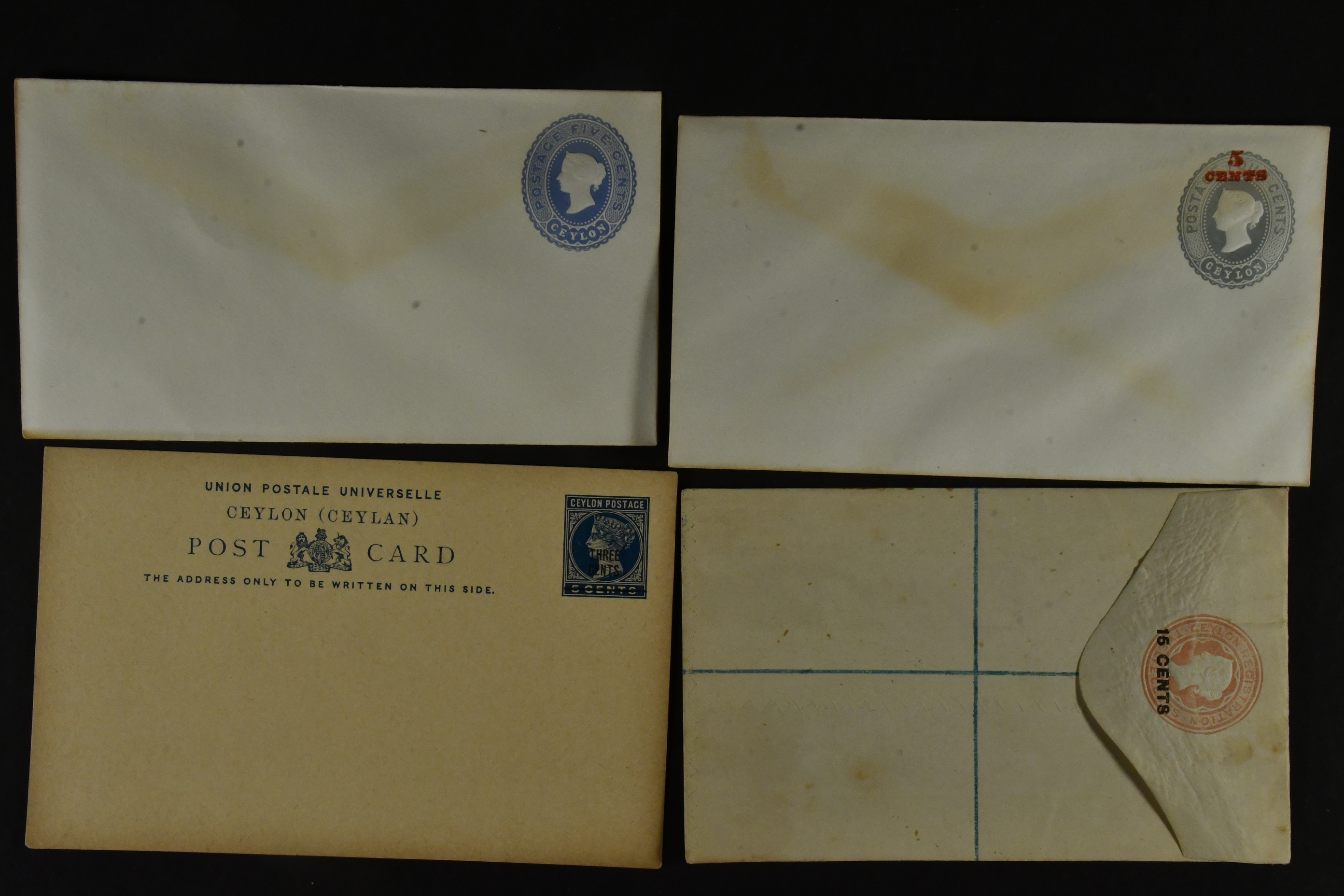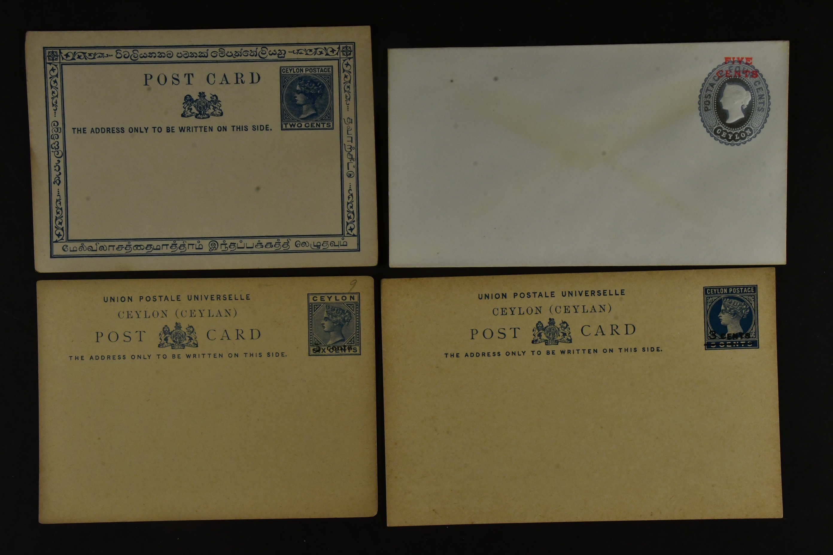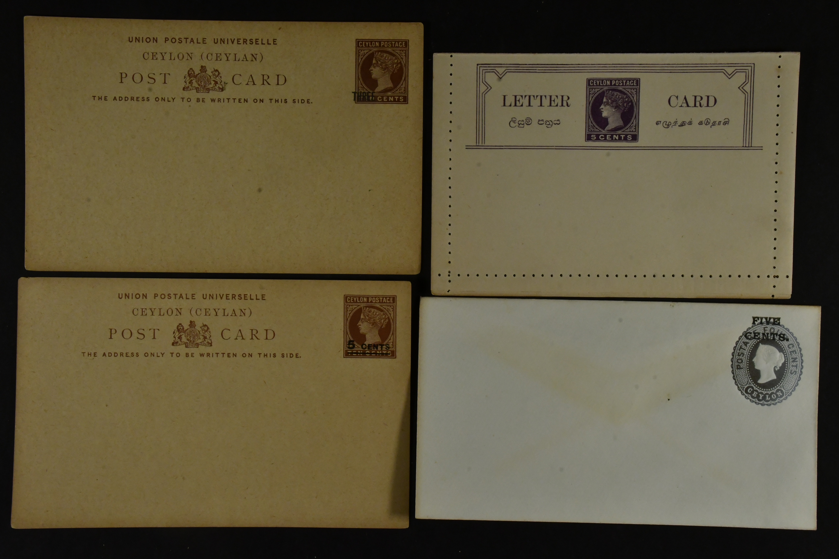 Ceylon. Postal stationery. 20 unused cards and covers, almost all with overprints.