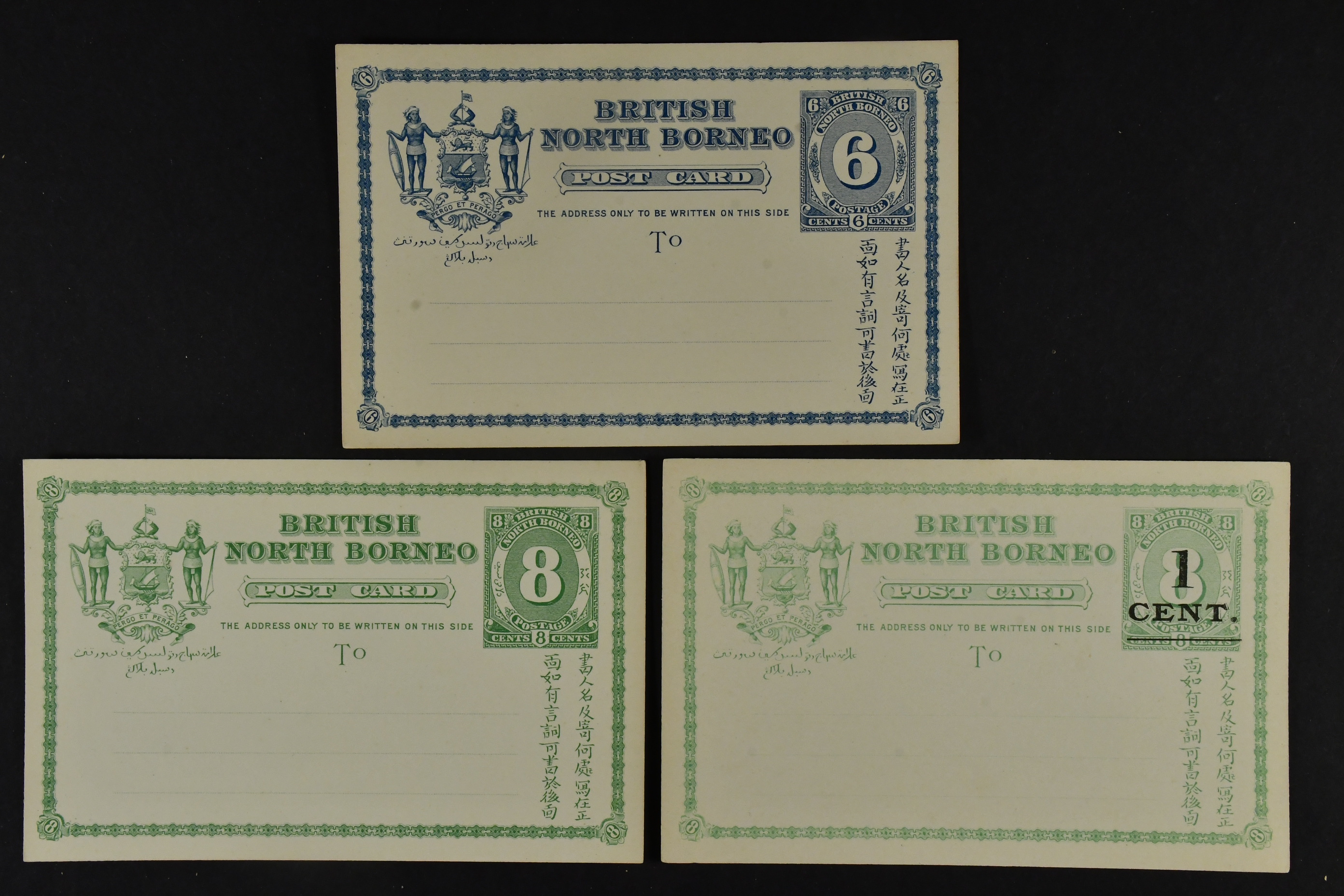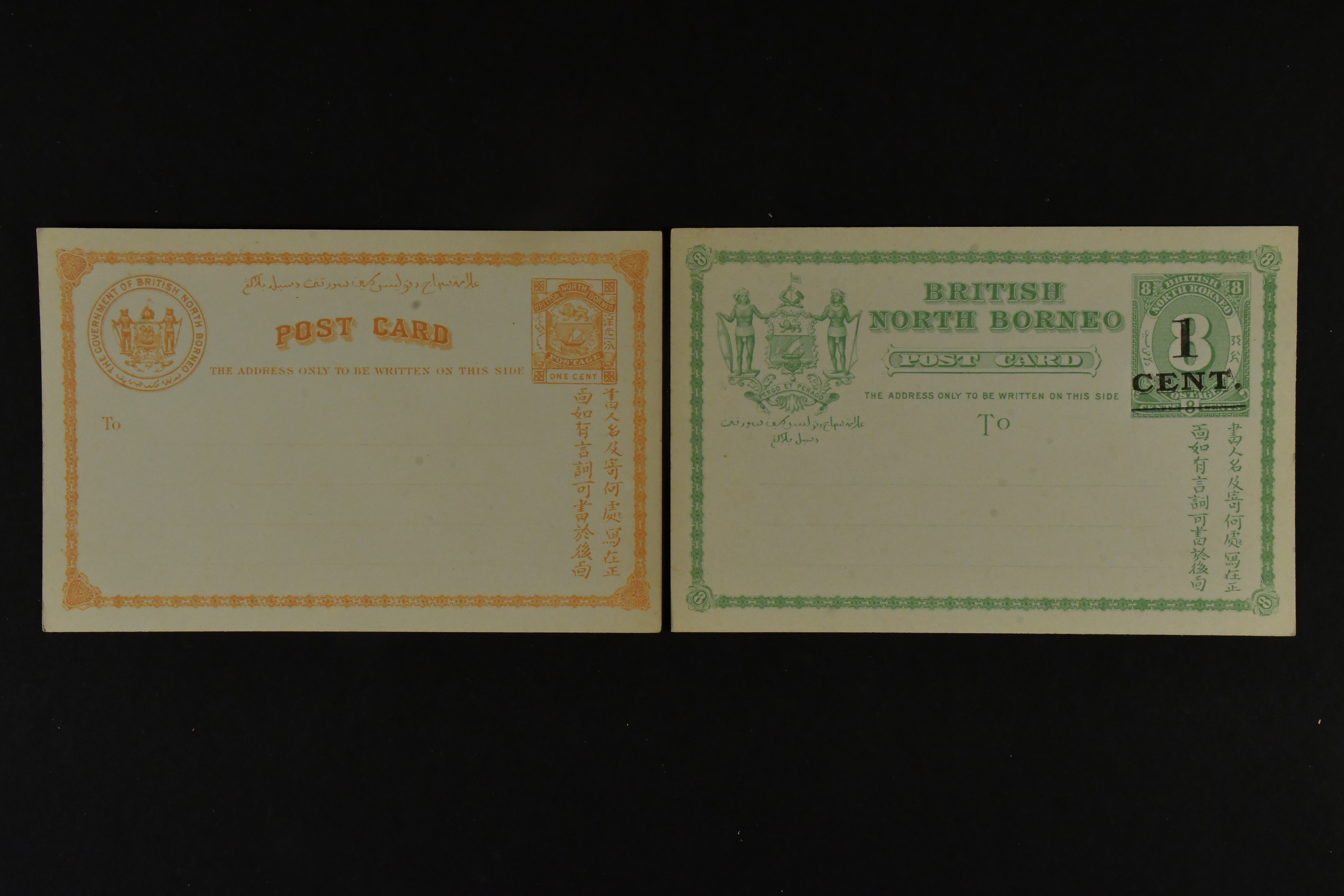 Malayan states, North Borneo. Postal stationery. 5 unused postal cards H&G #3, 5, 6, 8 (2 shades).