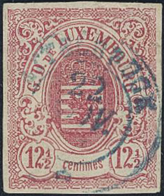 Luxembourg. Michel 7 used, 1860 Coat-of-Arms, imperf. 12½ c rose. EUR 200