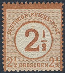 Germany, Reich. Michel 29 ★★, 1874 Large Coat-of-arms 2½ on 2½ Gr orange. Clear margins. EUR 120