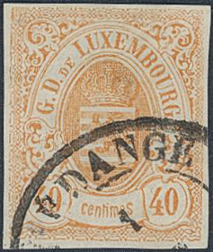 Luxembourg. Michel 11 used, 1859 Coat-of-Arms, imperf. 40 c red-orange. EUR 300