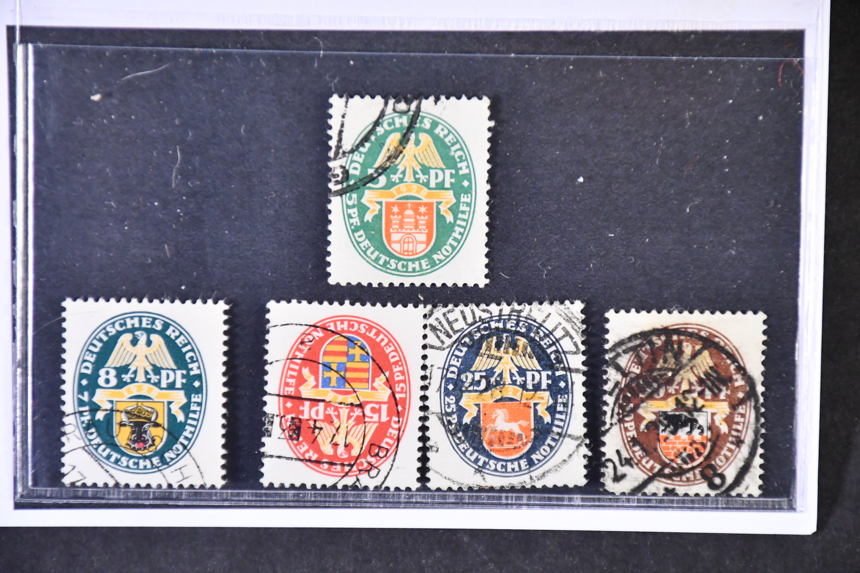 Germany, Reich. Michel 425–29 used, 1928 Charity – Coat-of-Arms III SET (5). 10 c cut into the picture, on piece. EUR 200