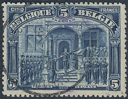 Belgium. Michel 127A used, 1915 Different Designs 5 Fr blue perf 14. EUR 150