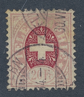 Switzerland. Telegraph Michel 19 used, 1881 Coat-of-Arms 20 Fr pale brownish carmine/pale rose on granite paper. EUR 200