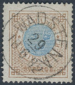 Sweden. Facit 27 used, 1 Riksdaler. Superb cancellation WADSTENA 29.6.82. Small thin spot.