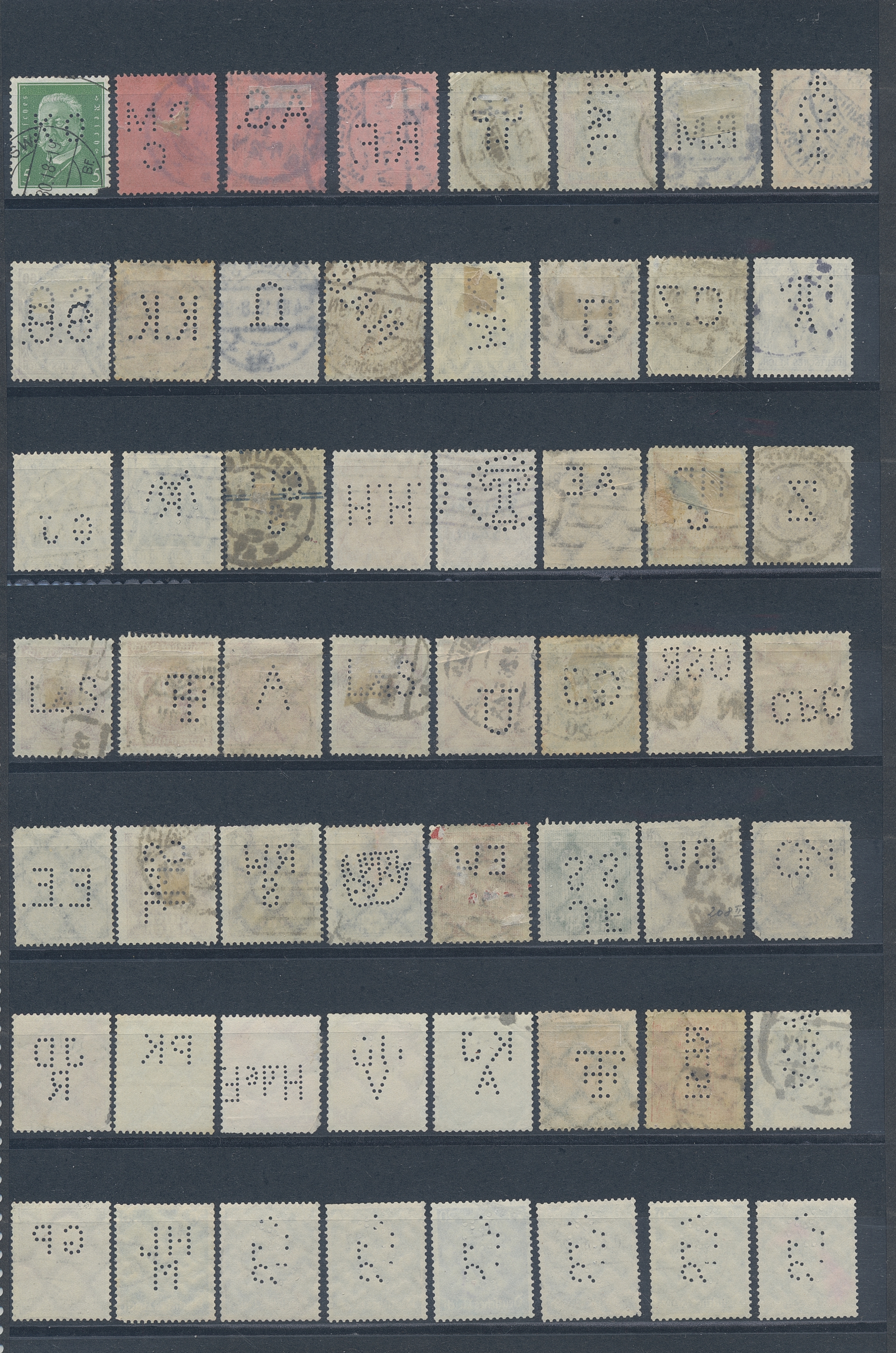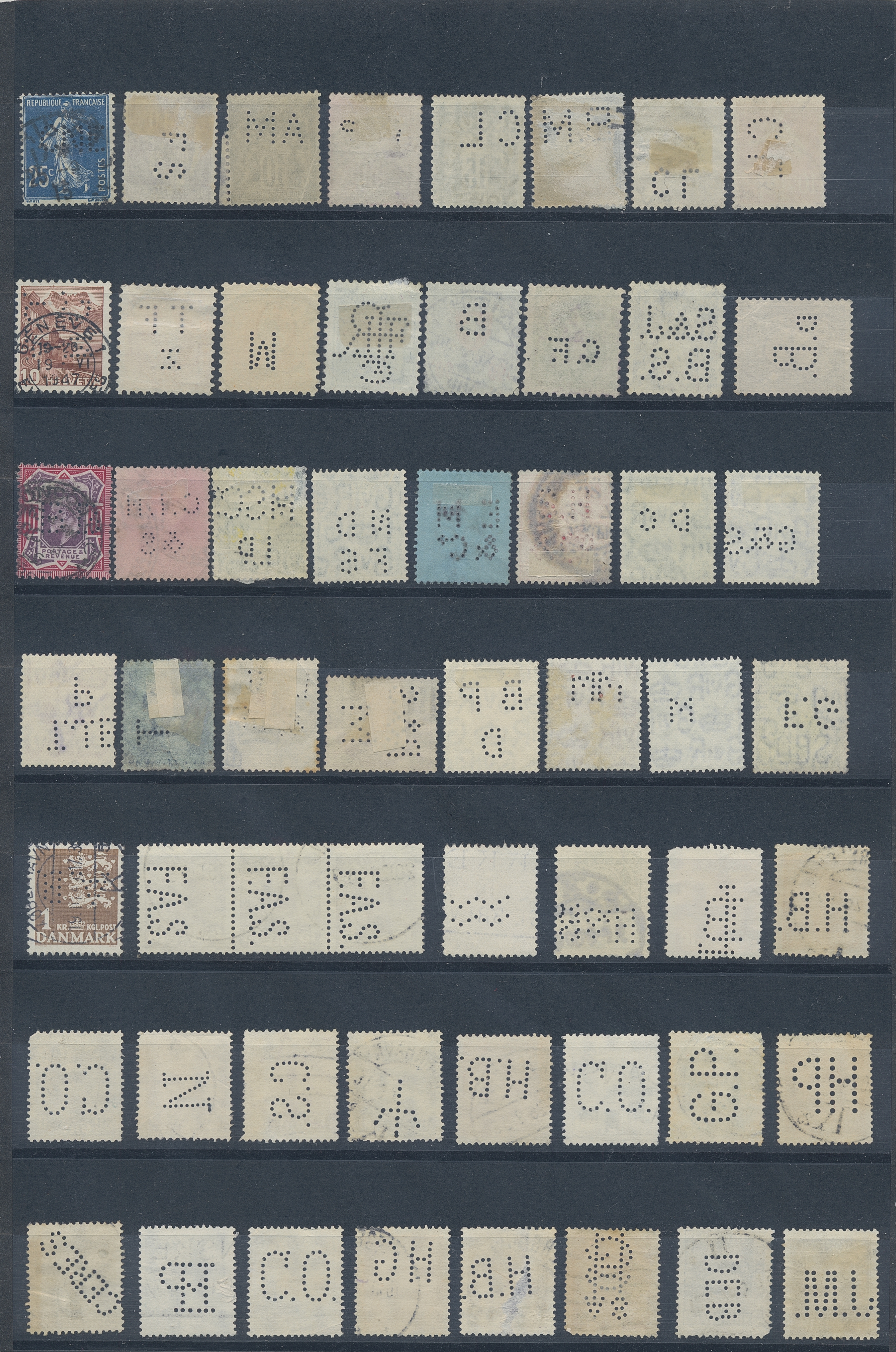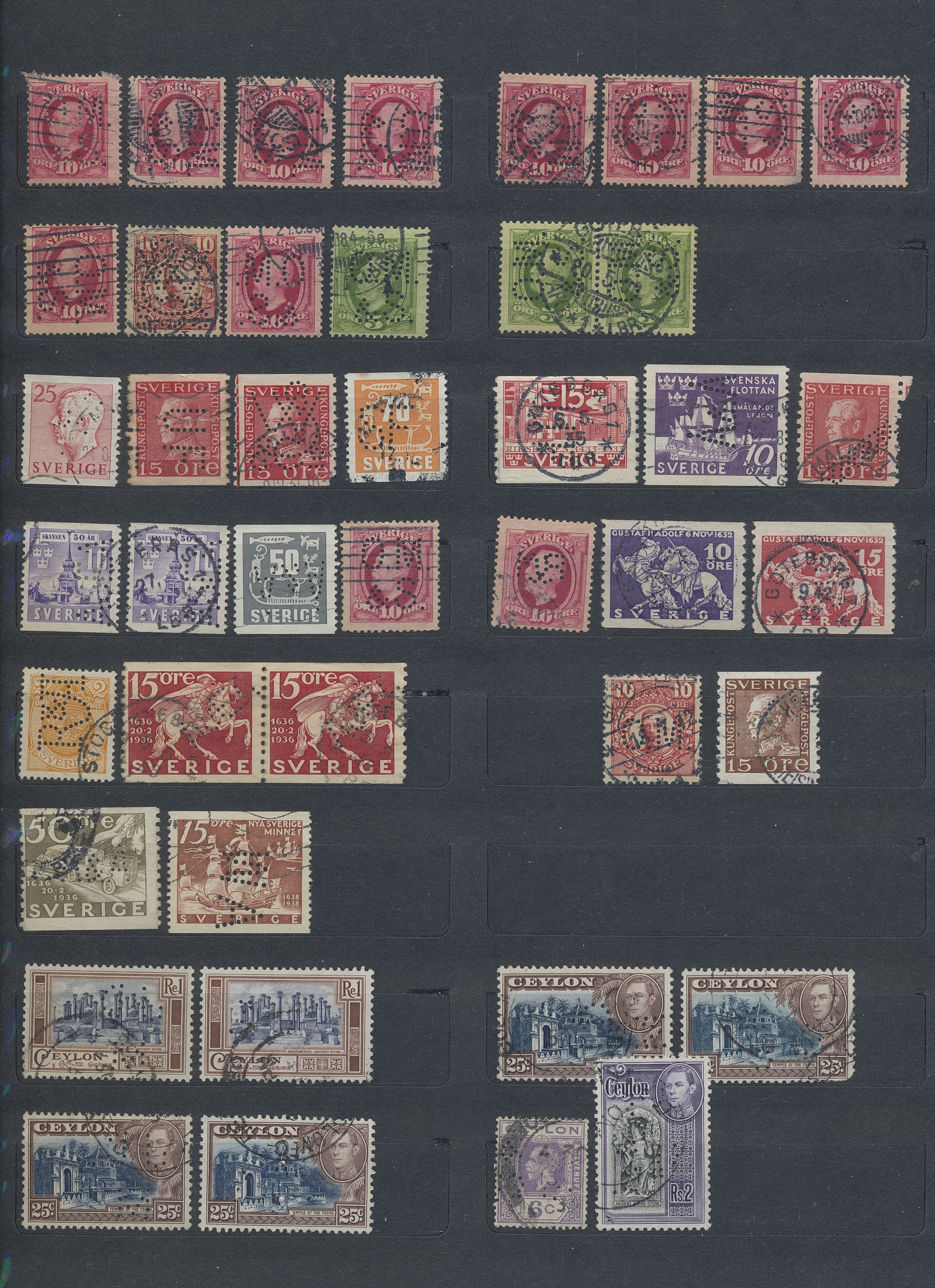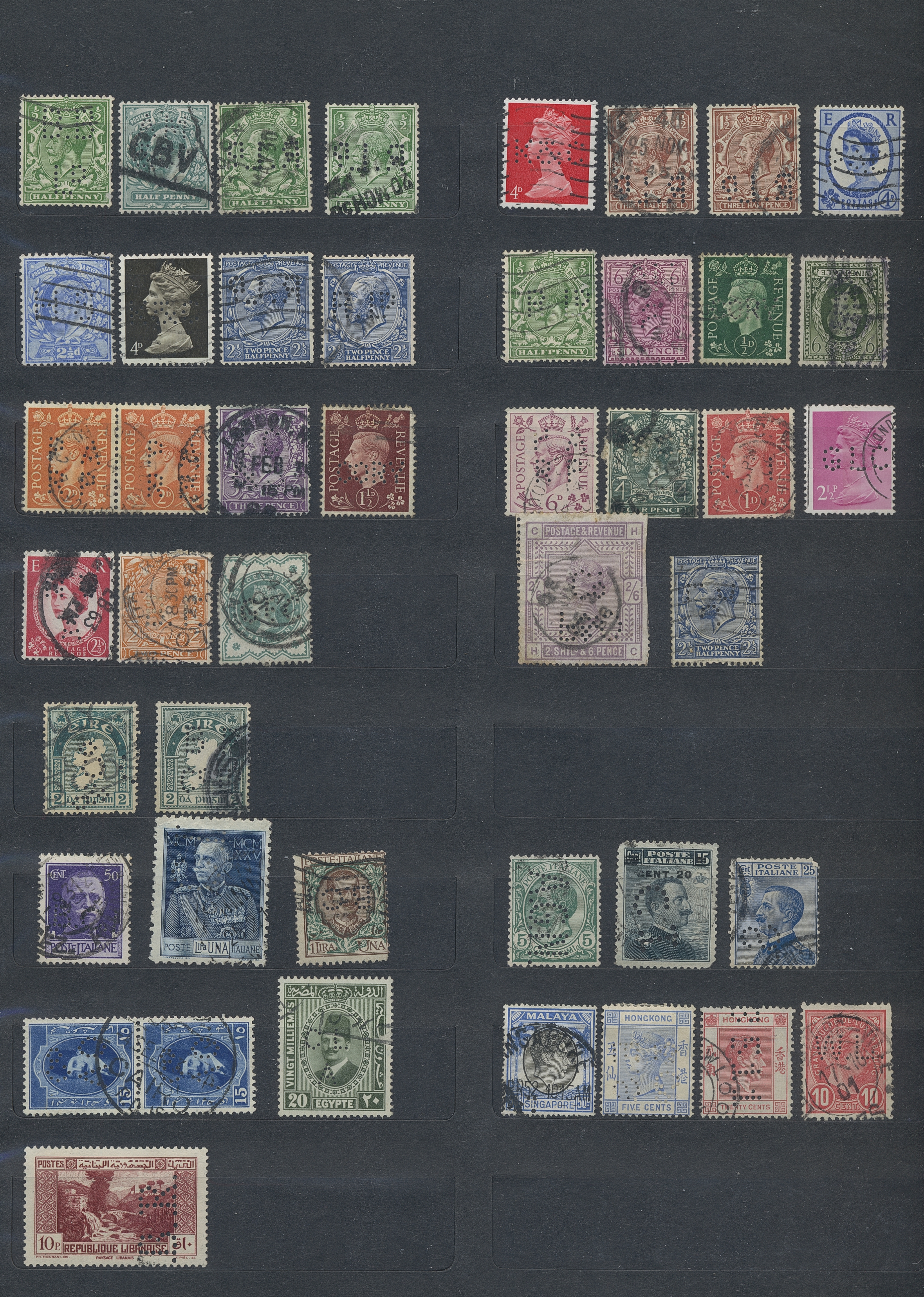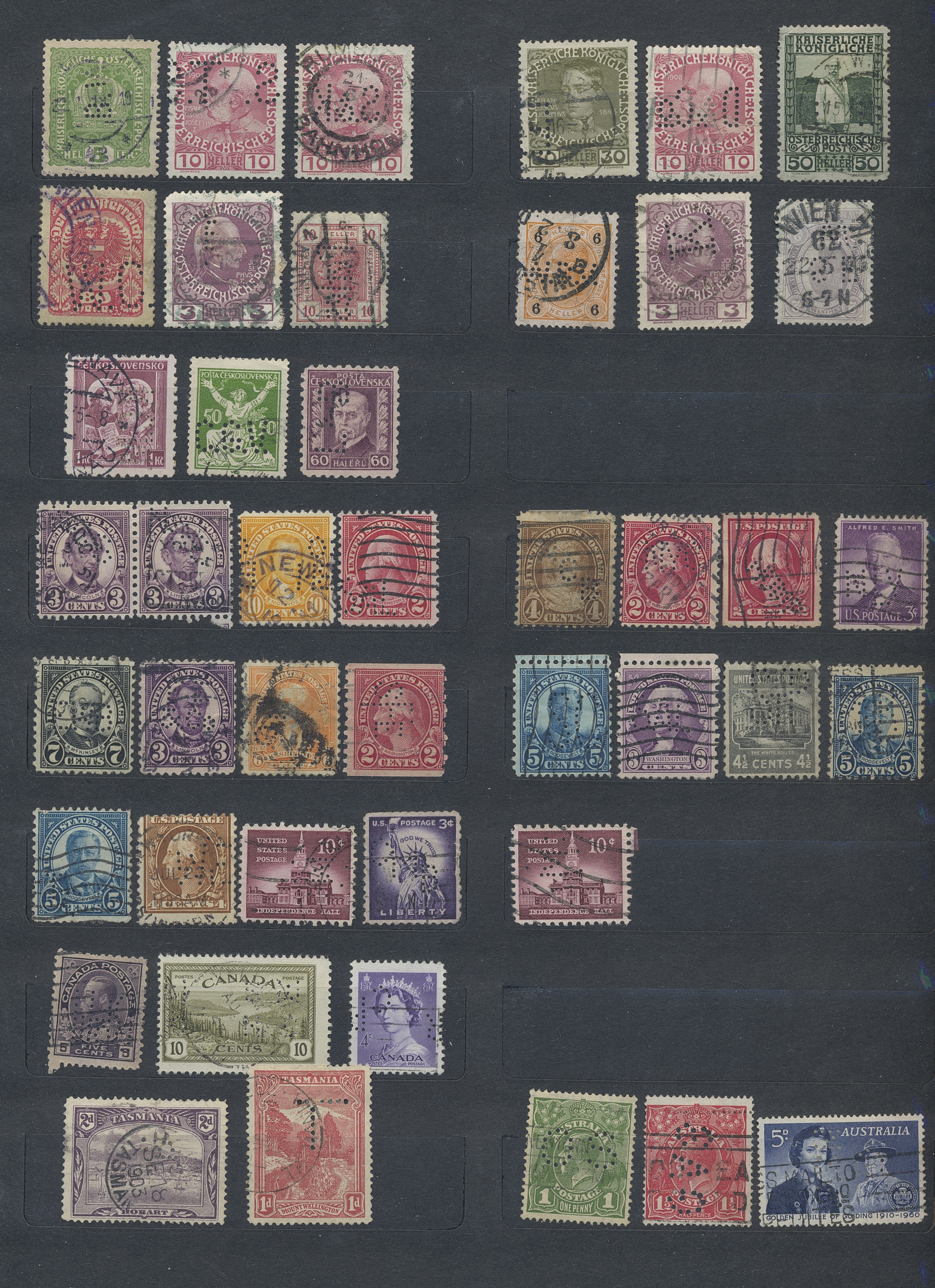 ALL WORLD. Perfins, accumulation. About twelve hundred, of which a large part Great Britain. The entire lot is presented at www.philea.se. (1200)