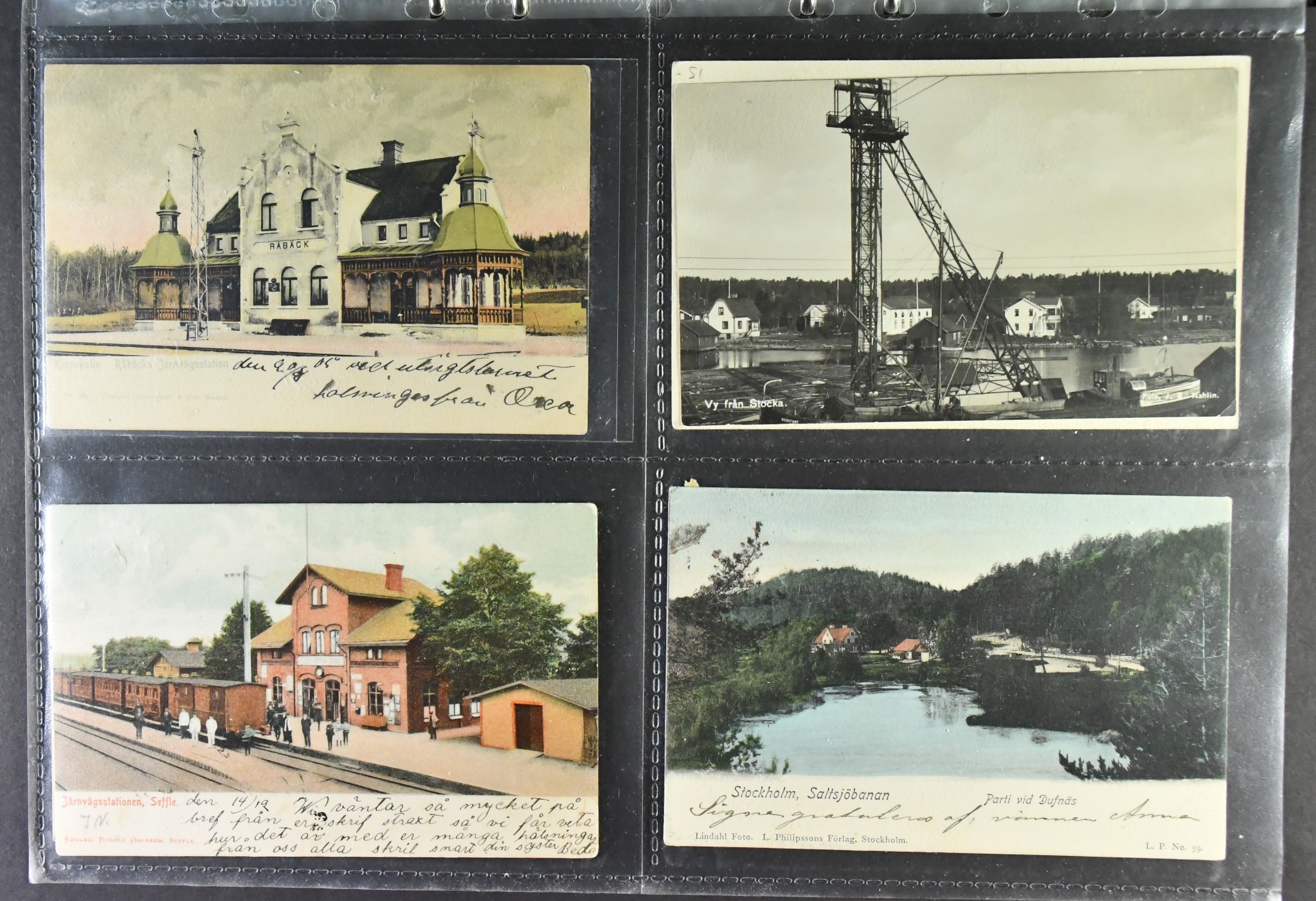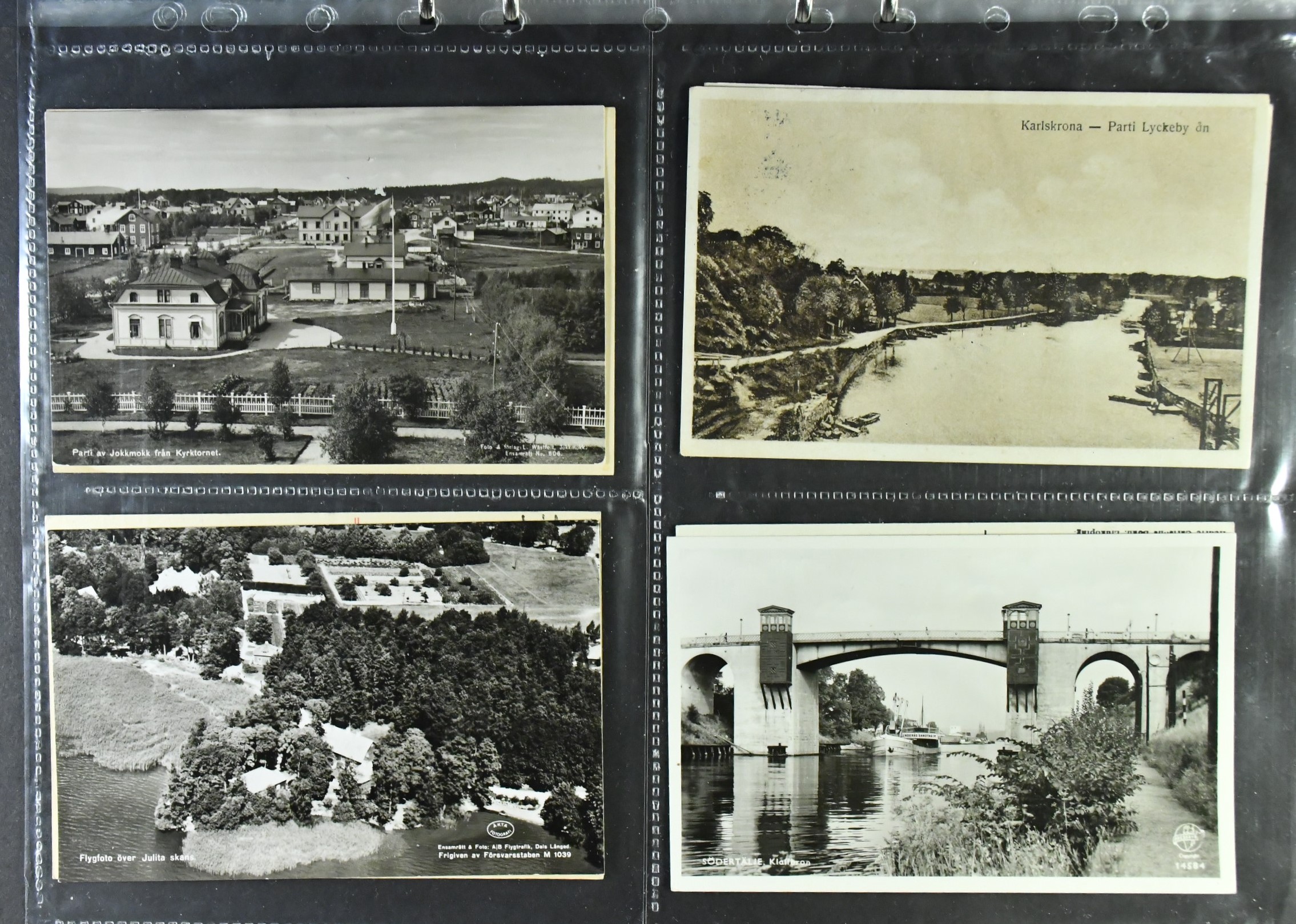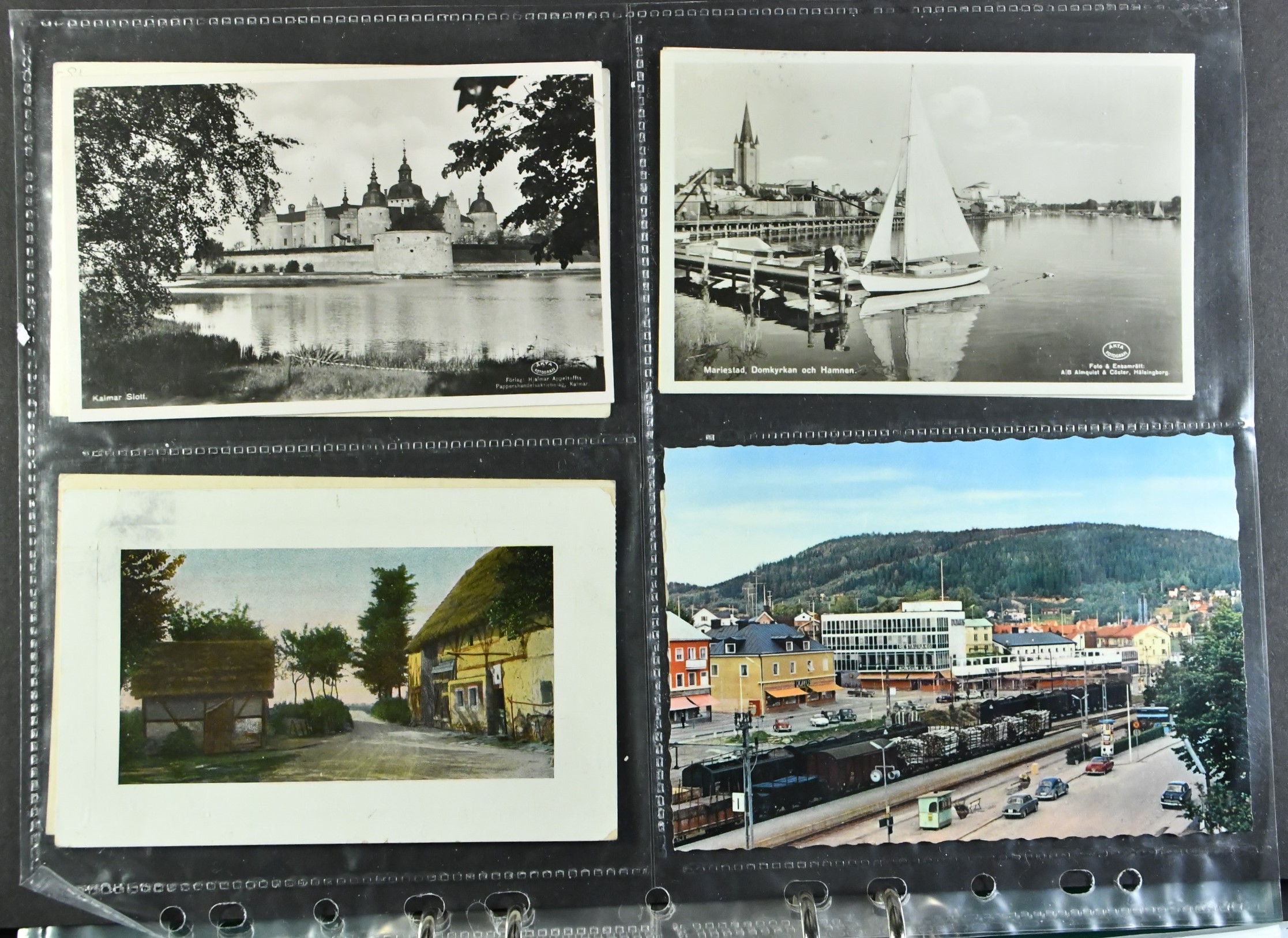 Sweden. Picture postcards, lot 1900–1950s on plastic sleeves in binder. Old size, b/w and multicolored. Topographical with a few exceptions. A selection of scans are presented at www.philea.se. (200)