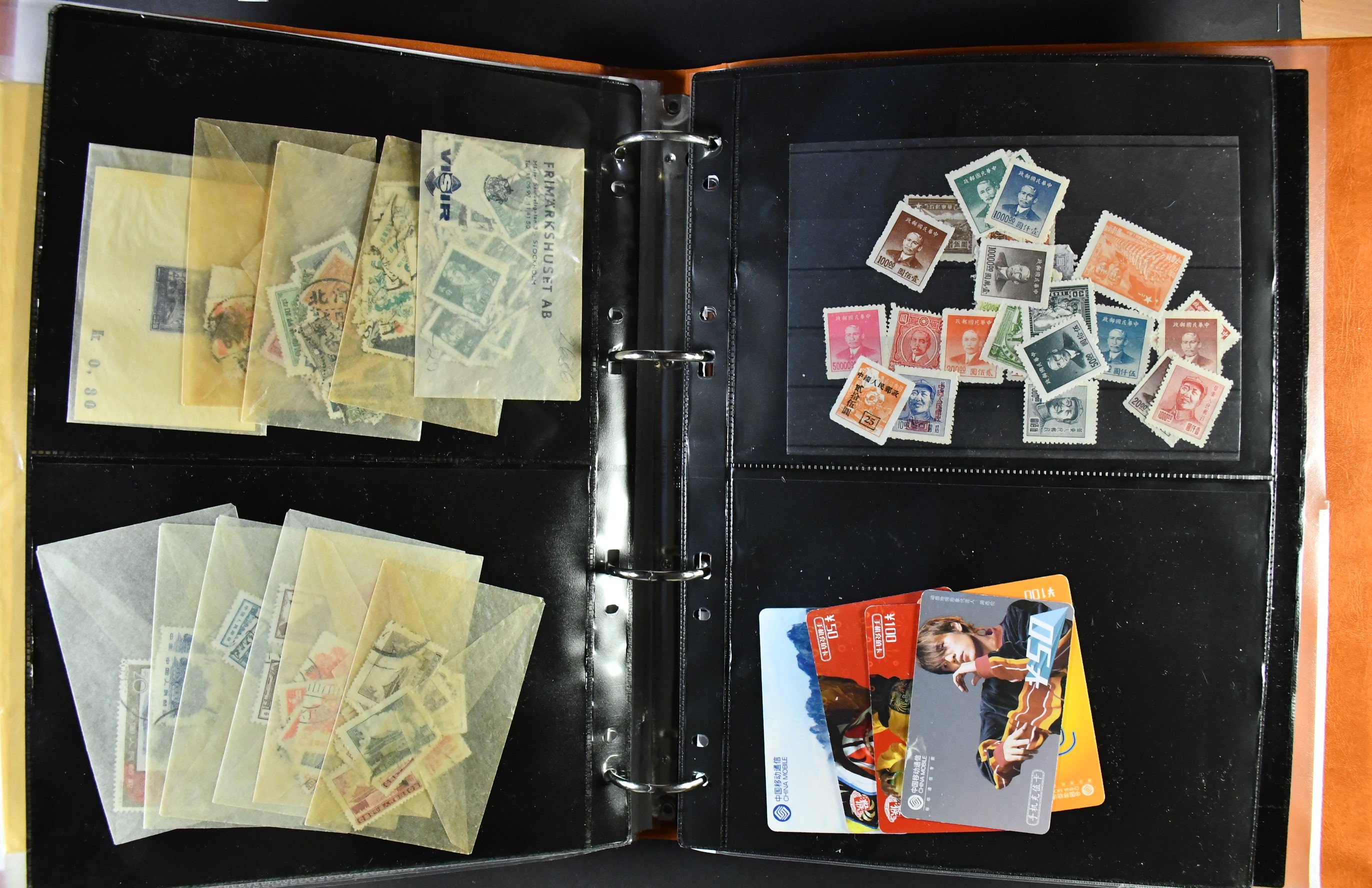 China, mixed. Accumulation ★★/★/⊙. Mixture of stamps hinged on pages, in glassine envelopes, in presentation packs and on covers. All housed in a binder. Scans are presented at www.philea.se.