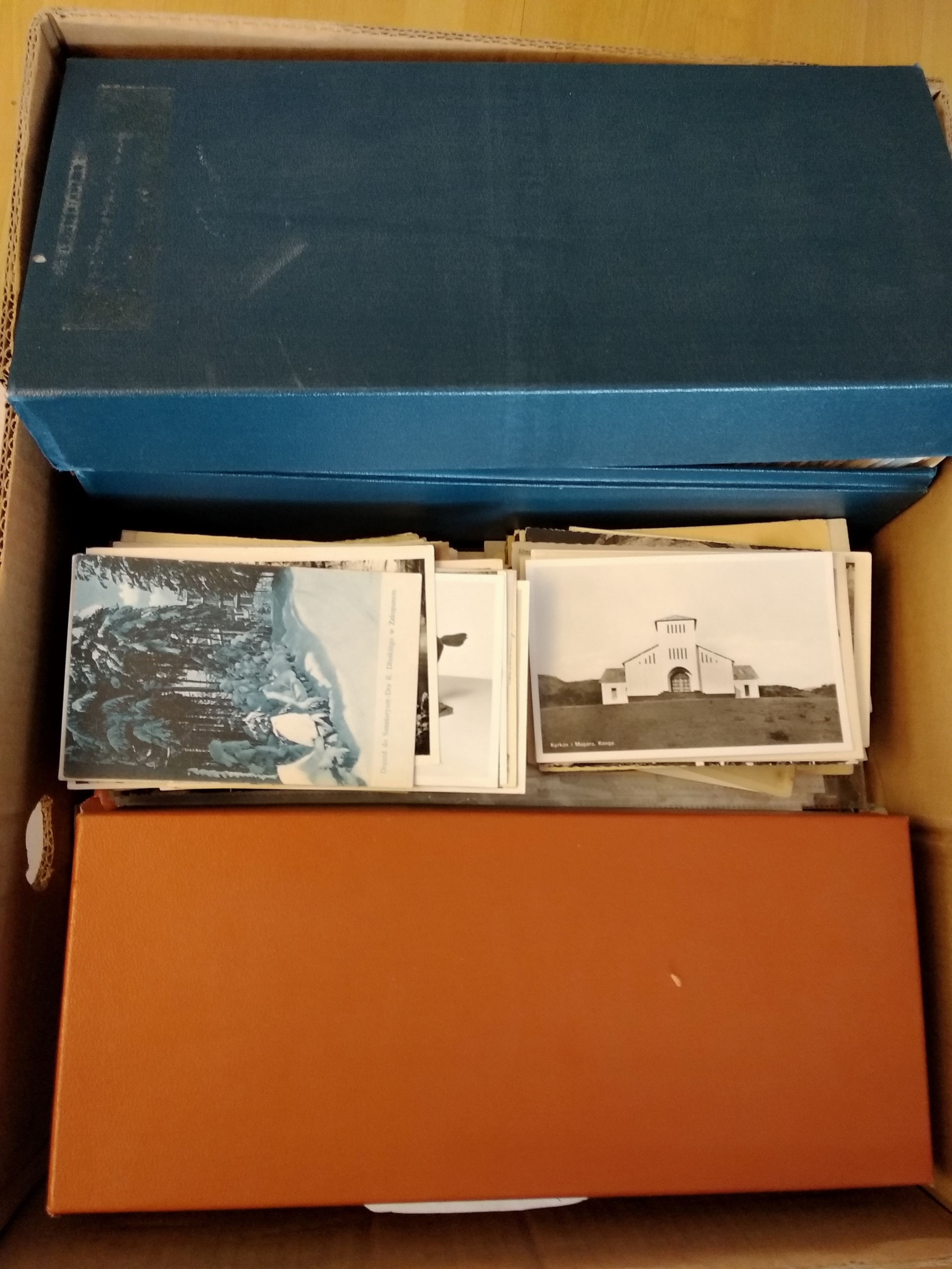 Sweden. Picture postcards. Sweden and foreign, topo, greetings and thematics, almost all modern in A6 format, plus one box with photos in small folders. In banana box. Approx. 21 kg.