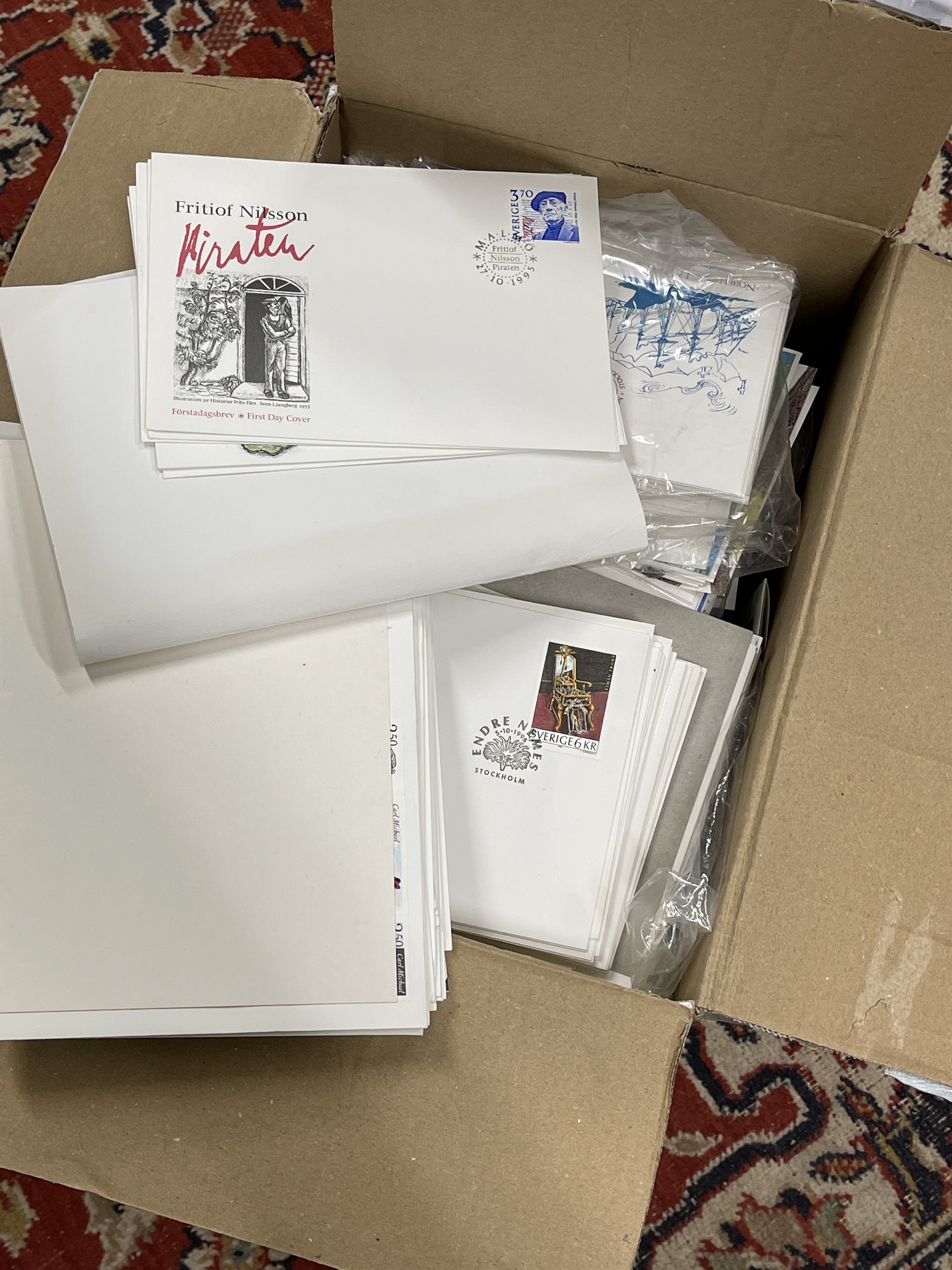 Sweden. FDCs, lot 1970–2001 in box. 1980–1999 seemingly complete, good condition.