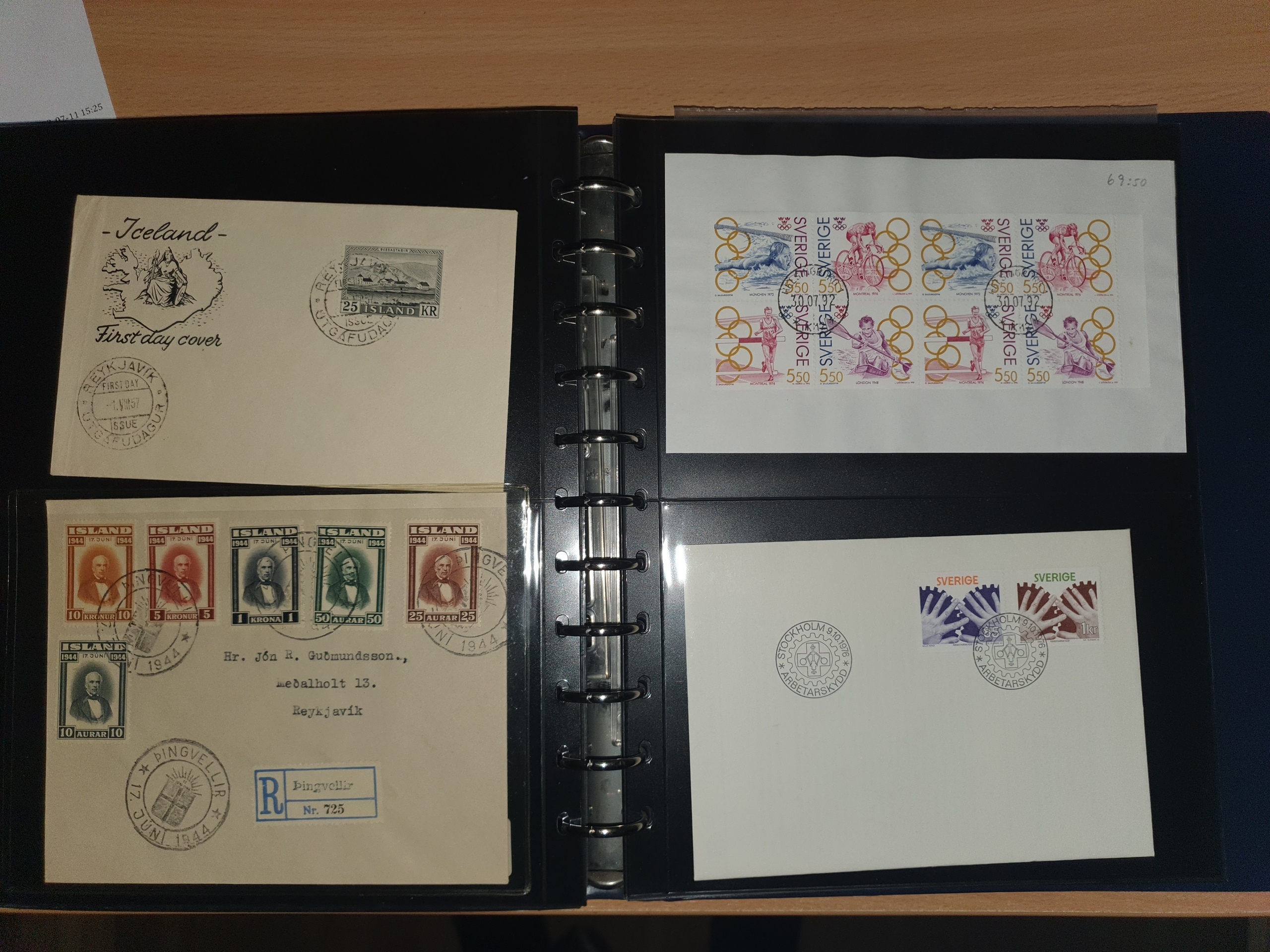 ALL WORLD. Covers, covers. Binder with about 65 mostly covers incl. good Commonwealth and Iceland, BRD Mi139-40 on front, nice air mail incl. one Macau etc.