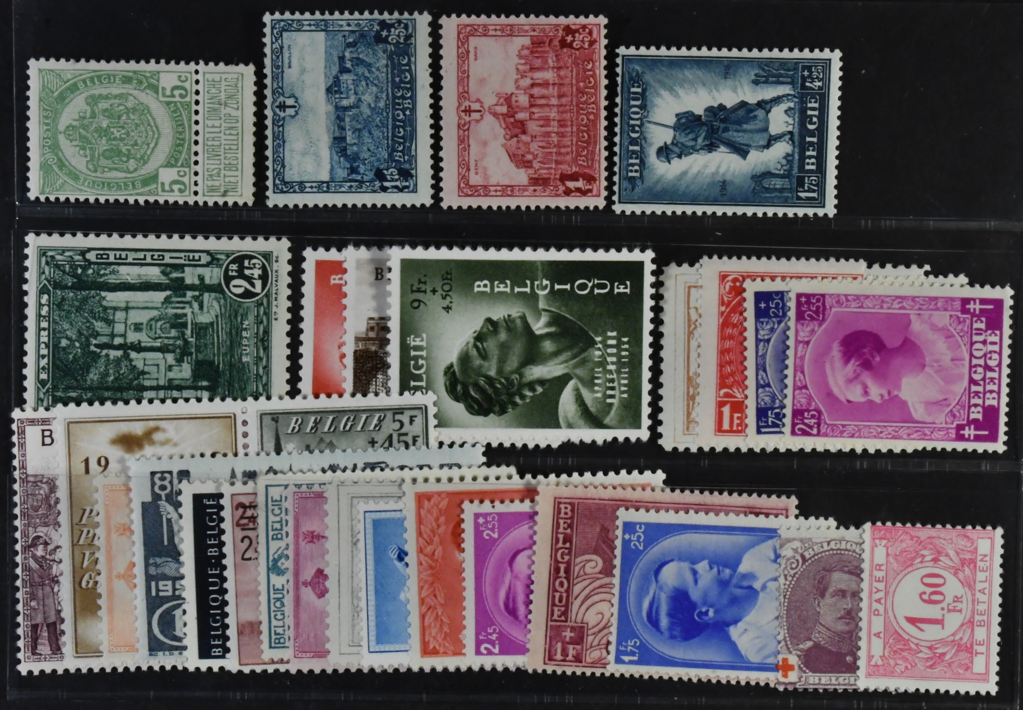 Belgium. ★★ 1907–1957. All different, e.g. Mi 80, 295-96, 304, 343, 992-94, souv.sheet 9A, 13-16, 25. Good quality. Mi € 919 (34)