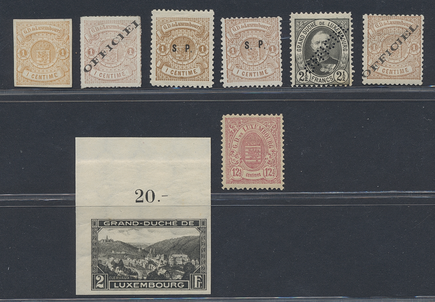 Luxembourg. ★ 1859–1935. All different, e.g. Mi 3 (*), Officials 1 III, 22 I, 27 II (*). Mostly good quality. Mi € 535 (8)