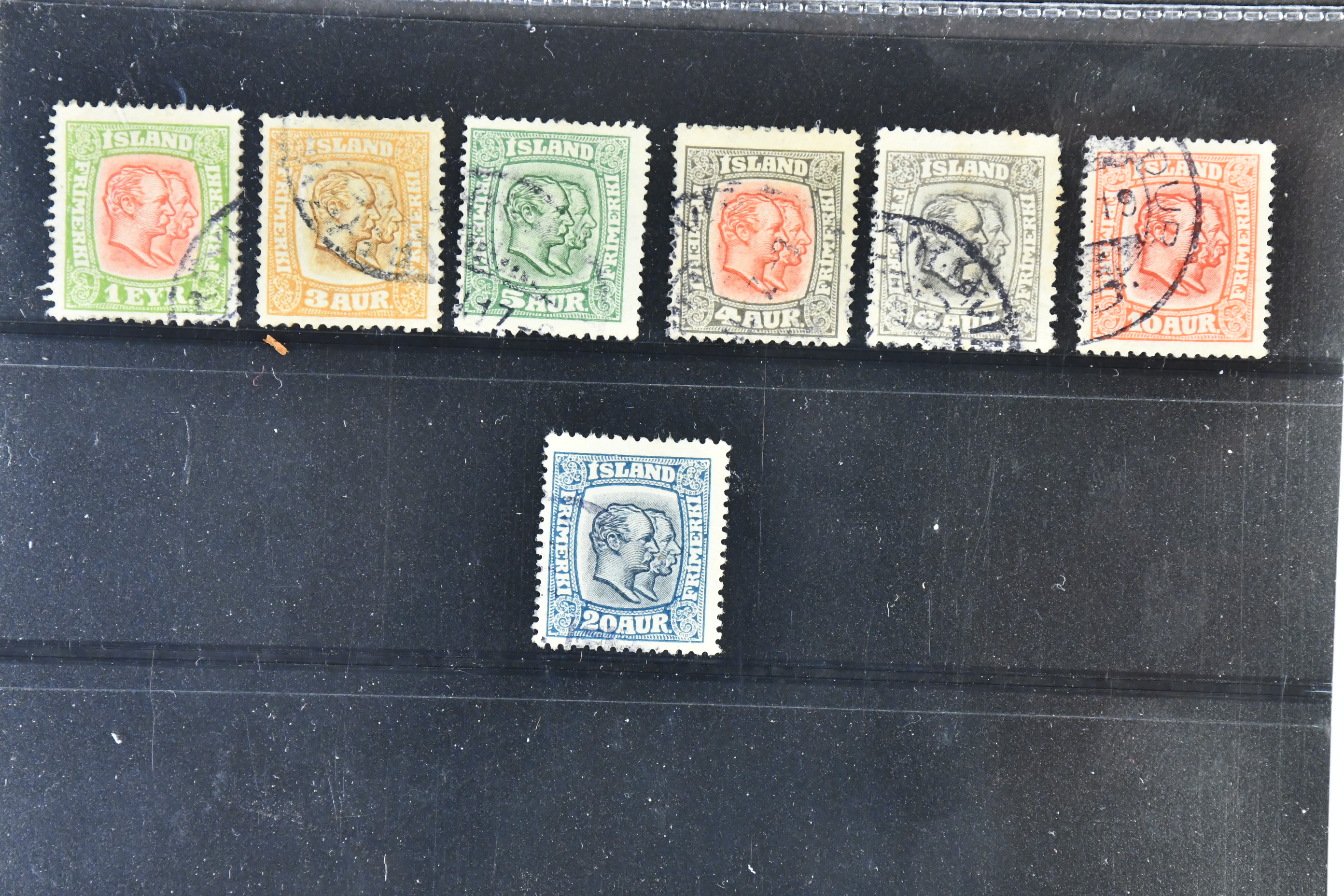 Iceland. Facit 91–97 used, 1914 Two Kings SET watermark cross (7). SEK 1500