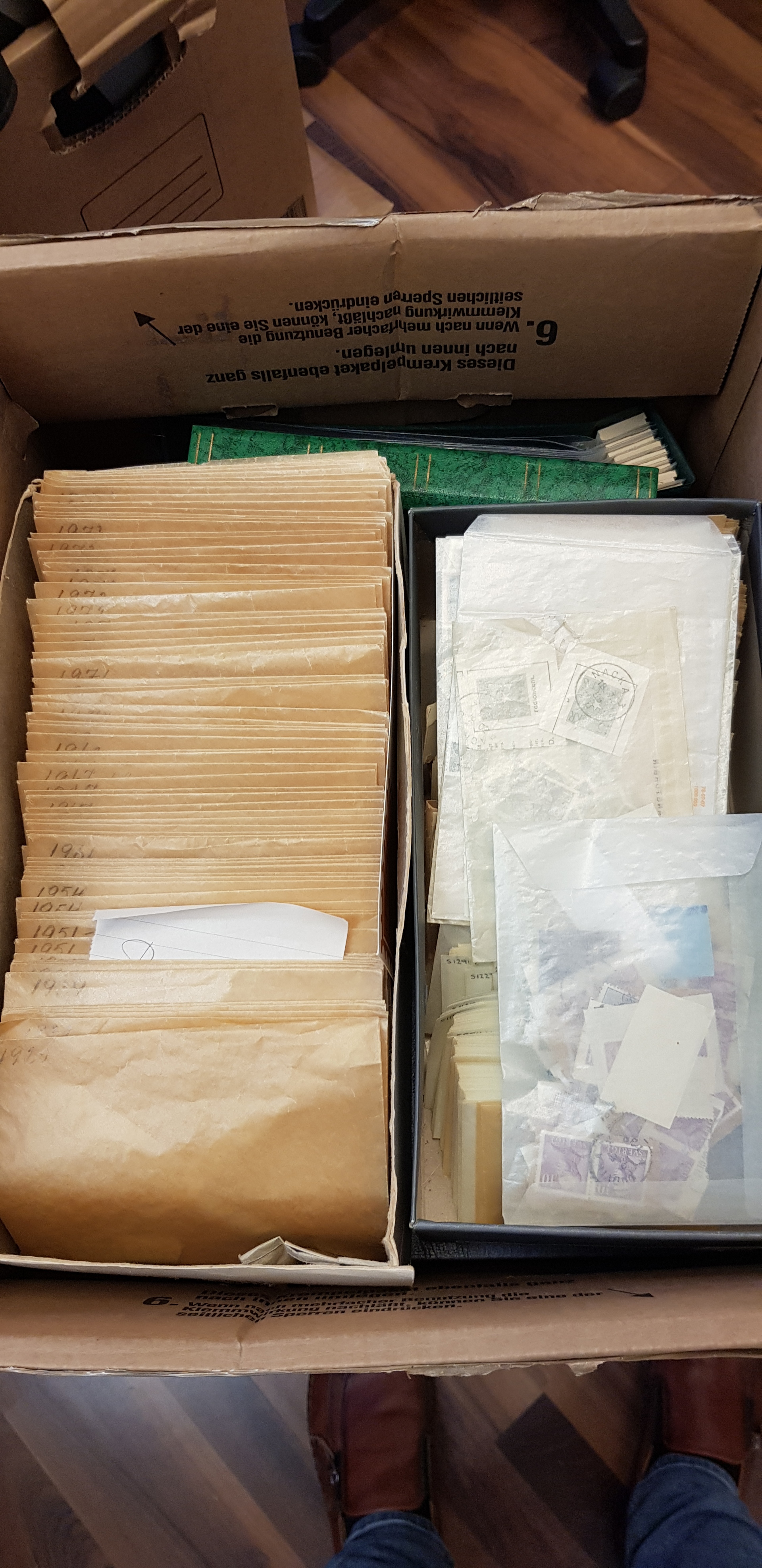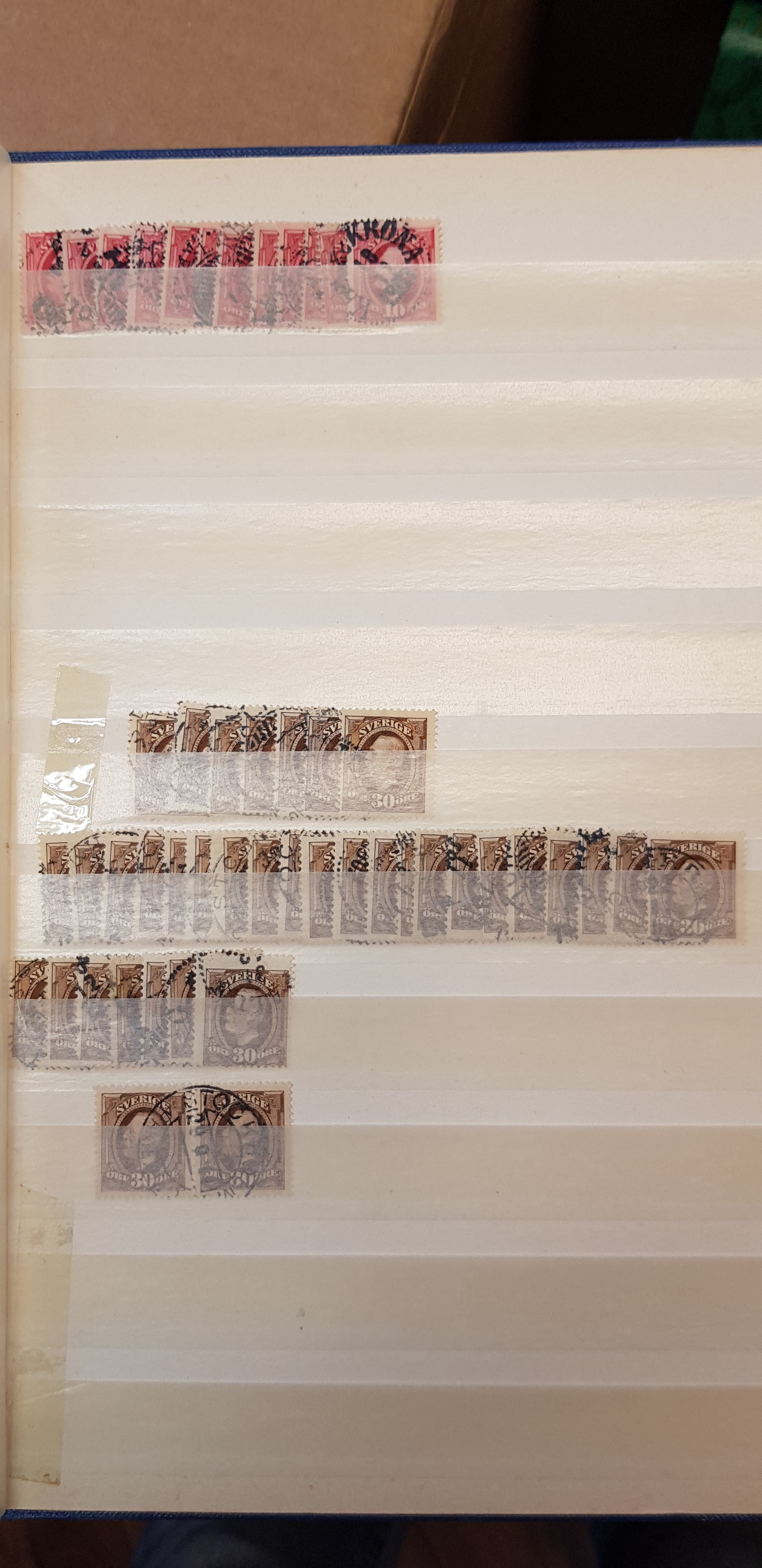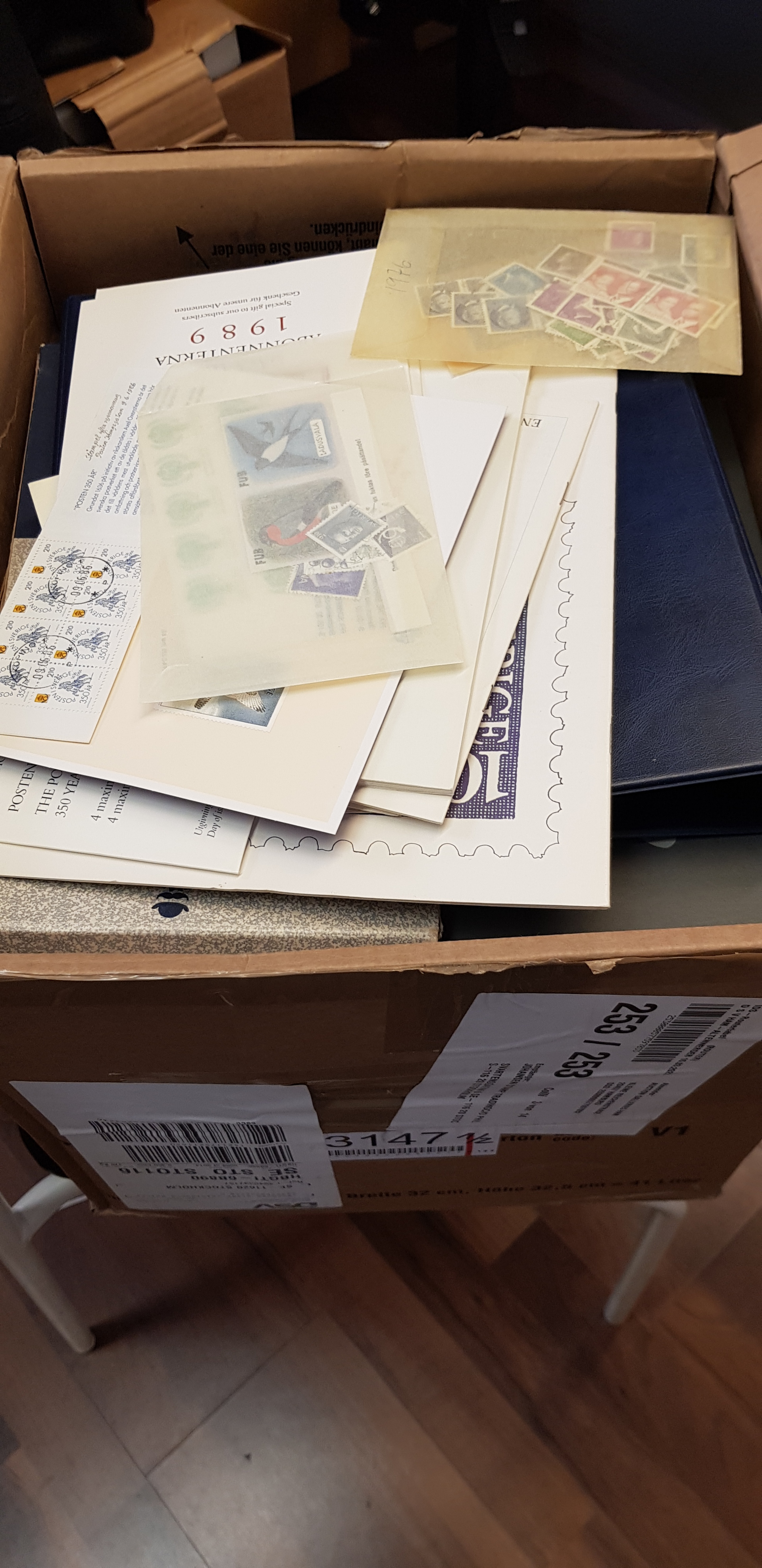 Sweden. Collection/accumulation used 1950s–2000s in box. Swedish unused stamps in eight stockbooks and two Facit albums containing the years of 1962-80 and 1984-88. Also included shoe boxes with duplicates. Please see a selection of scans at www.philea.se. Mostly fine quality. Approx. 11 kg. (>5000)