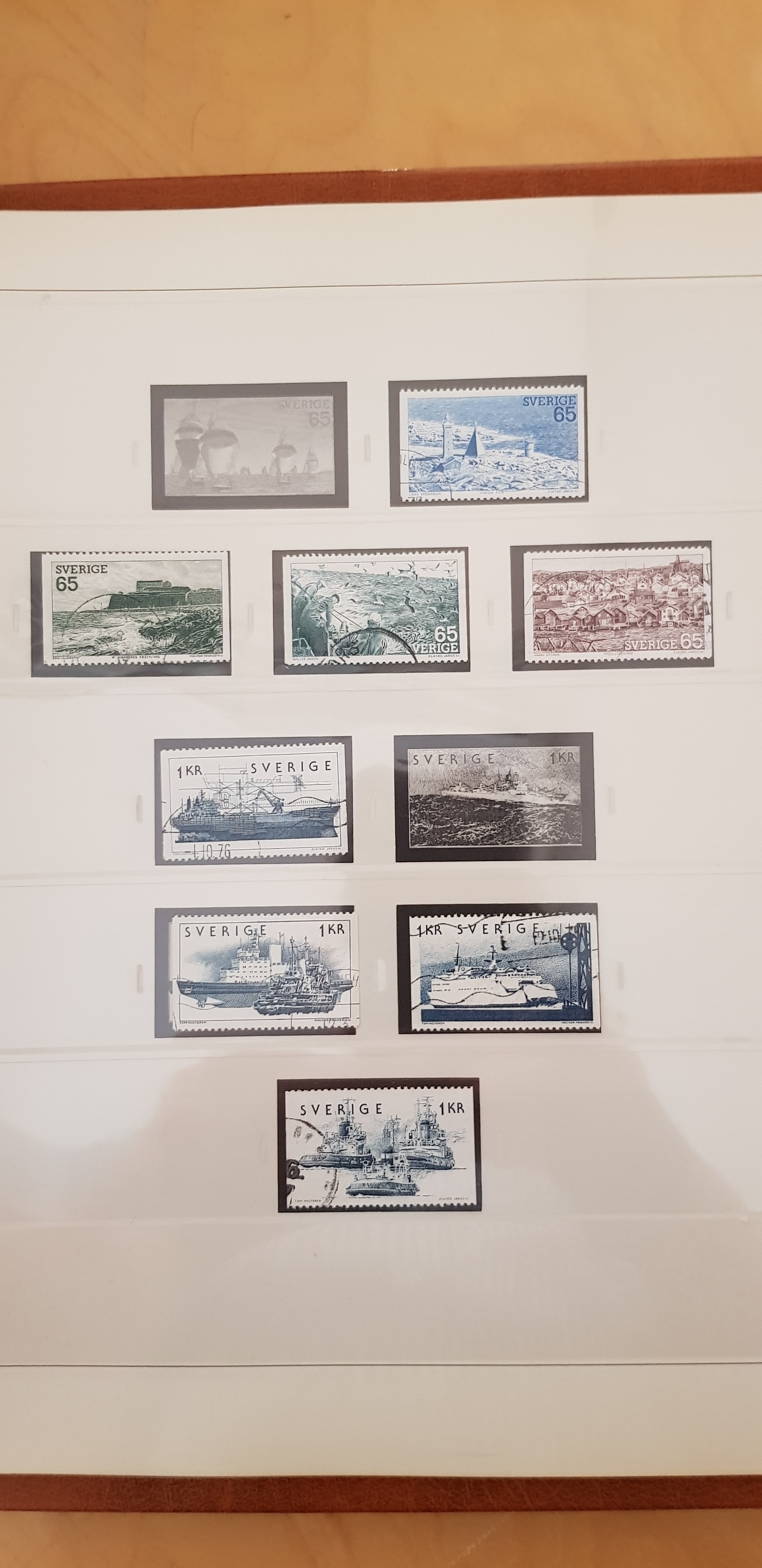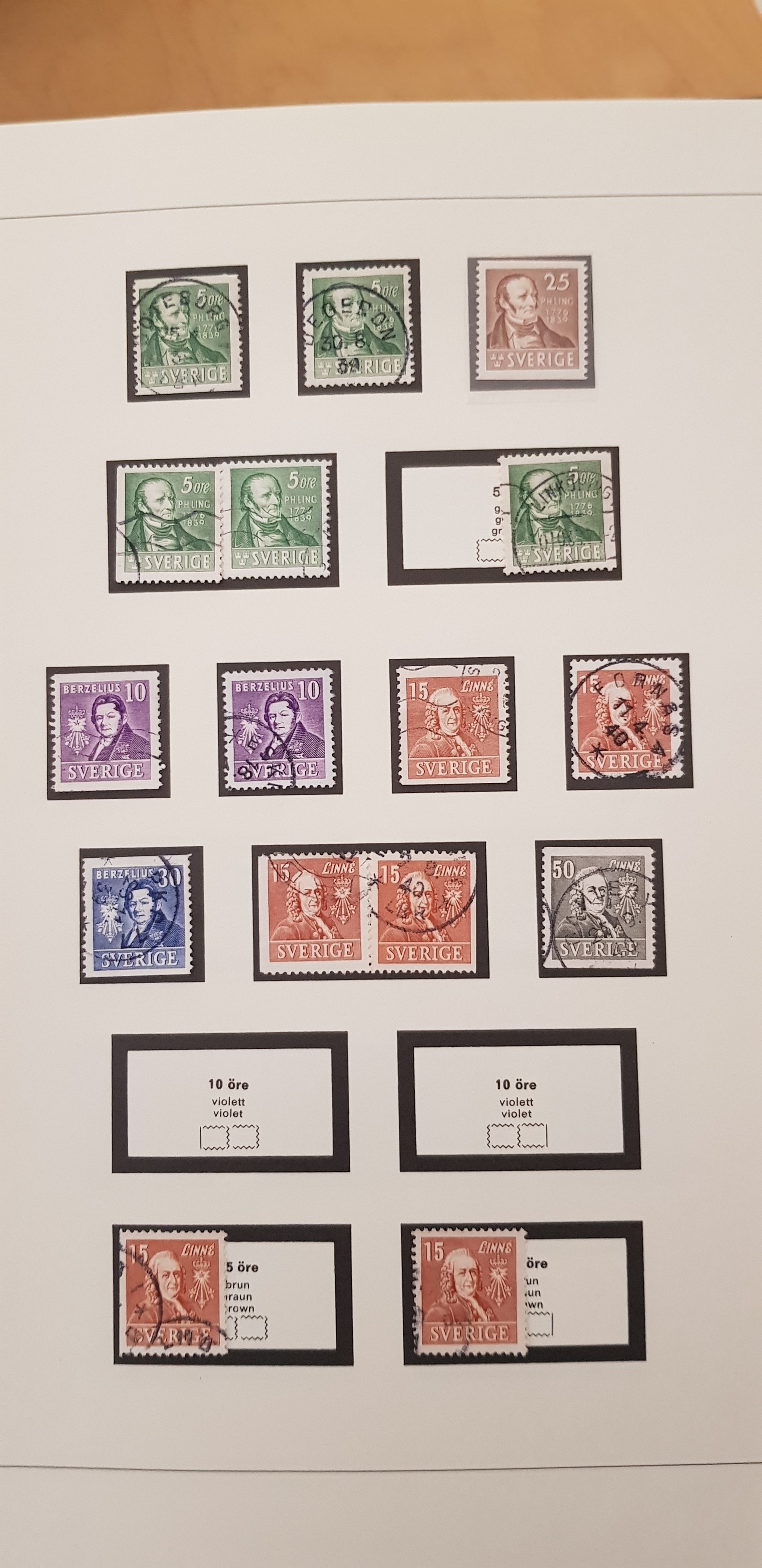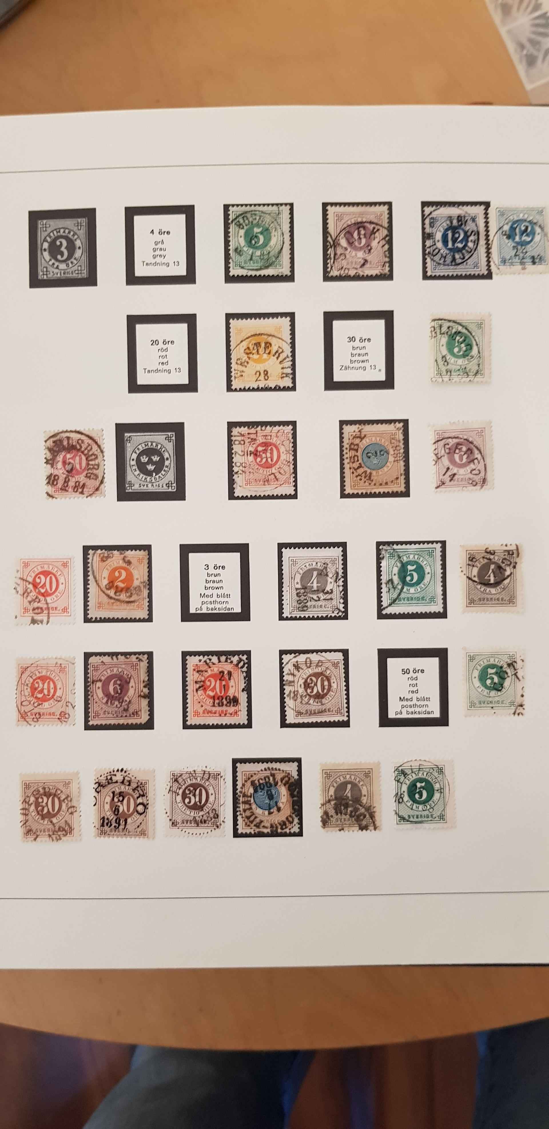 Sweden. Collection mostly used 1855–1974 in box. Five albums – one Gripen 1855-1963, one Davo album 1855-1969, one Safe album 1855-1969, a Facit album 1855-1974 and finally a Safe dual album 1962-1974. With both used and unused stamps. Low reserve. Mostly fine quality. Approx. 10 kg.