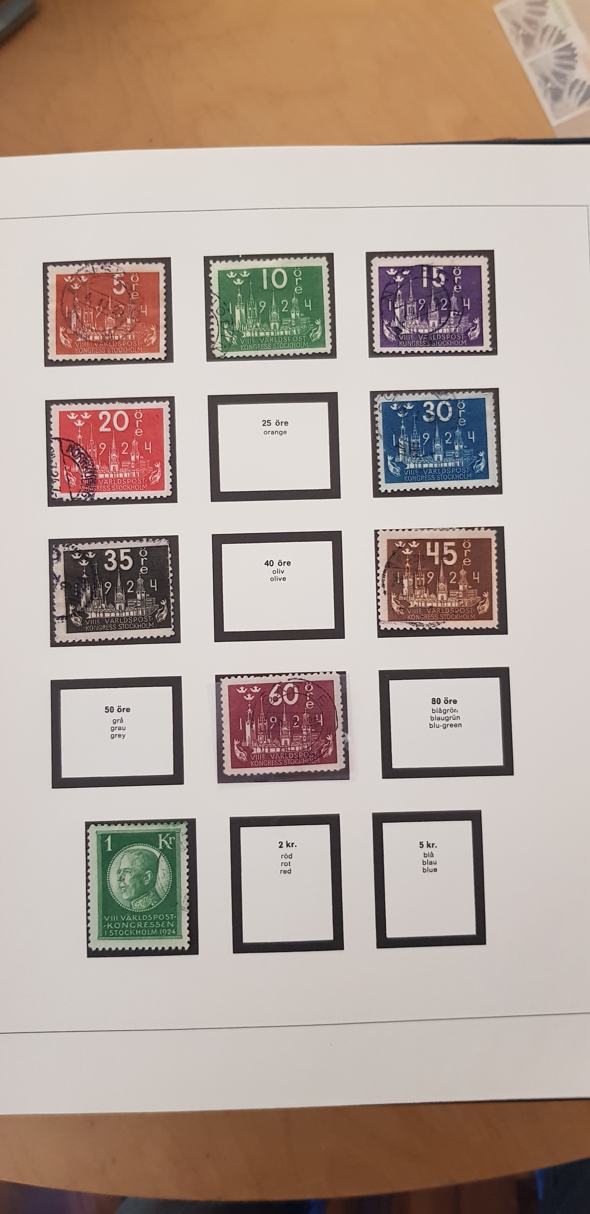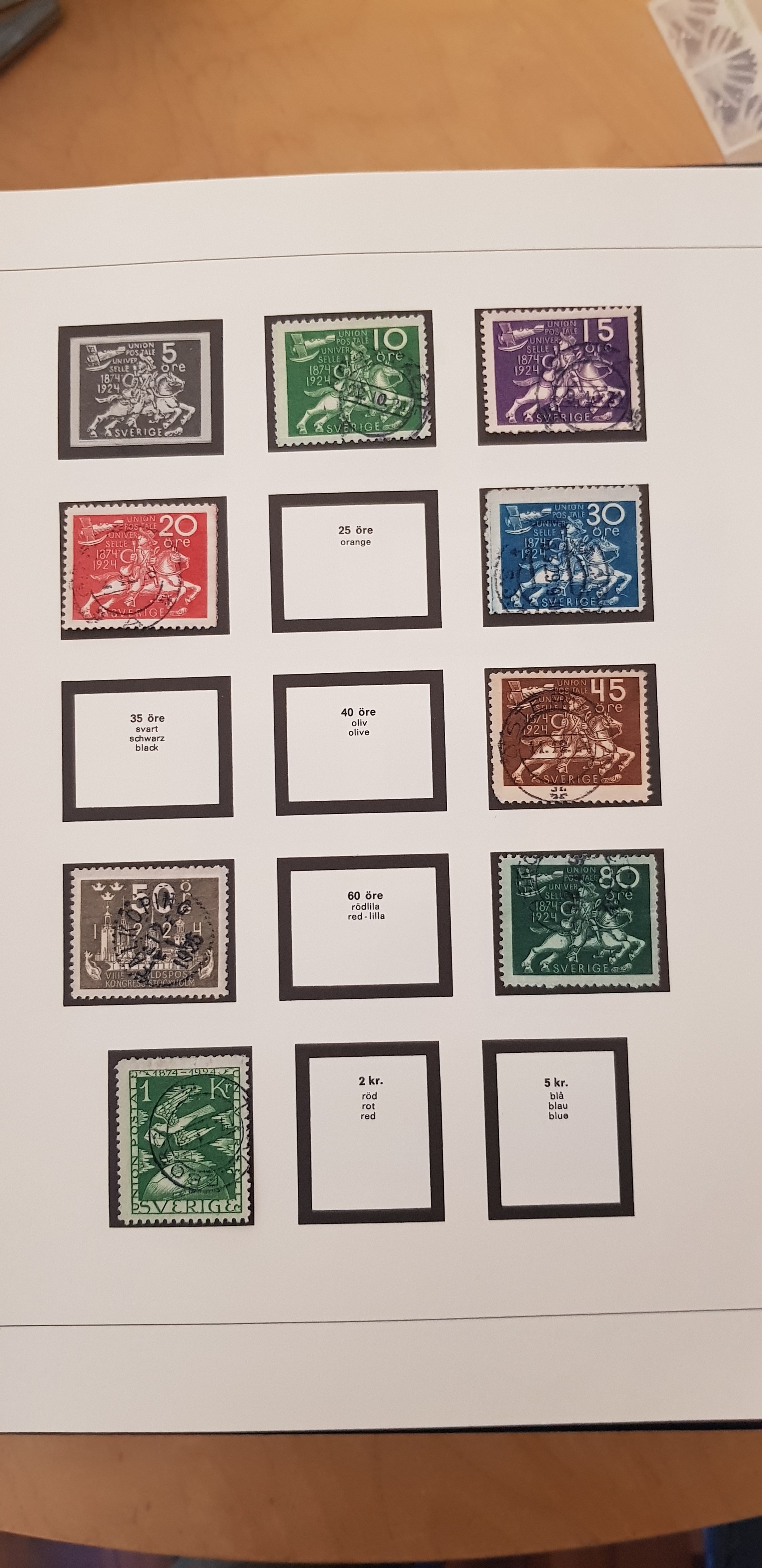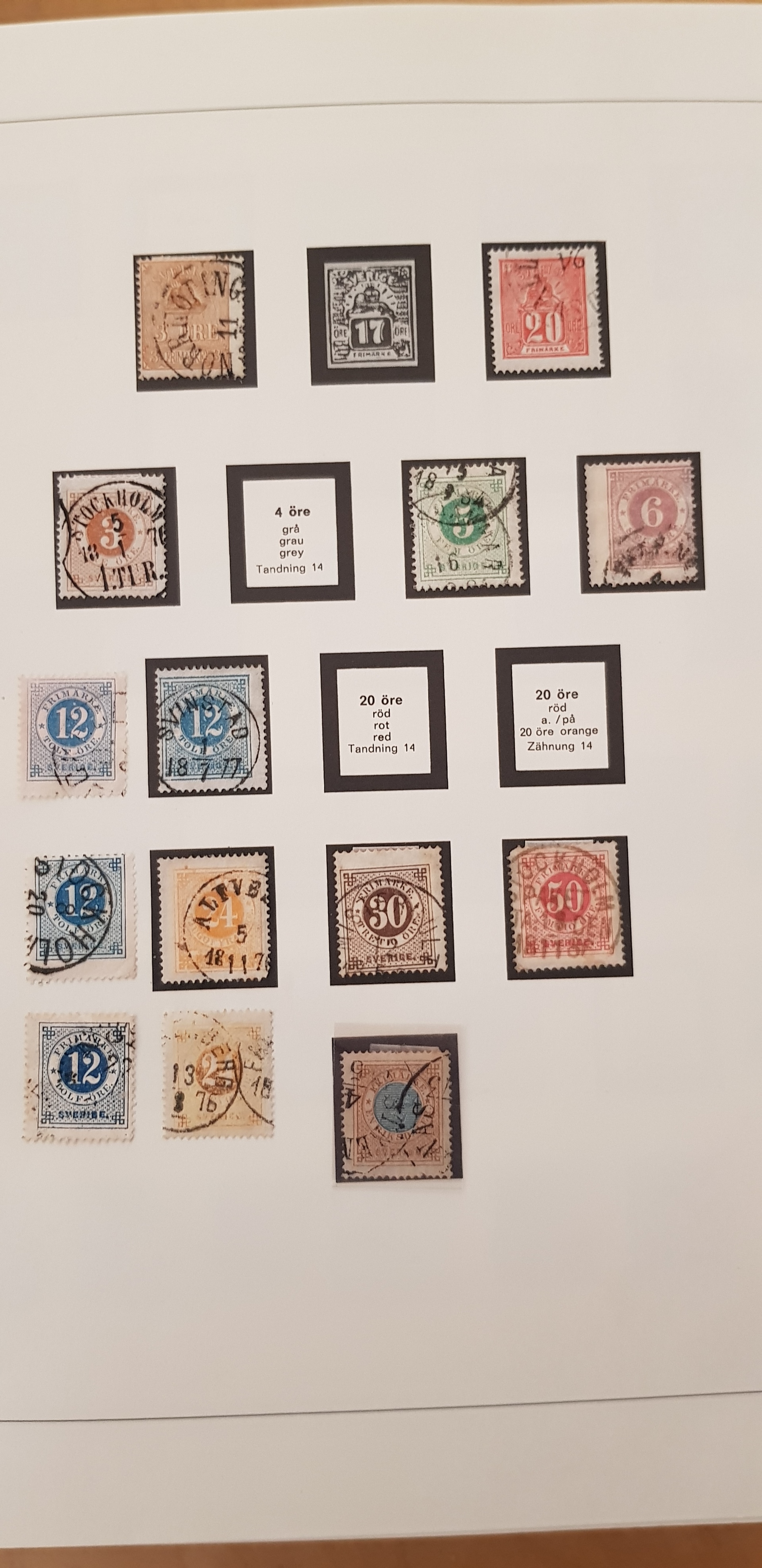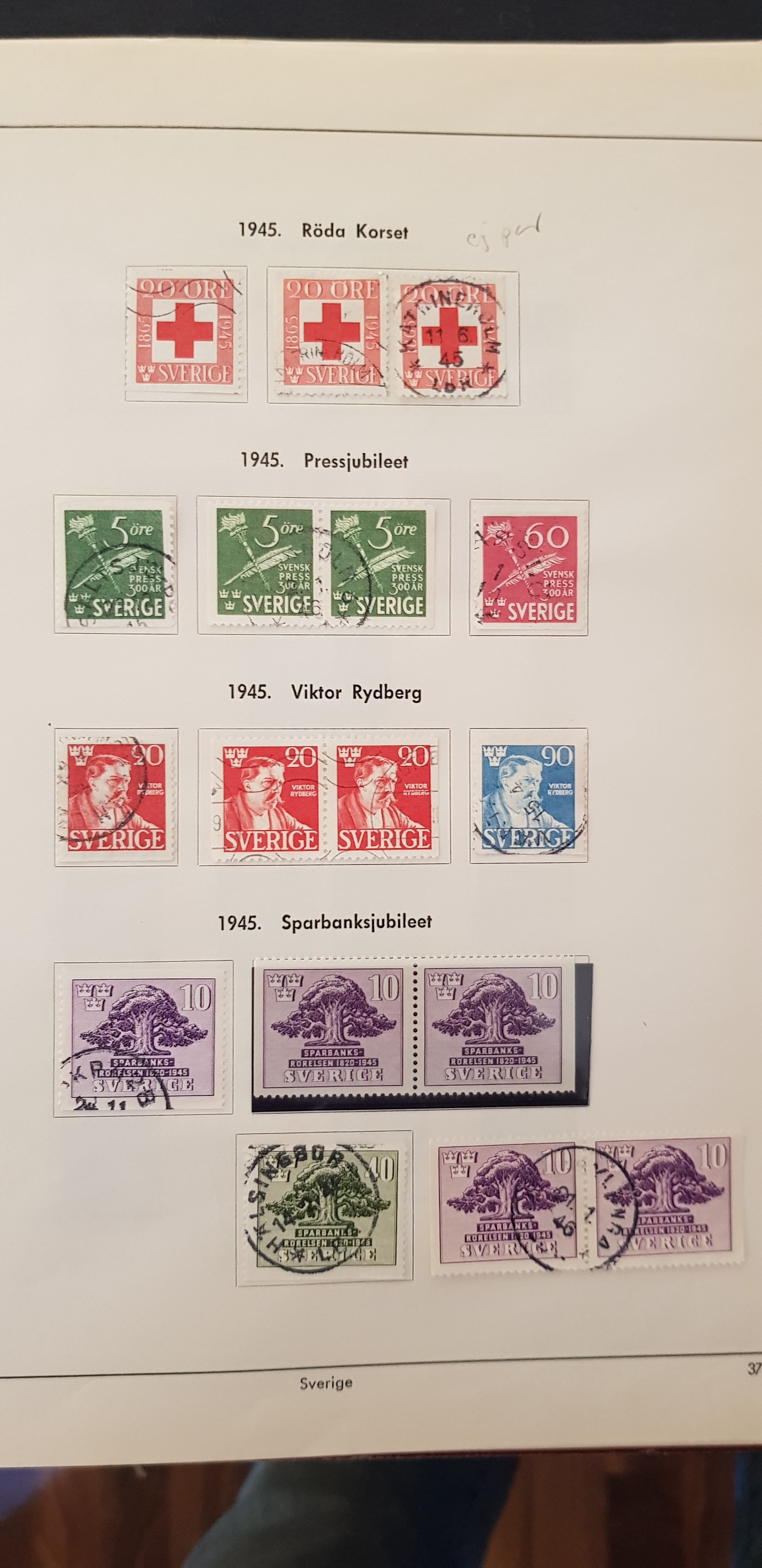 Sweden. Collection mostly used 1855–1974 in box. Five albums – one Gripen 1855-1963, one Davo album 1855-1969, one Safe album 1855-1969, a Facit album 1855-1974 and finally a Safe dual album 1962-1974. With both used and unused stamps. Low reserve. Mostly fine quality. Approx. 10 kg.