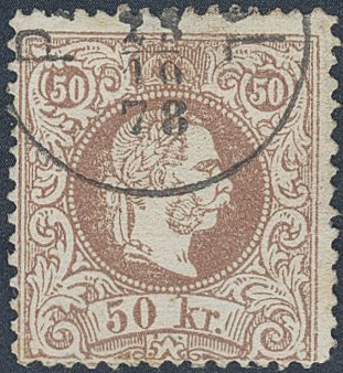 Austria. Michel 41 ID used, 50 Kr brown perf 12. EUR 150
