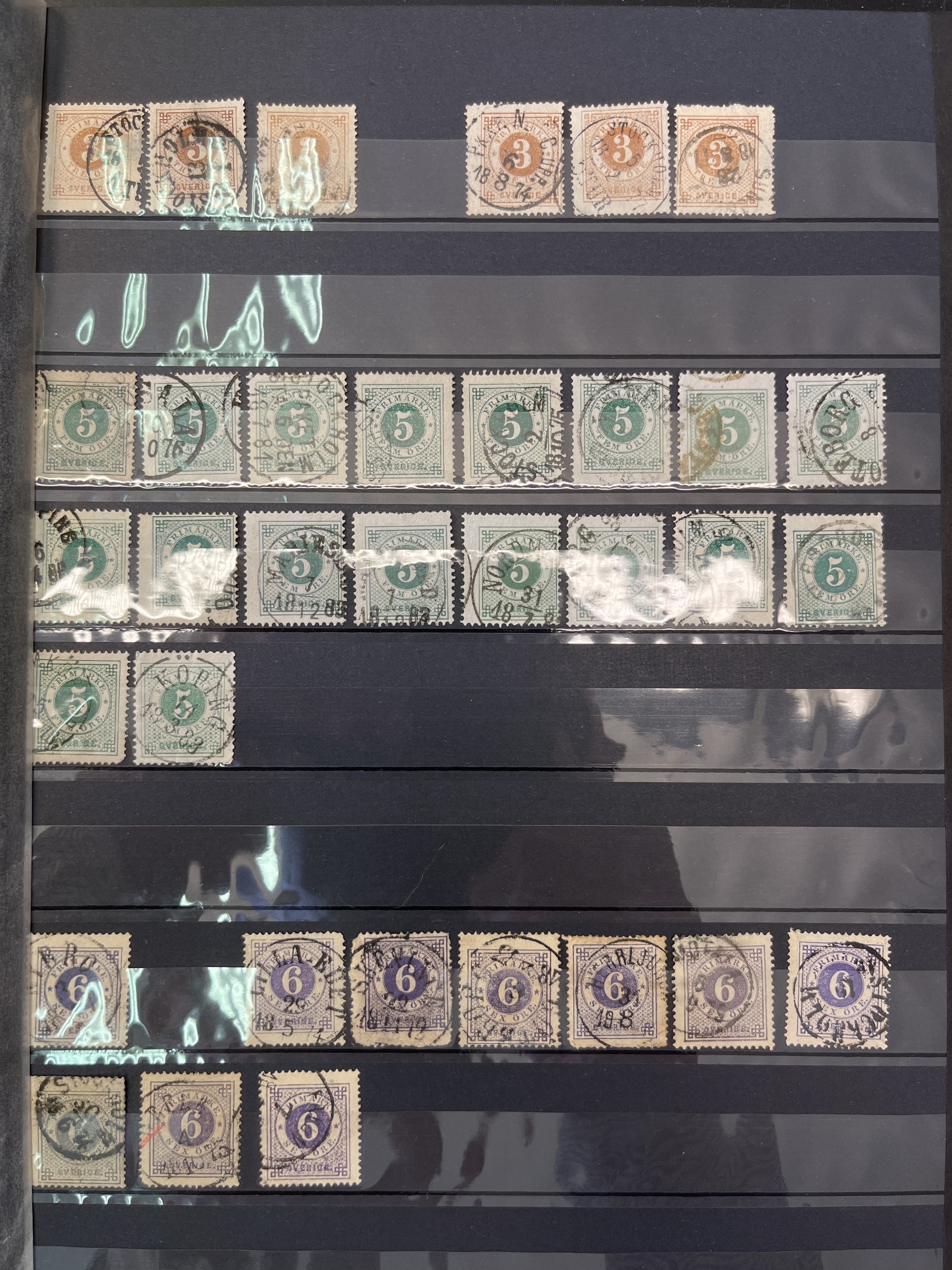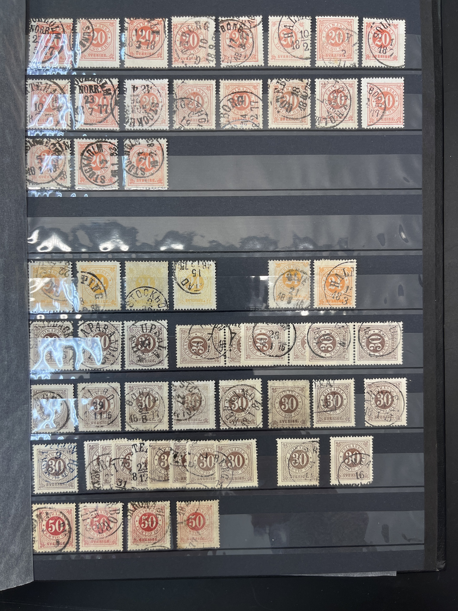 Sweden. Accumulation used in two stockbooks. Circle type, perf 14, ca. 430 stamps and ca. 1200 Oscar II (F54). Somewhat mixed quality.