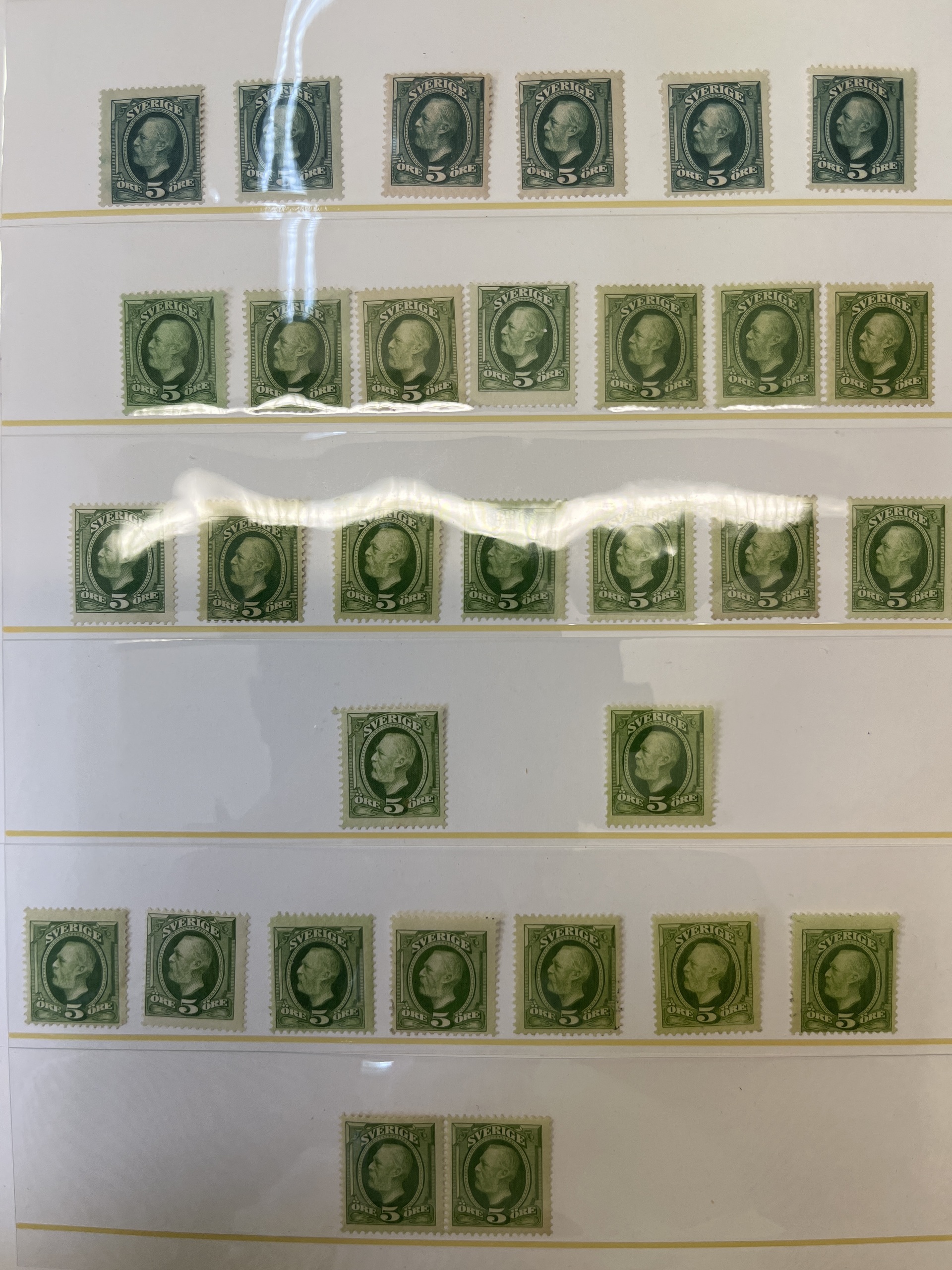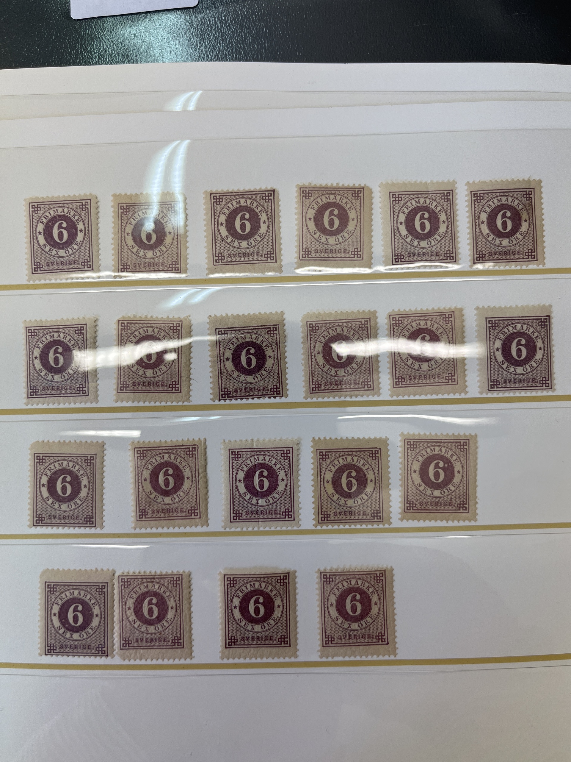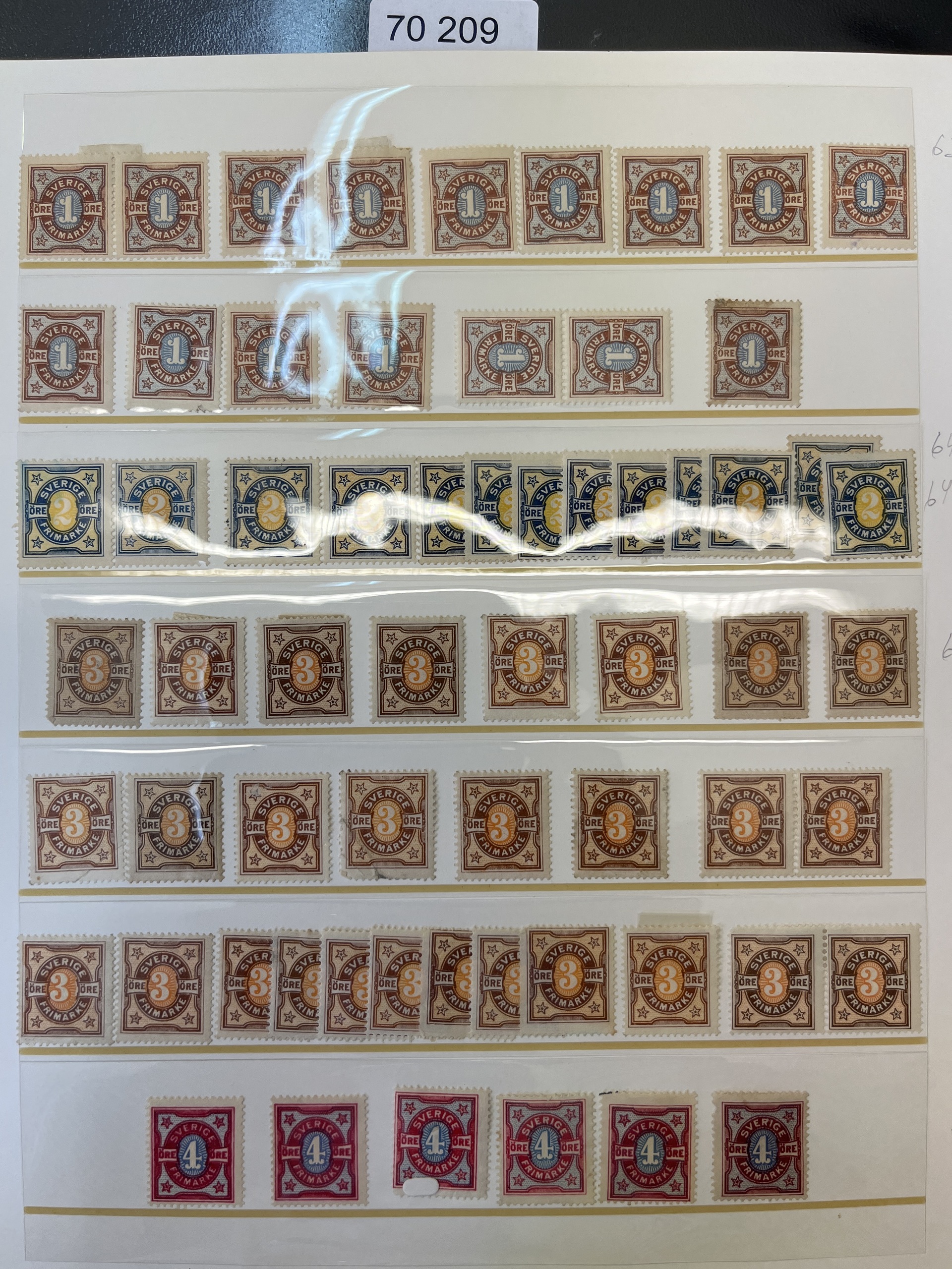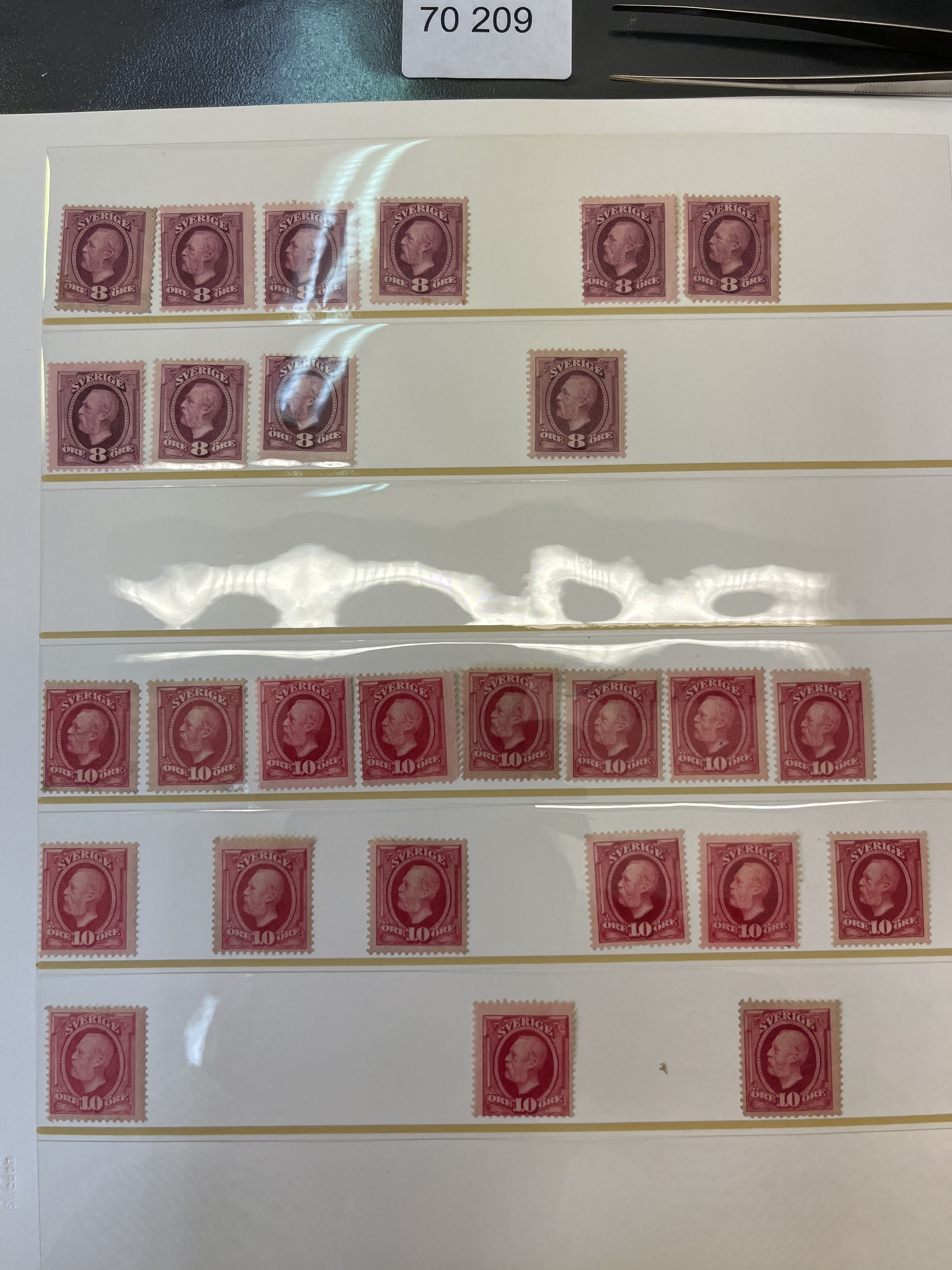 Sweden. Accumulation ★★/★ 1872–92 on twelve visir leaves. Very mixed quality and many without gum.