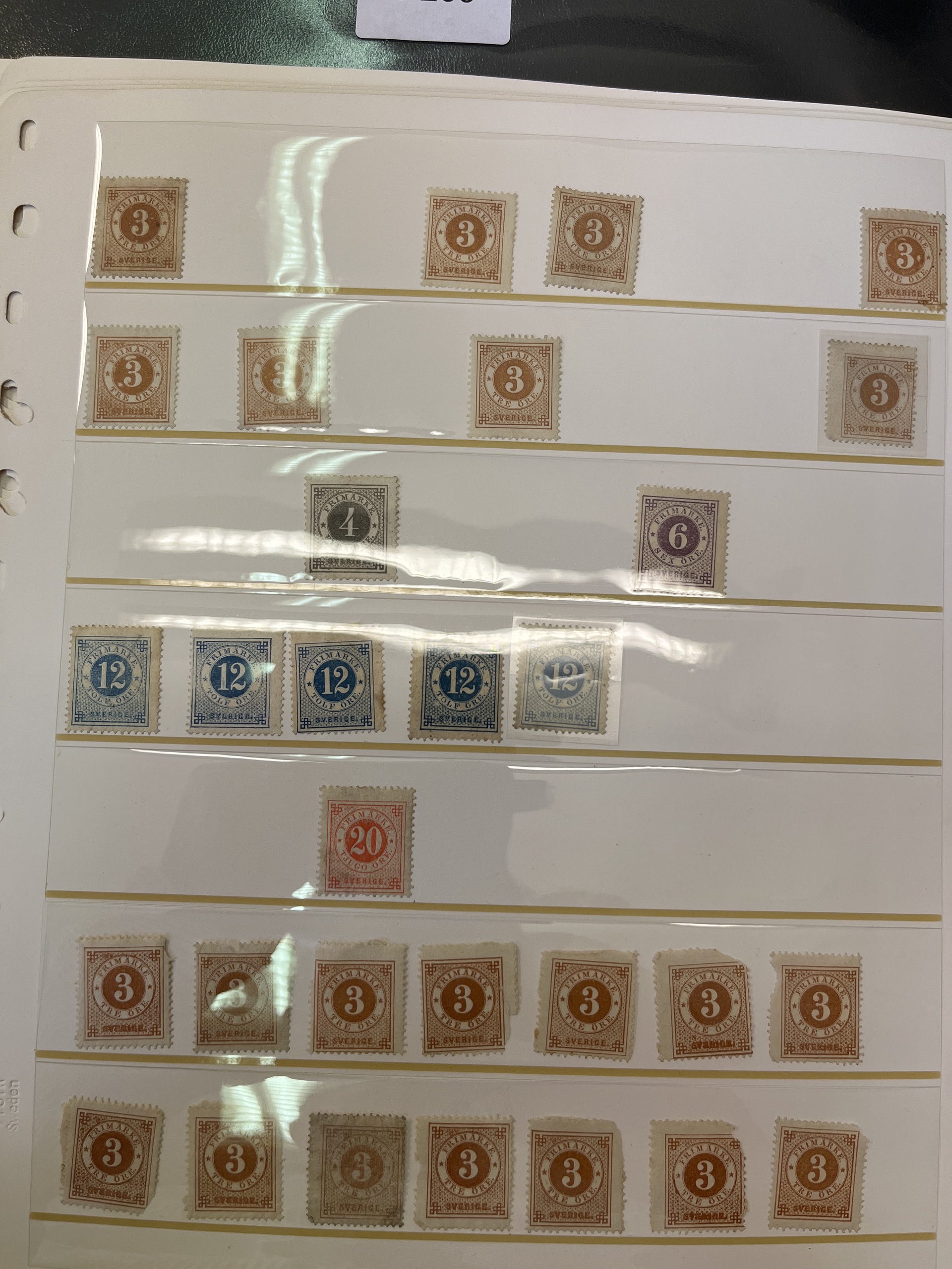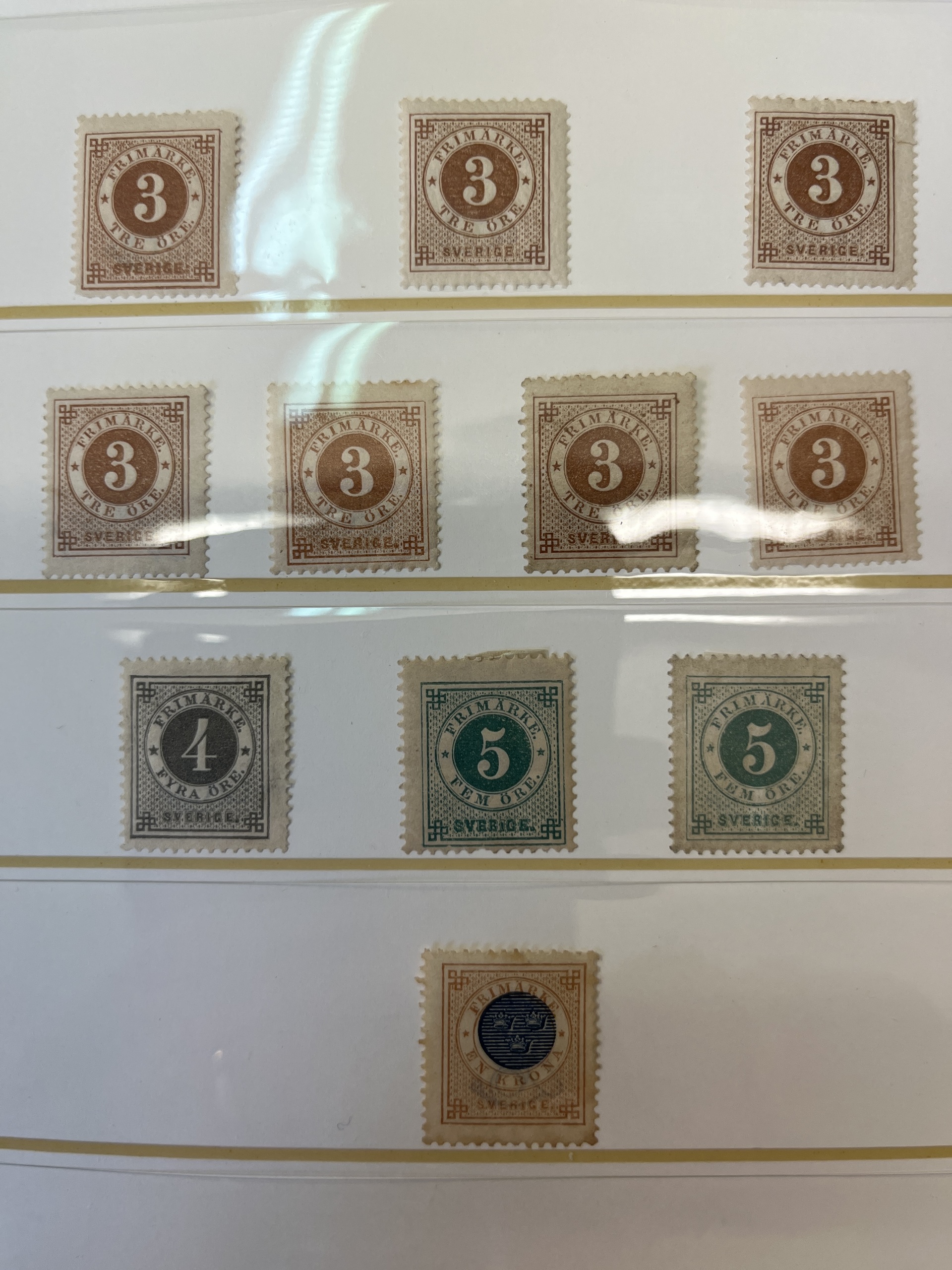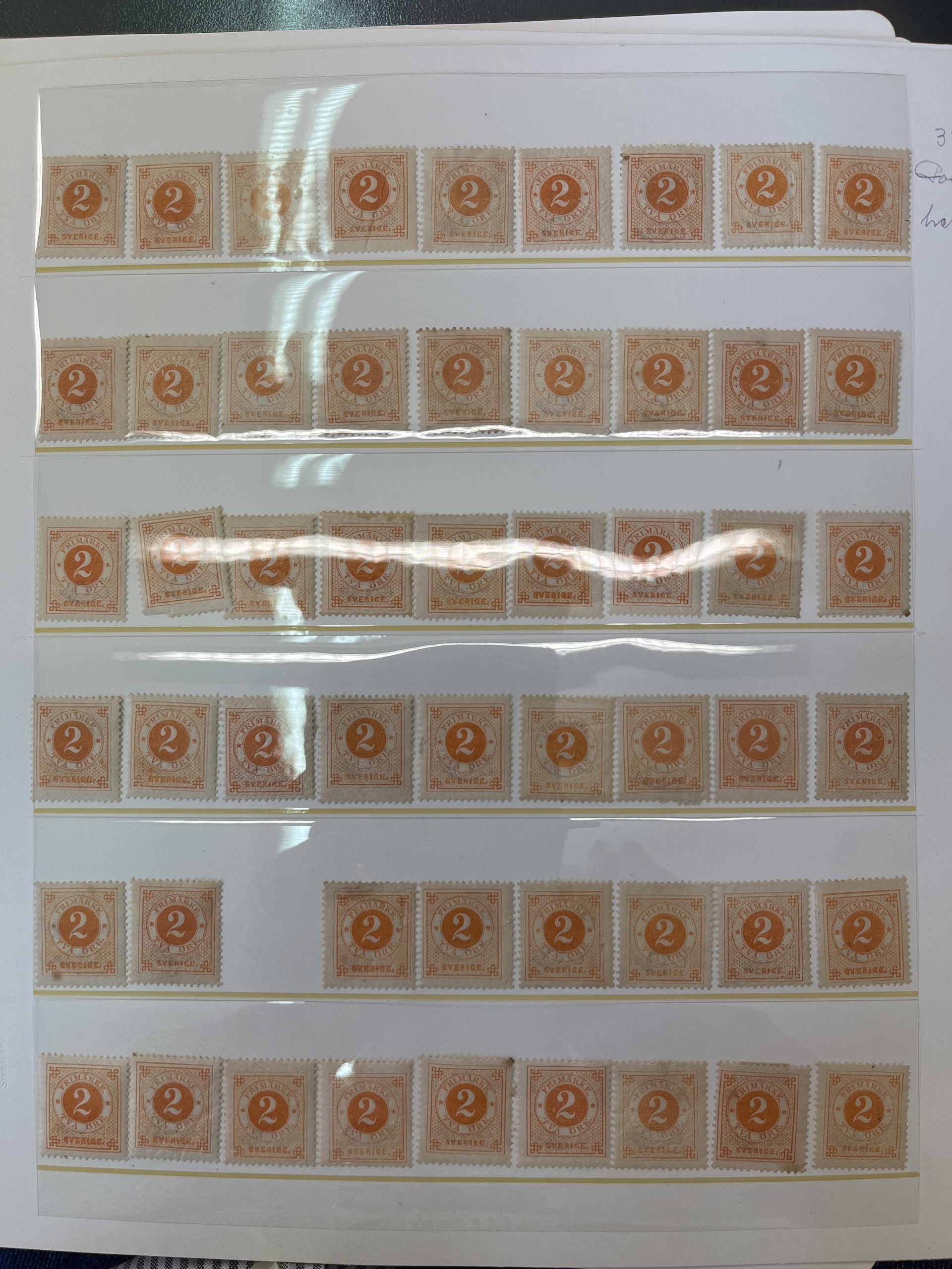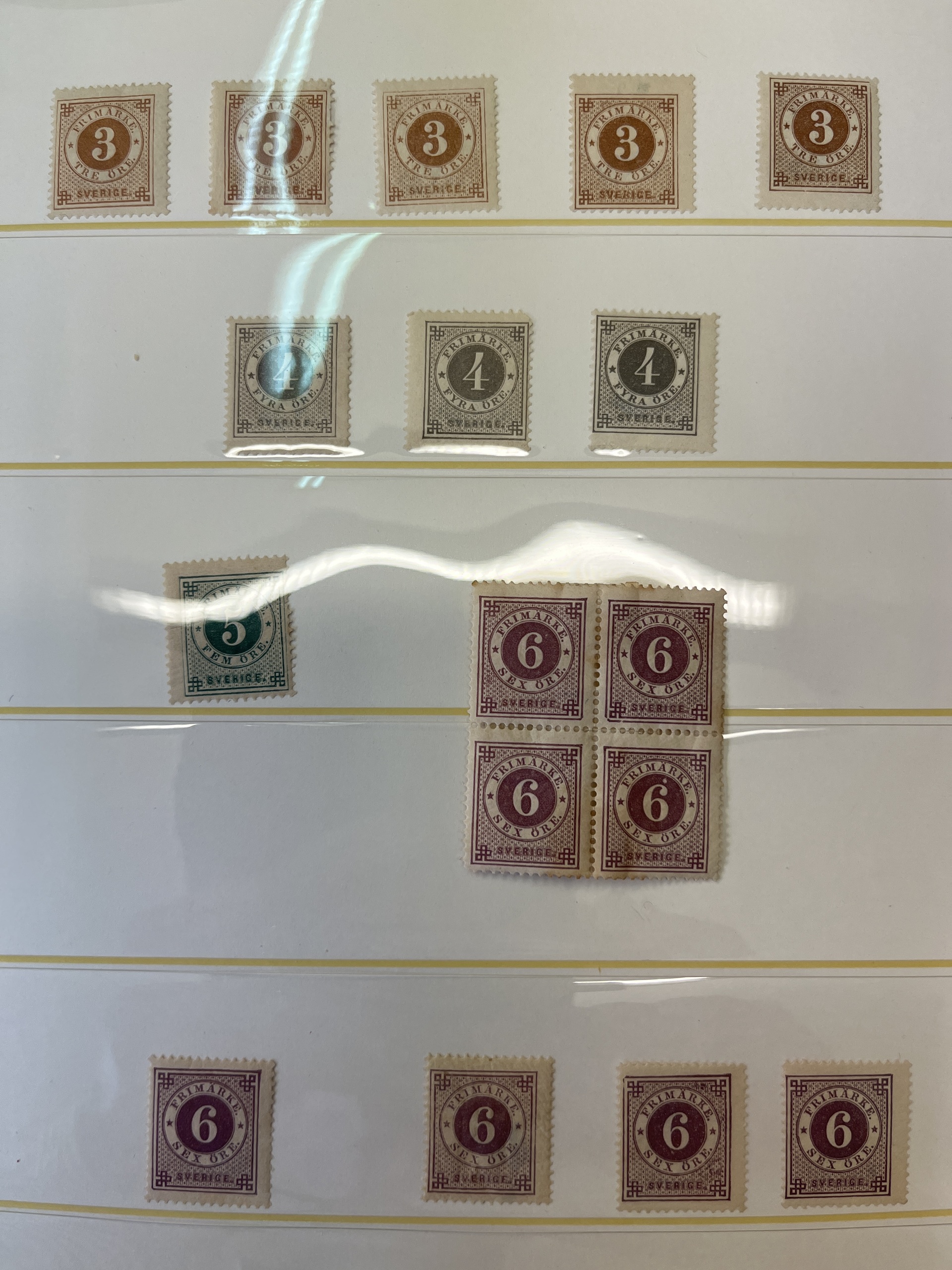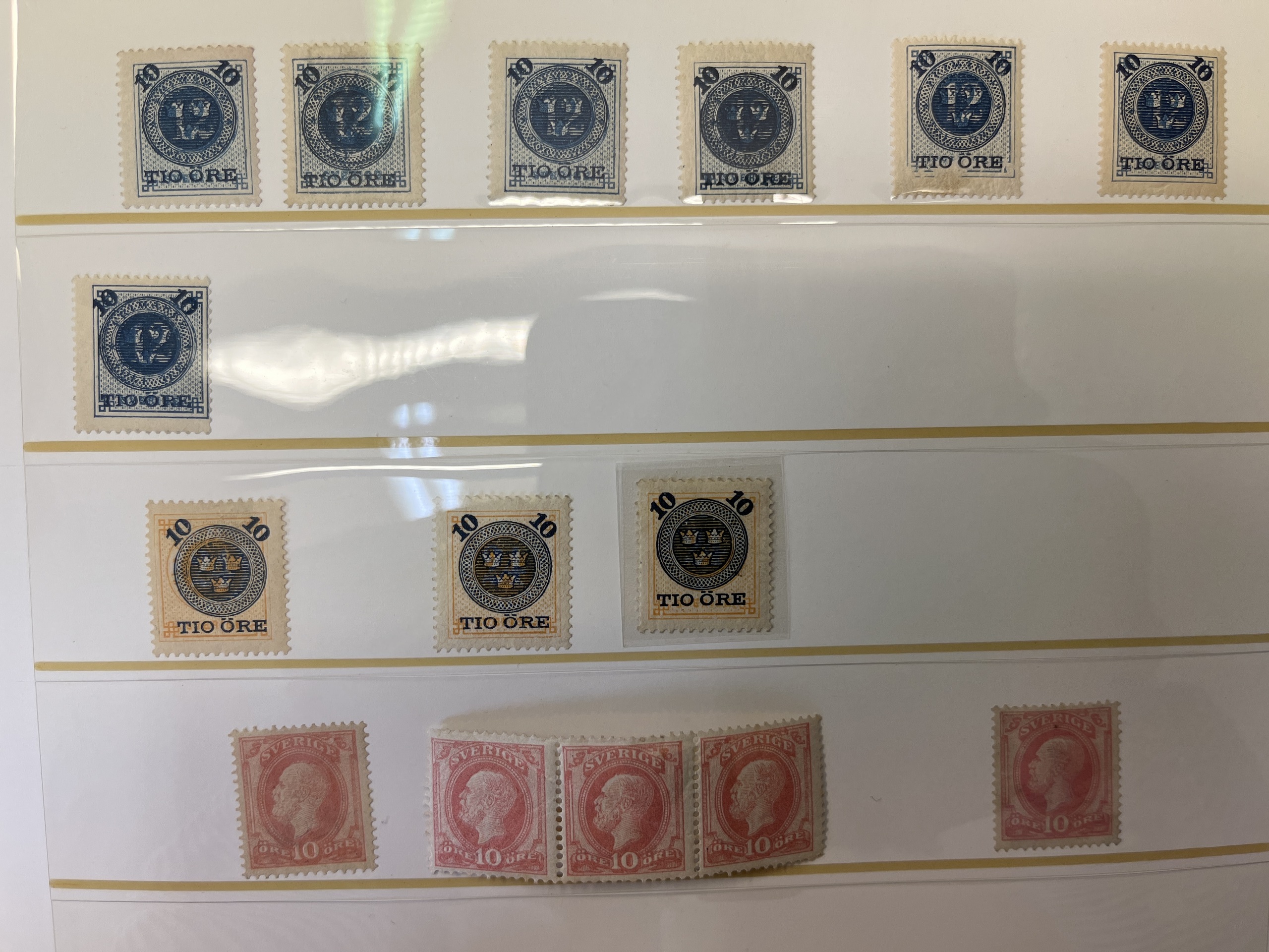 Sweden. Accumulation ★★/★ 1872–92 on twelve visir leaves. Very mixed quality and many without gum.