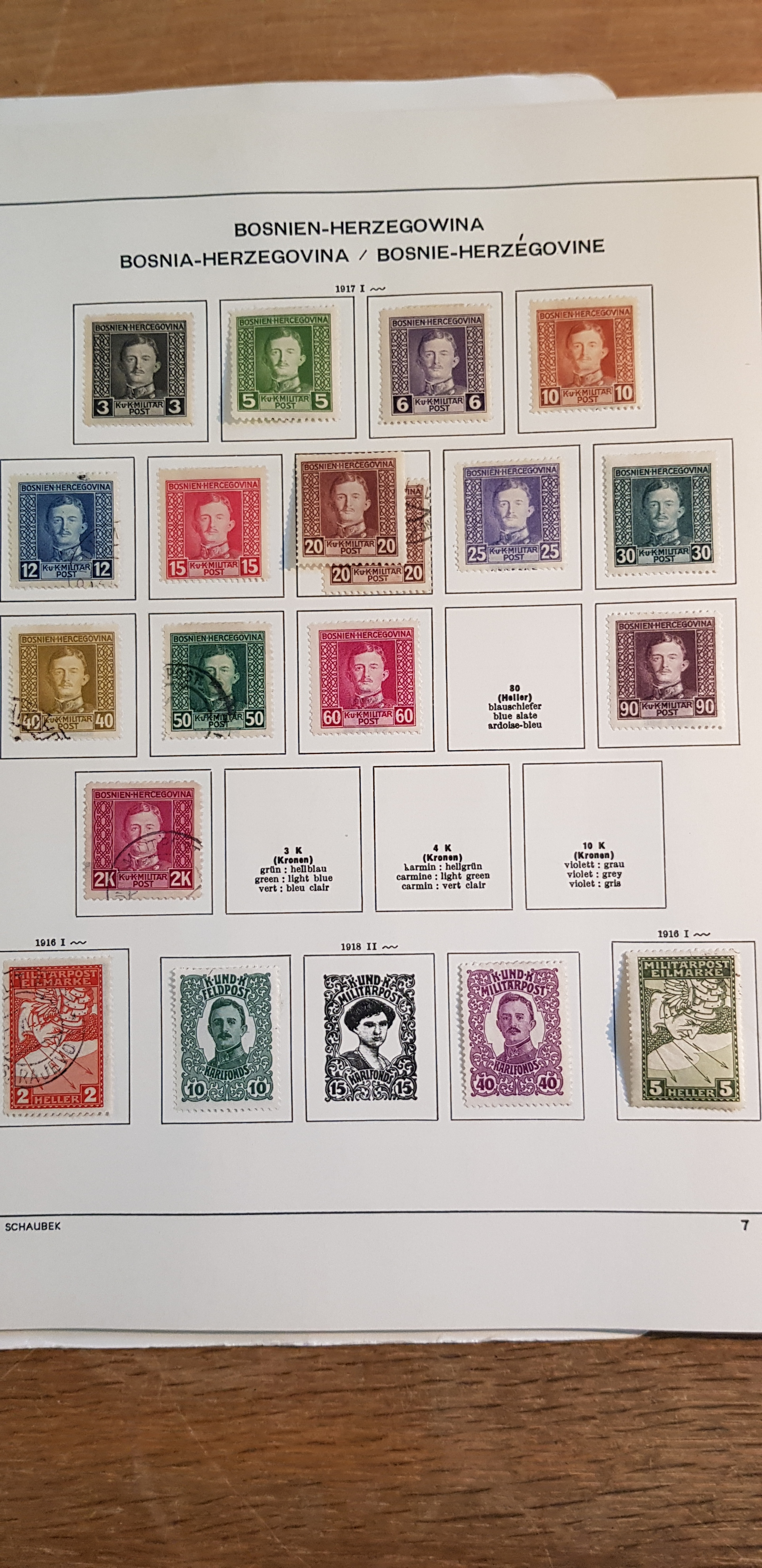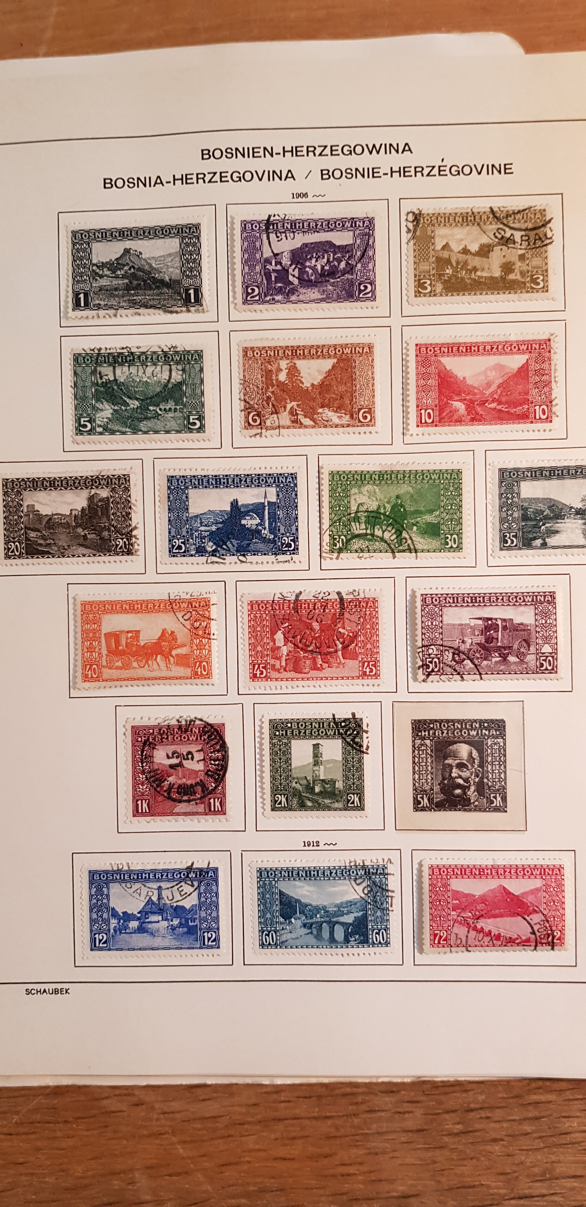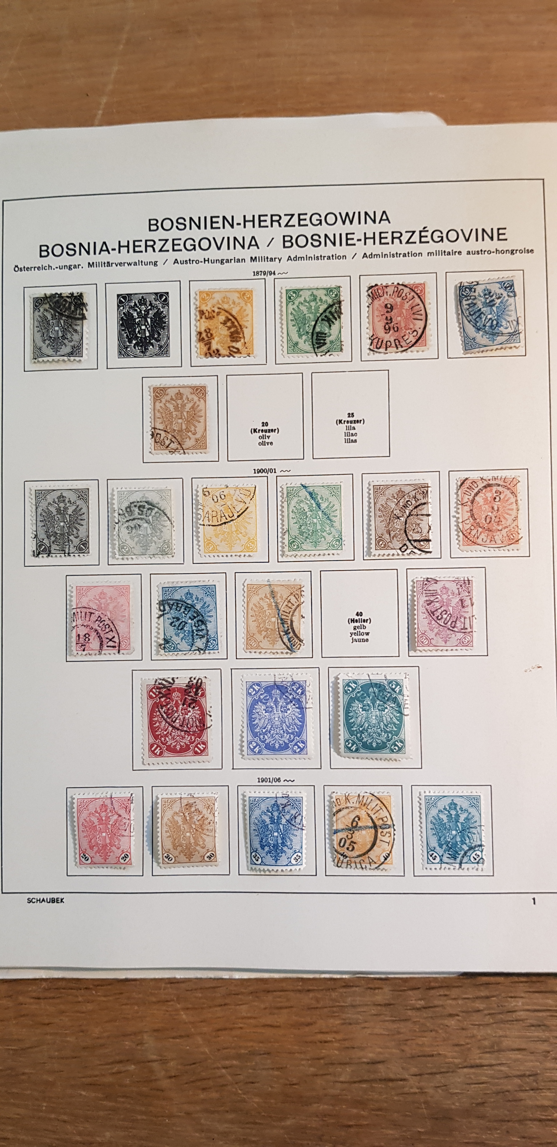 ALL WORLD. Collection/accumulation mostly used 1800s–1900s in box. A Leuchtturm album contaning Switzerland with leaves from 1960-1986 mostly unused. A very nice collection of Bosnia Herzegovina and Austria. In total ten albums of different quality and from different parts of the world. Please see a selection of scans at www.philea.se. Mostly fine quality. Approx. 13 kg. (>2000)