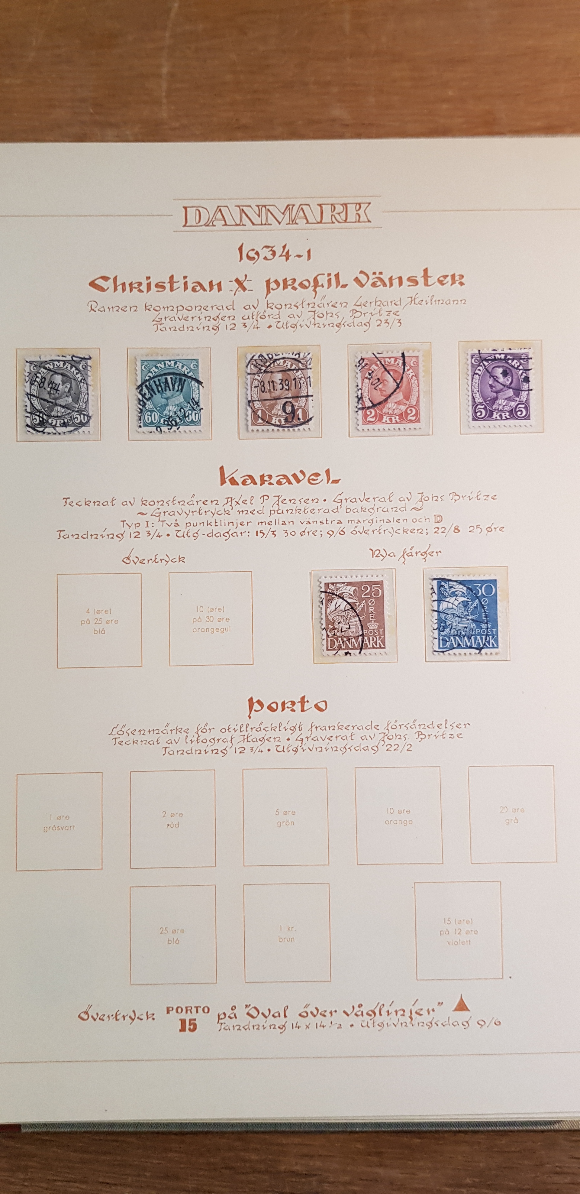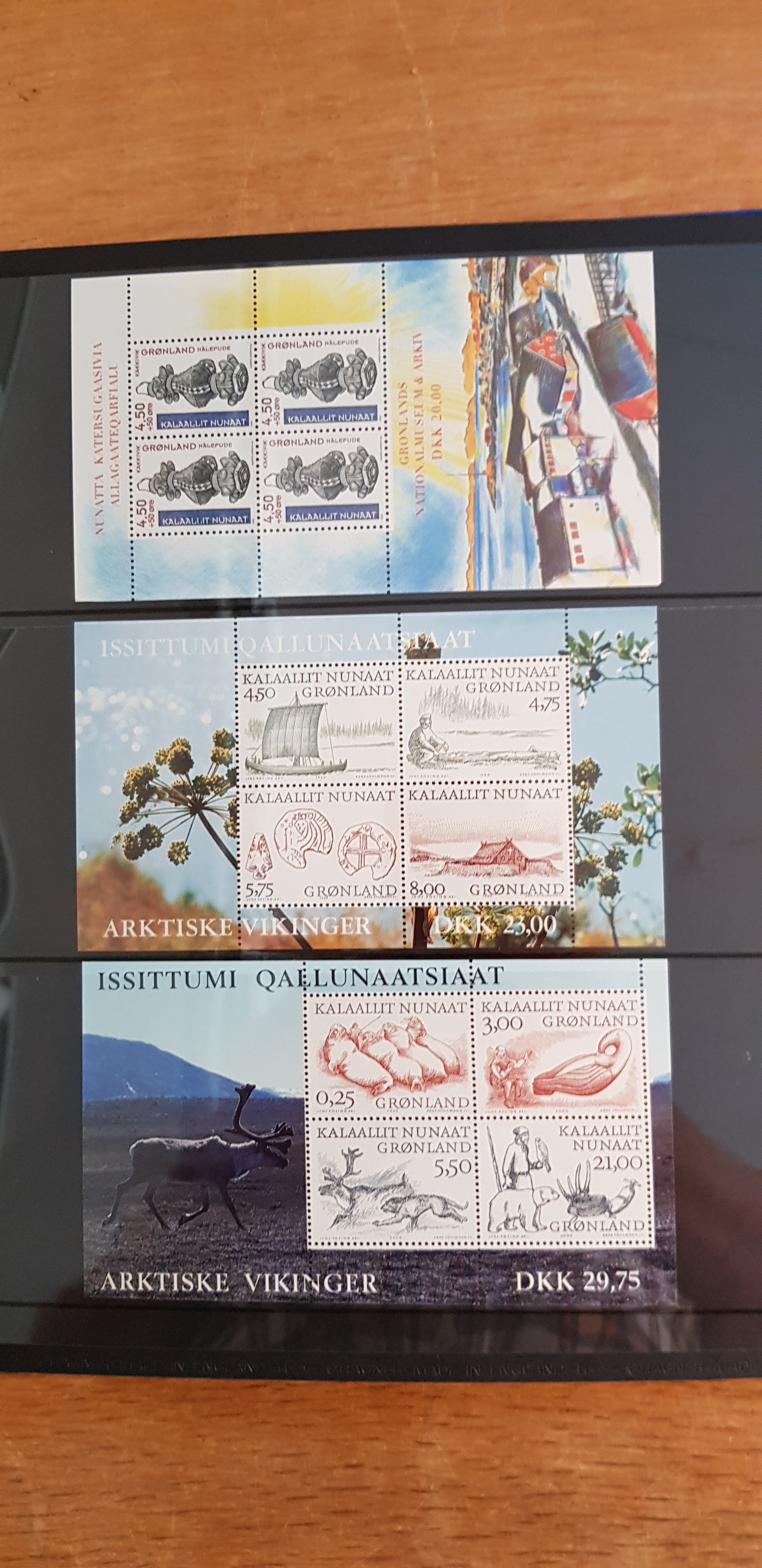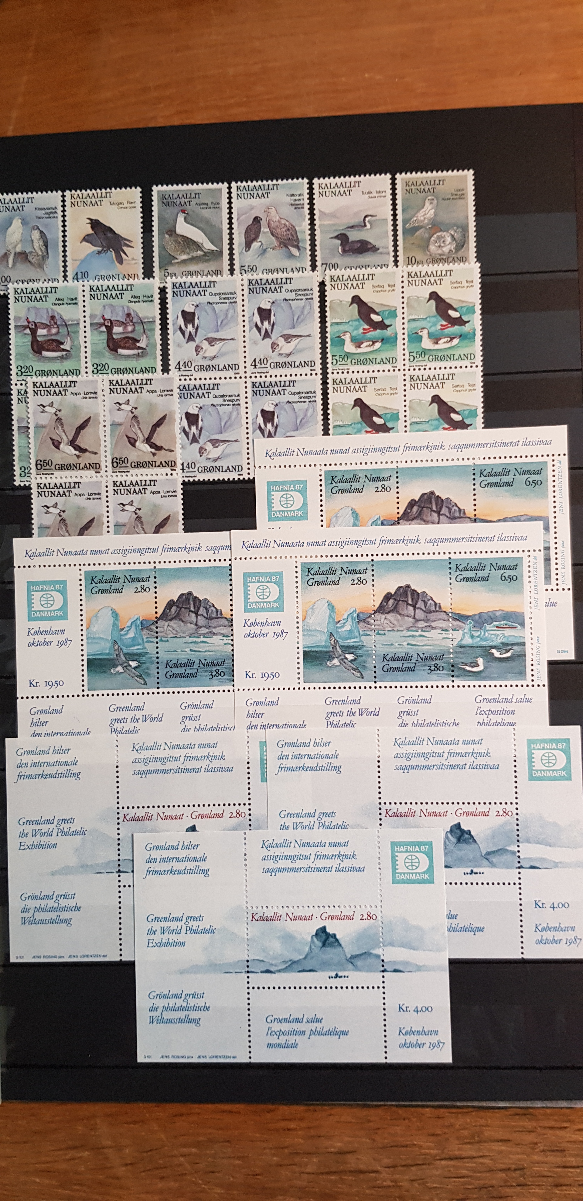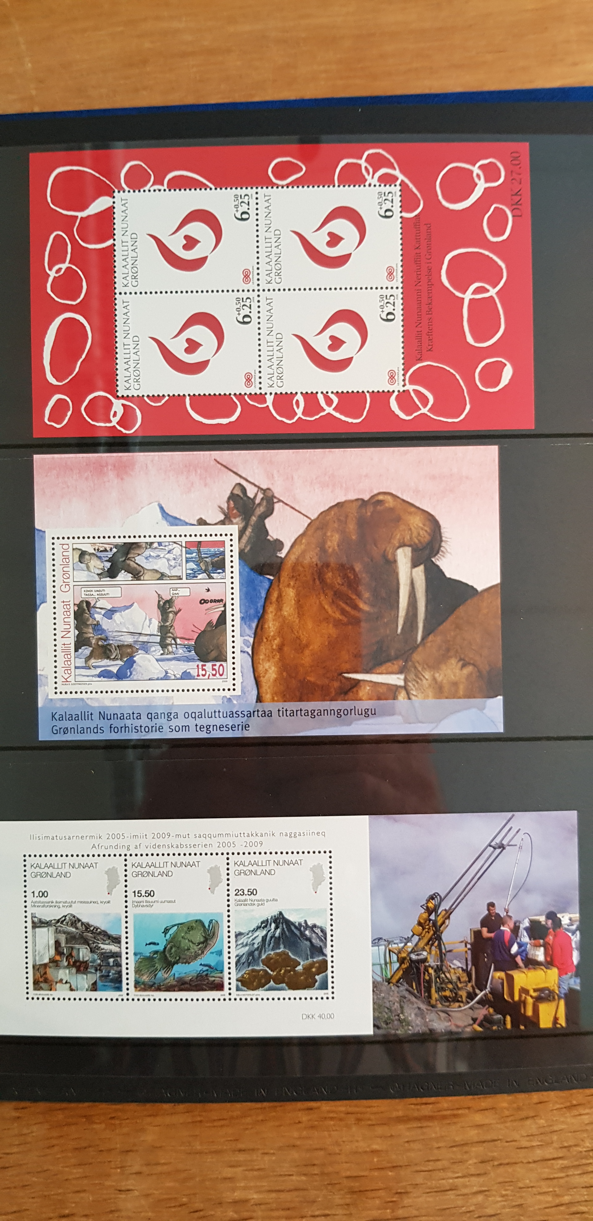 NORDIC COUNTRIES. Collection/accumulation mostly ★★ 1900s–2000s in box. One Estett album containing Denmark from 1933-1970. A stockbook with duplicates of Denmark. One stockbook that contains souvenir sheets from Nordic countries. Two Visir albums with Greenland up until 2015. Please see a selection of scans at www.philea.se. Mostly fine quality. Approx. 8 kg. (>2000)