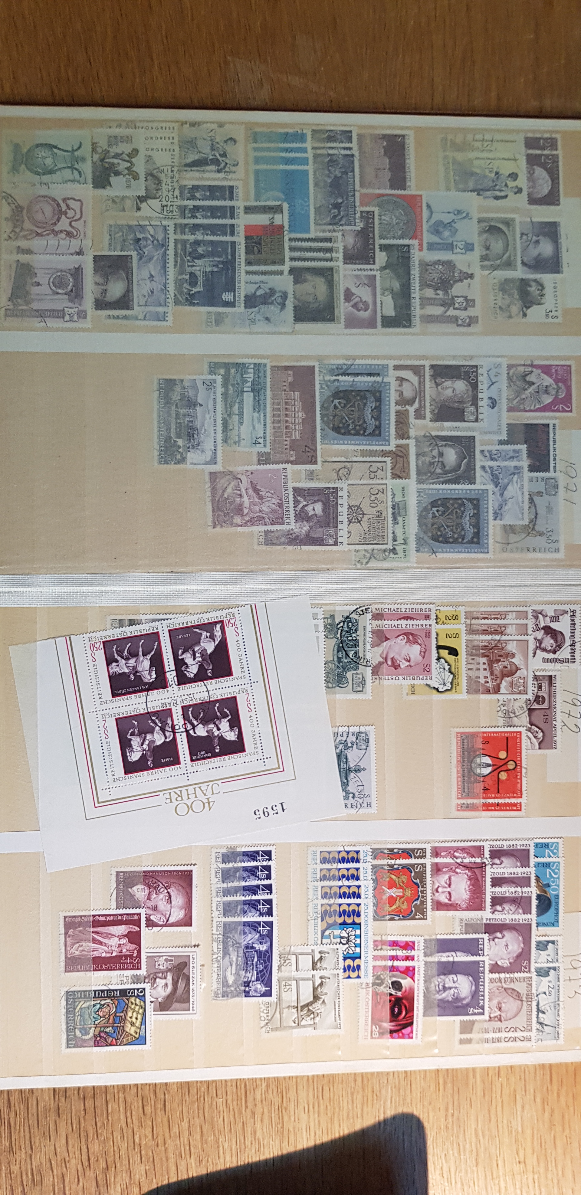 EUROPE. Collection/accumulation mostly ★★ 1900s–2000s in box with stockbooks and albums. Austria in one stockbook and a second one with souvenir sheets. A third stockbook contains Germany. The fourth album is Austria and some Swedish stamps as well. The Visir album also contains Austria unused stamps. At last we have a nice Art album from France. Please see a selection of scans at www.philea.se. Mostly fine quality. Approx. 7 kg. (>2000)