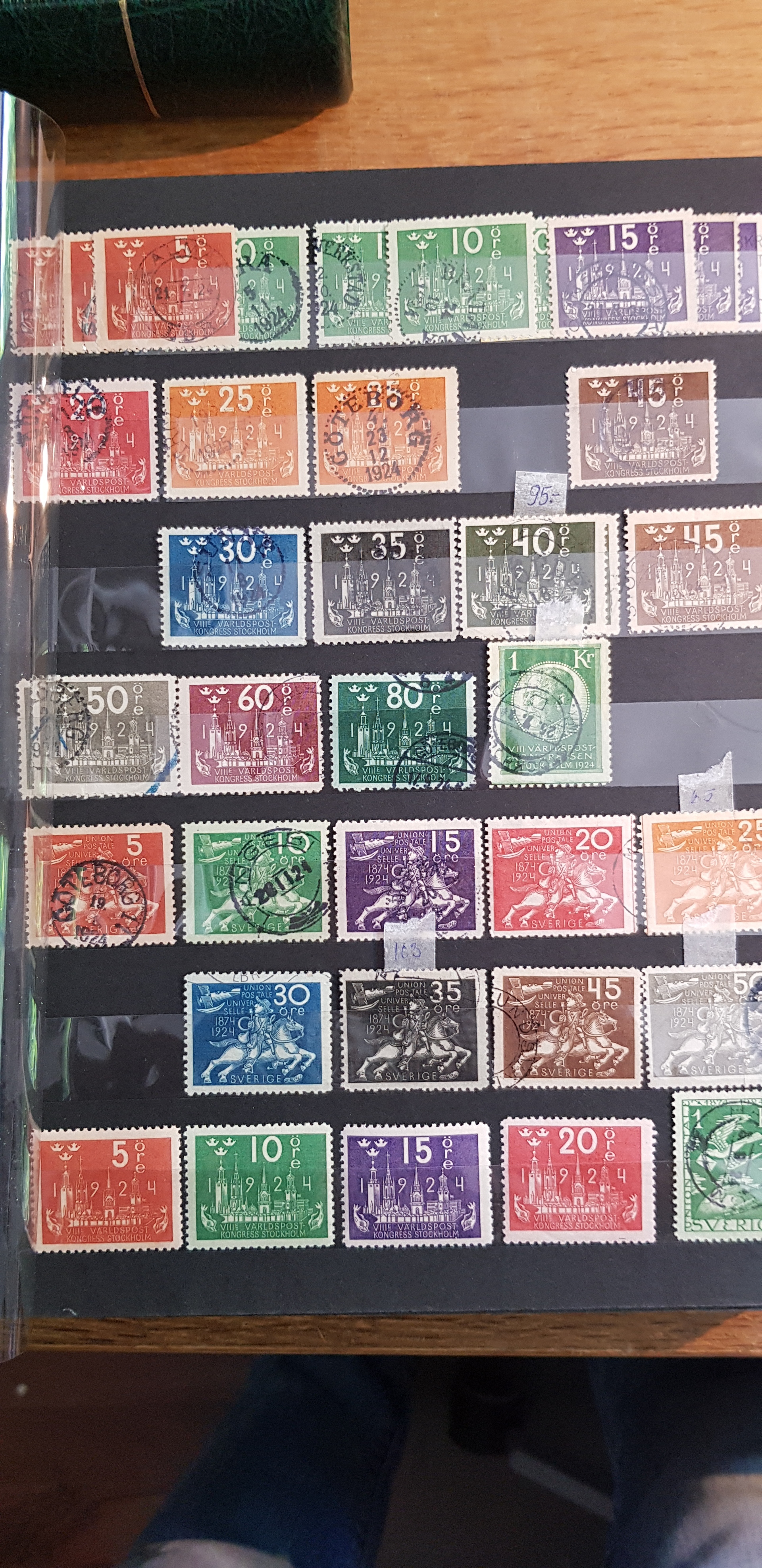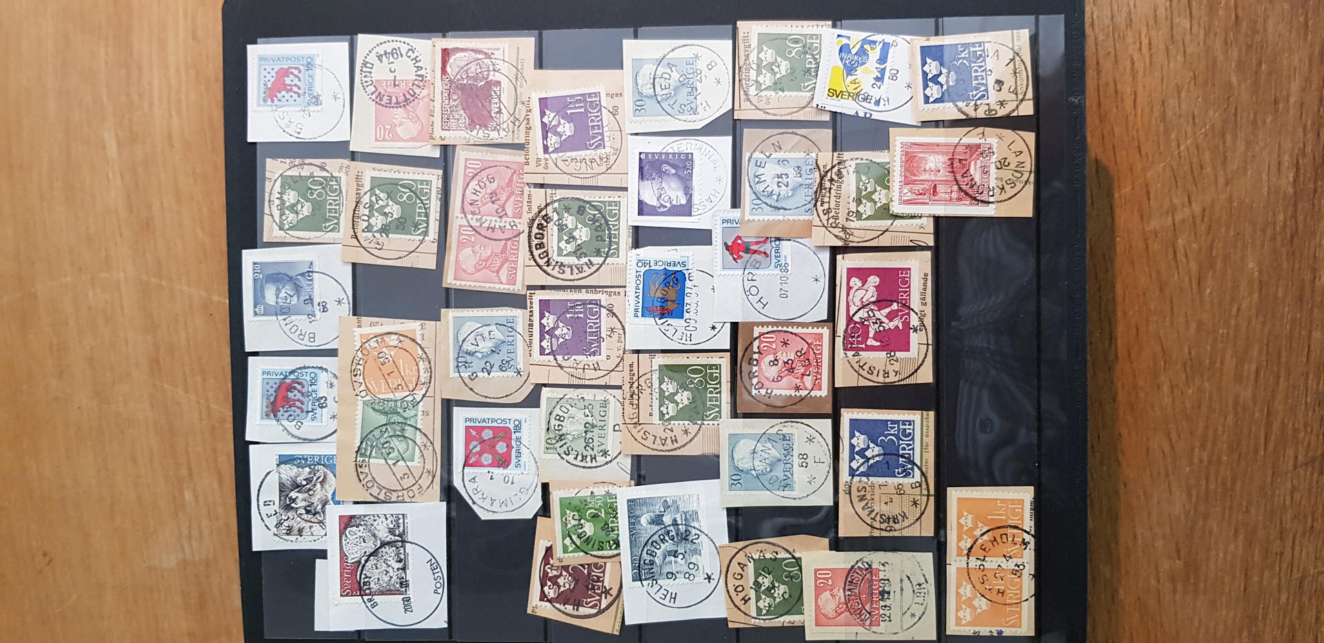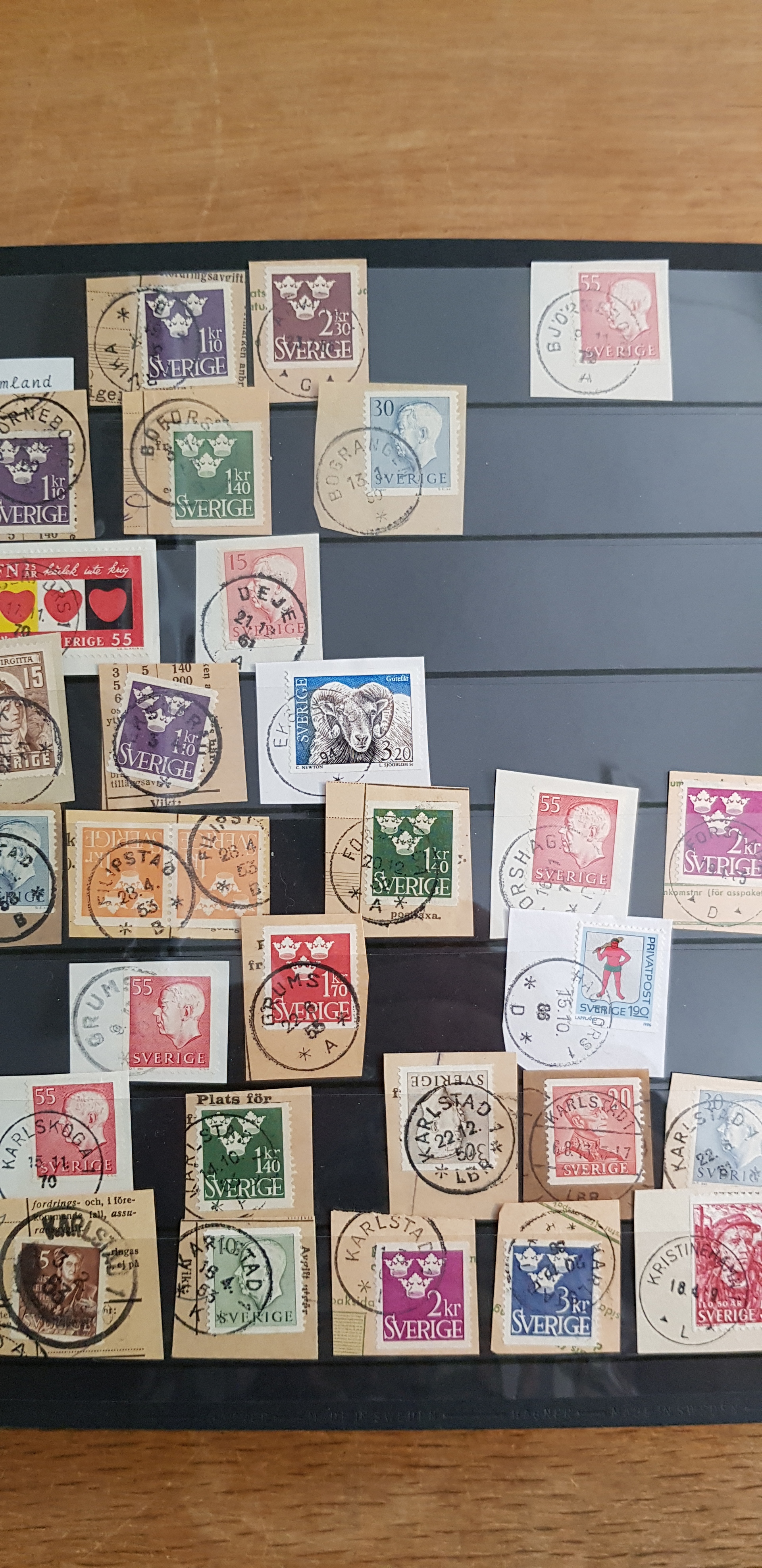 Sweden. Collection/accumulation mostly used 1900s in box. One album that contains unused stamps and also some from abroad. One Visir album that contains cuts from different communities. Four FDC albums. A lot of loose stamps in small boxes. Please see a selection of scans at www.philea.se. Good quality. Approx. 11 kg. (>10000)