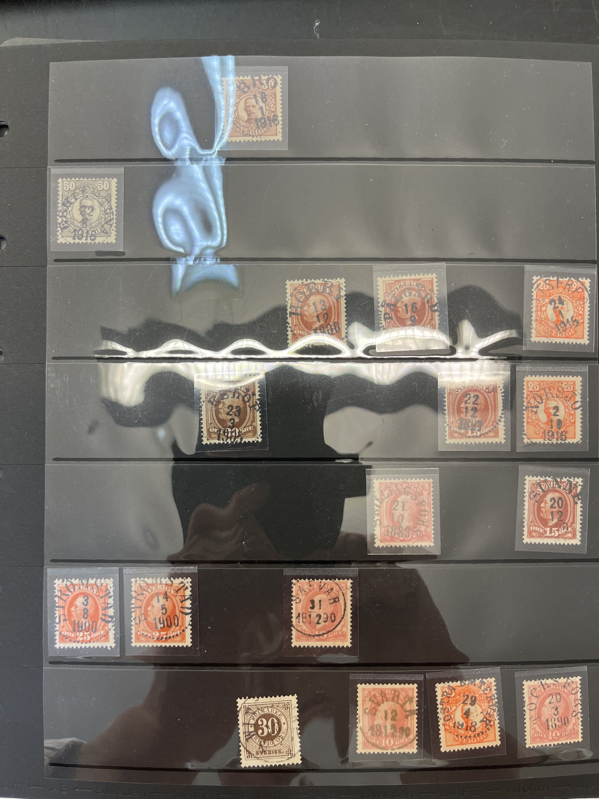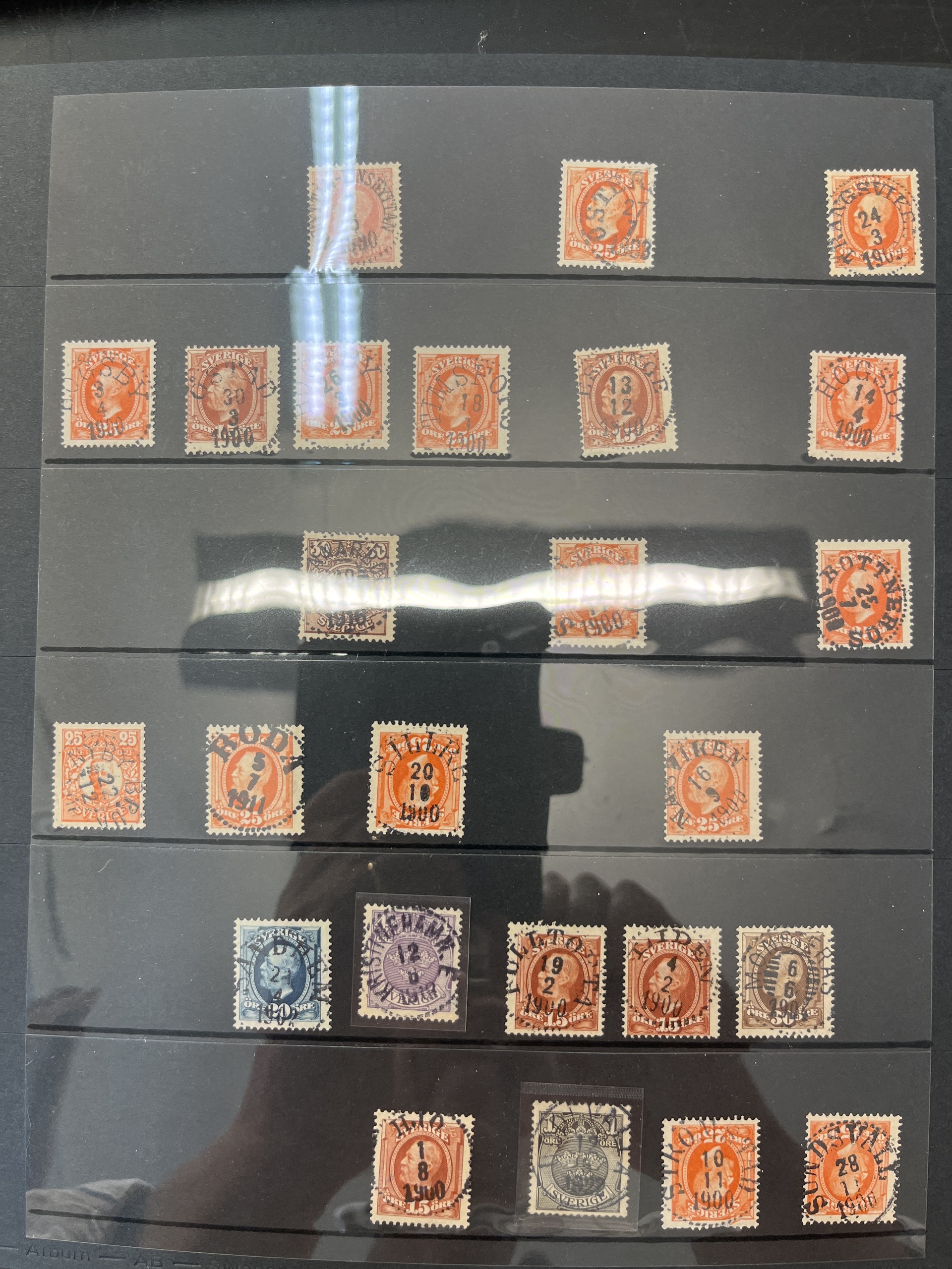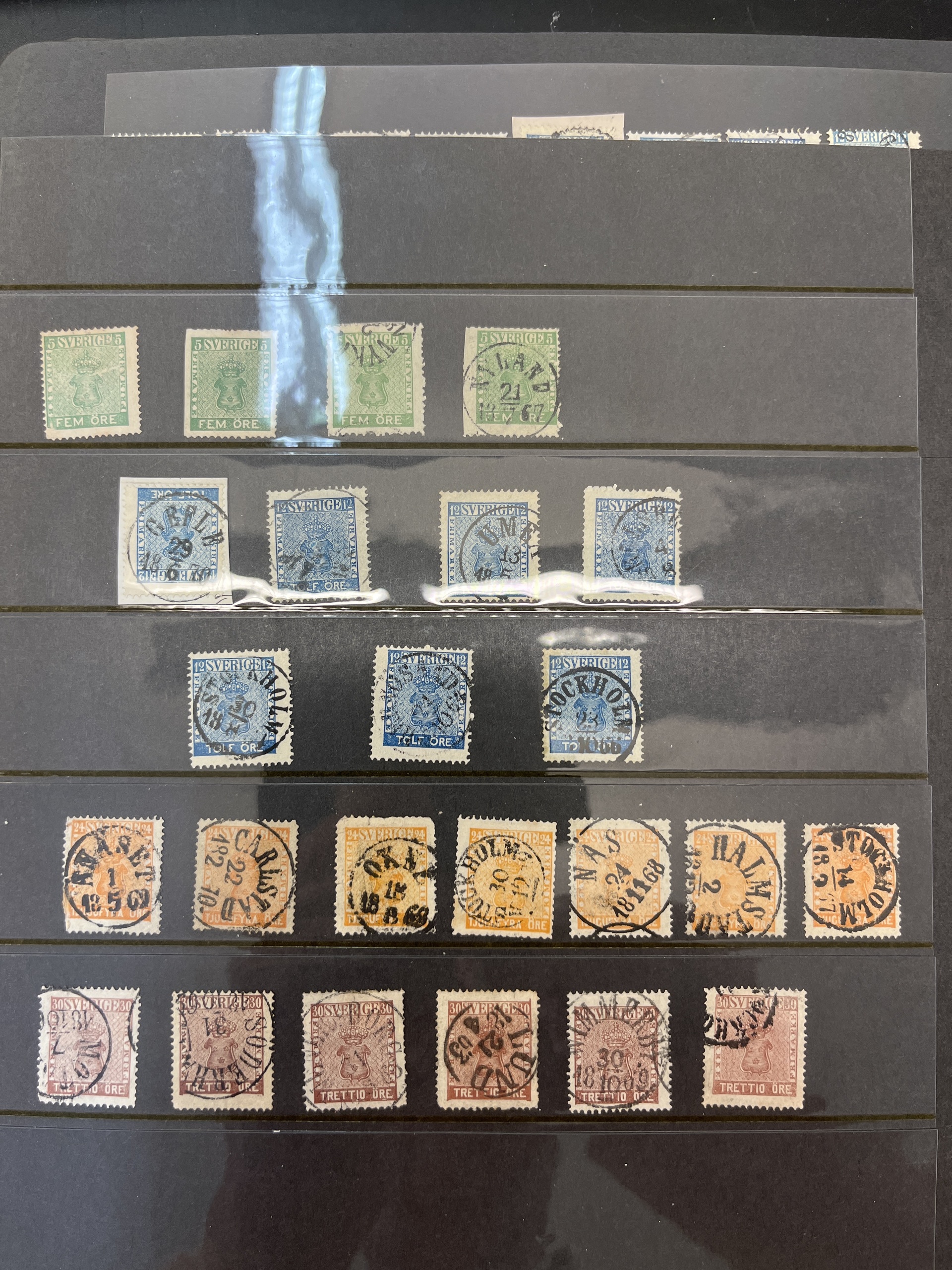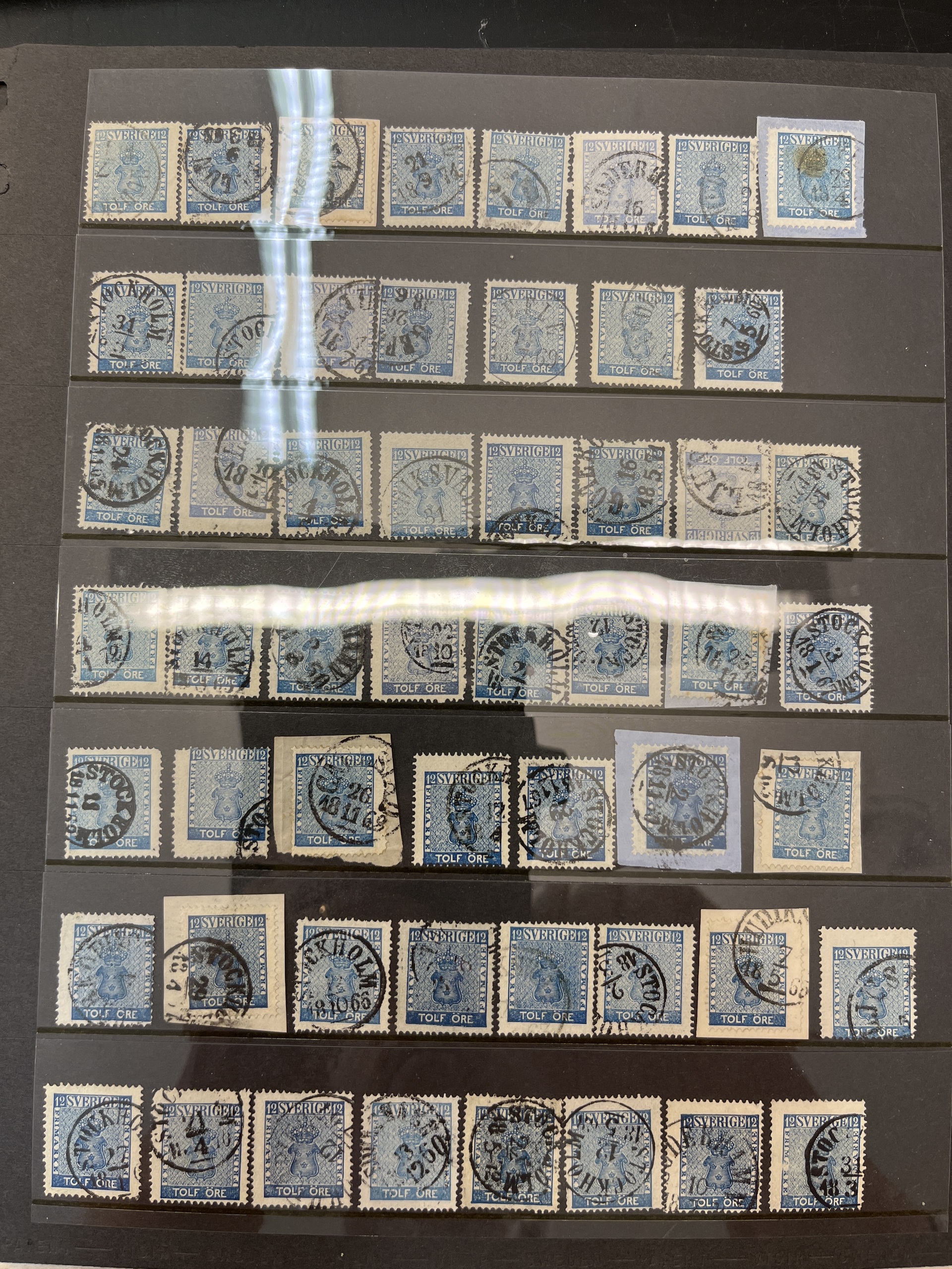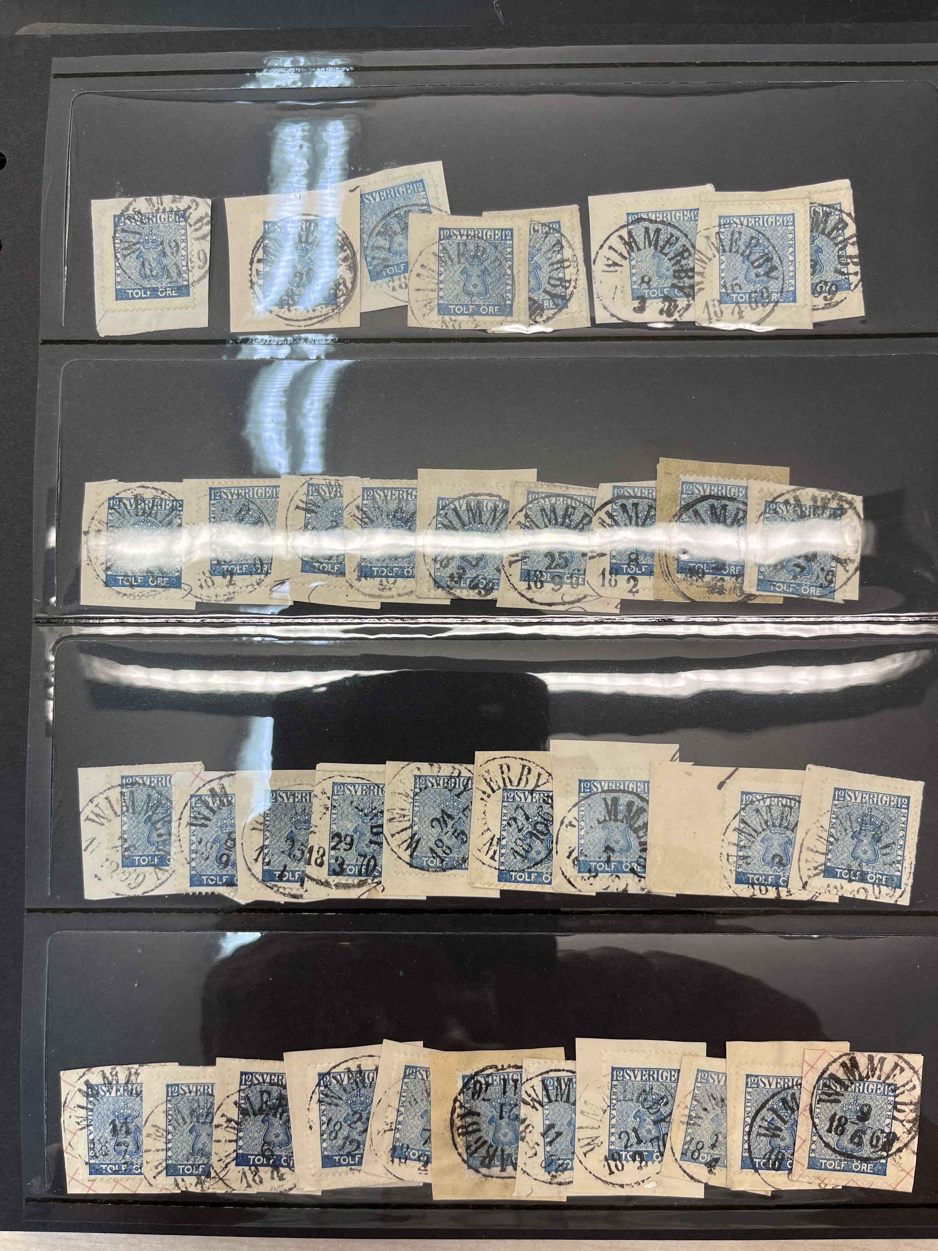 Sweden. Accumulation used 1855–ca. 1924 on 27 visir leaves. Please see a selection of scans at www.philea.se. Somewhat mixed quality.