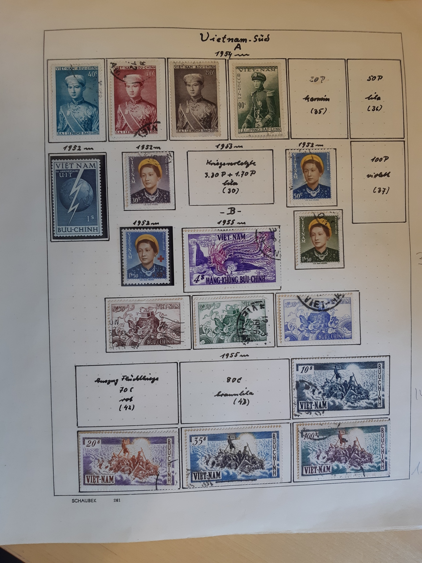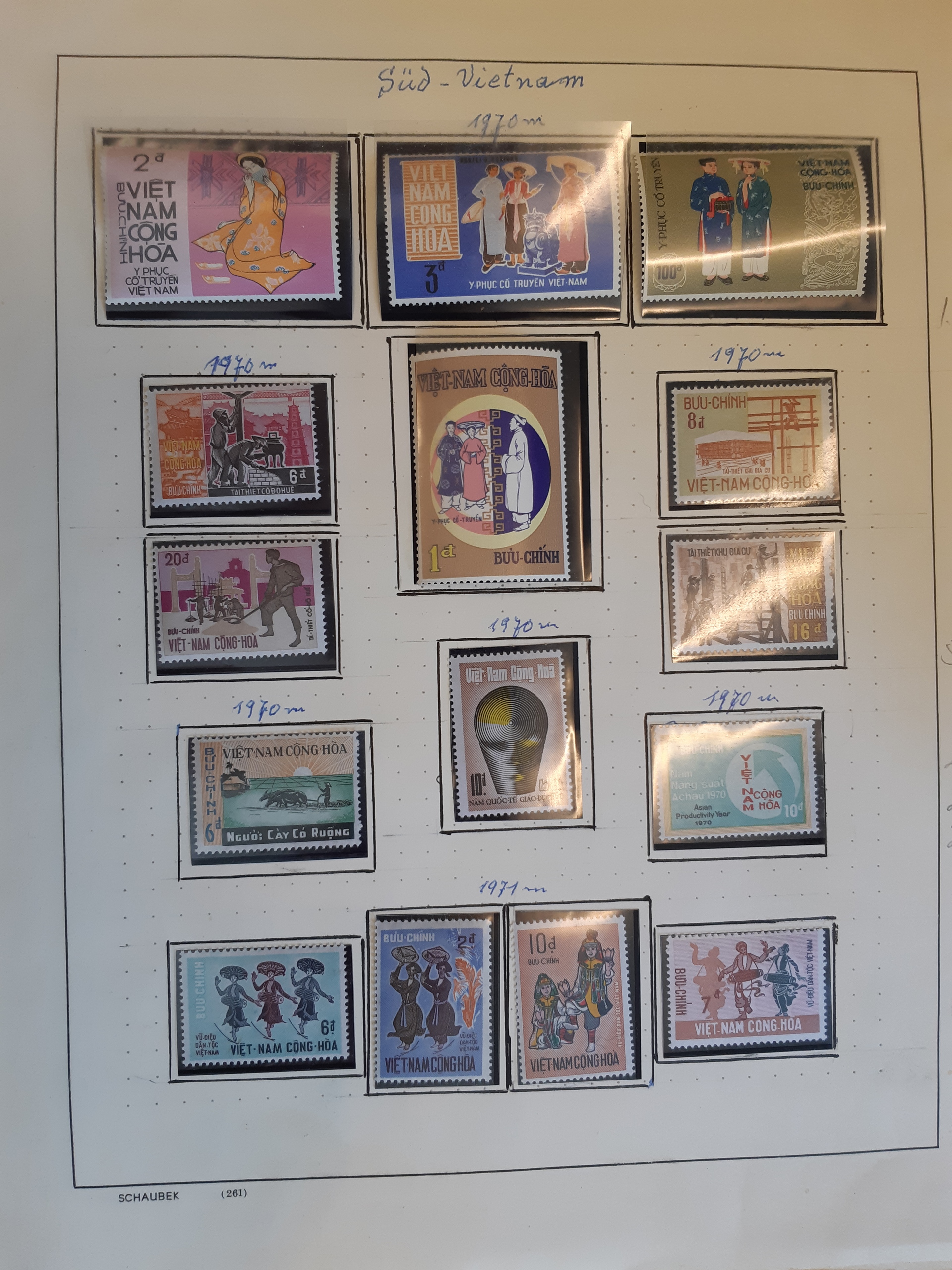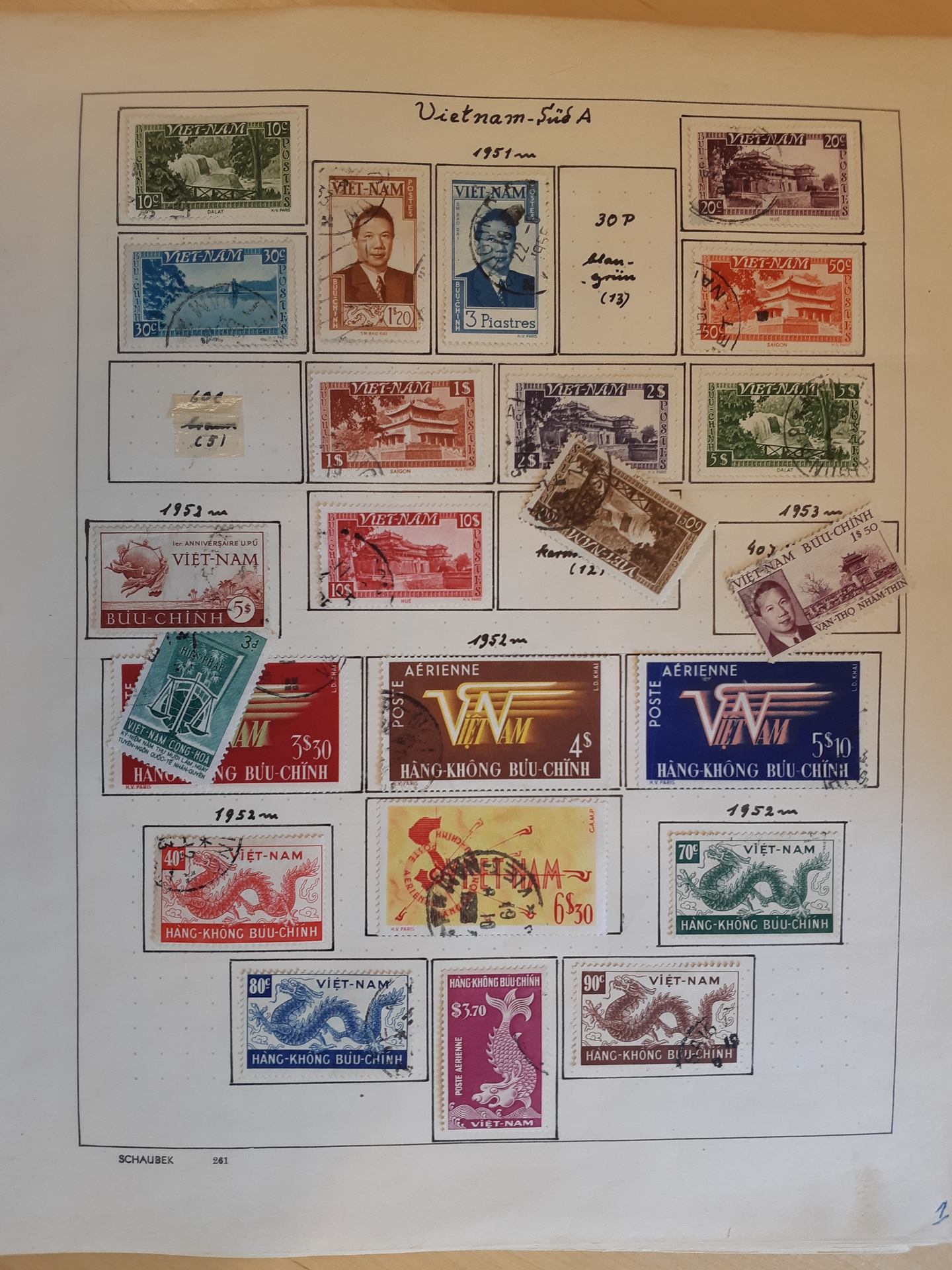 South Vietnam. Collection ★★/★/⊙ 1951–1970 on leaves. Also some Laos. Mostly good quality. (600)