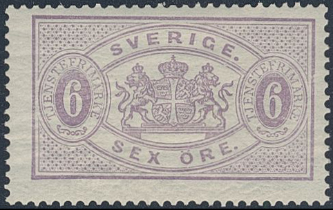 Sweden. Official Facit Tj15c1 ★★, 6 öre reddish lilac, perf 13.